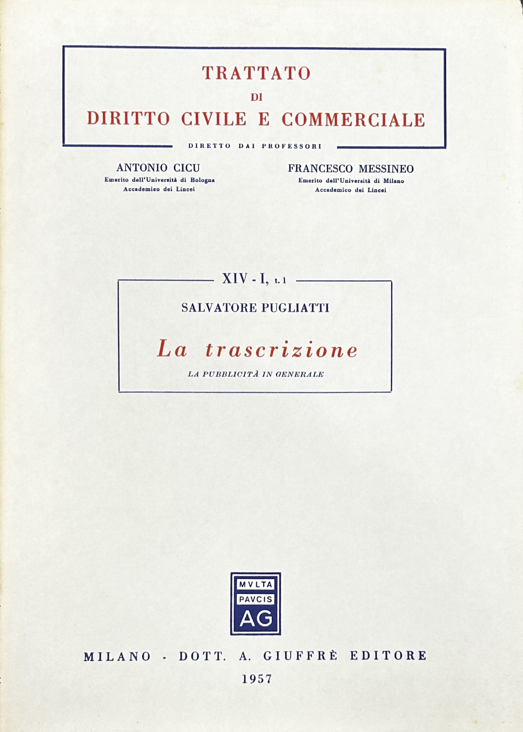 La trascrizione. Vol. I, tomo I - La pubblicitĂ  in generale (unico pubblicato)