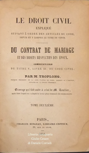 Le droit civil explique suivant l'ordre des articles du code. Du contrat de mariage et des droits respectifs des epoux. Commentaire du Titre V, Livre III, du code civil