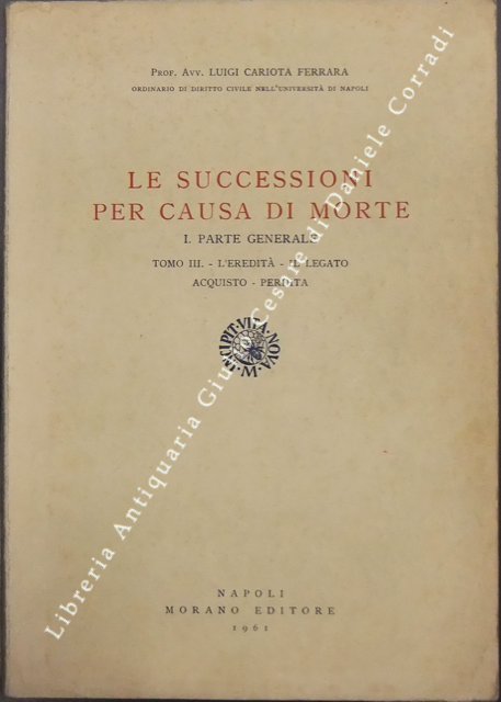 Le successioni per causa di morte. Parte generale. Vol. I - Principii. Problemi fondamentali; Vol. II - Le specie. I soggetti; Vol. III - L'eredità. Il legato. Acquisto. Perdita; Vol. IV - Effetti. Momento costitutivo