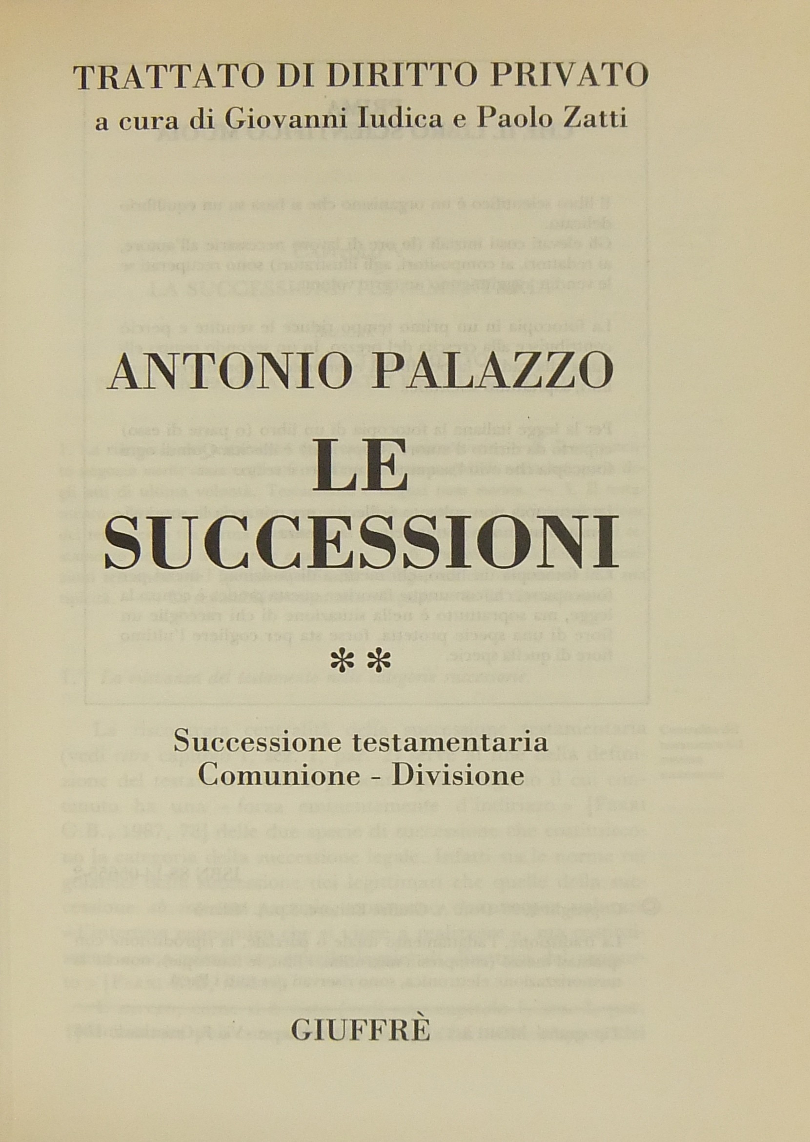 Le successioni. Vol. I - Introduzione al diritto successorio. Istituti comuni alle categorie successorie. Successione legale; Vol. II - Successione testamentaria. Comunione. Divisione