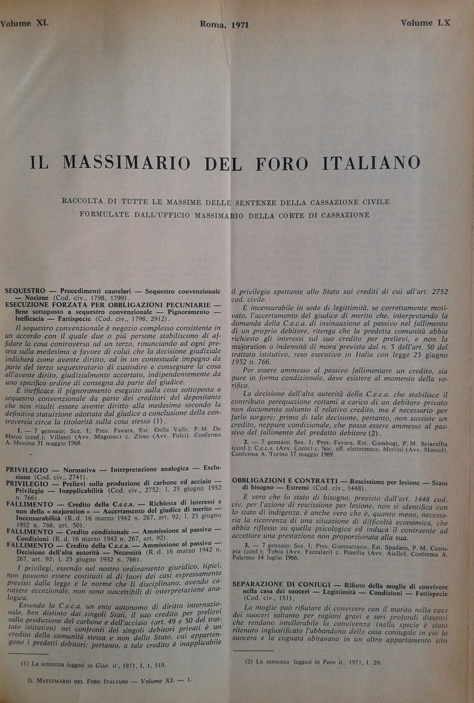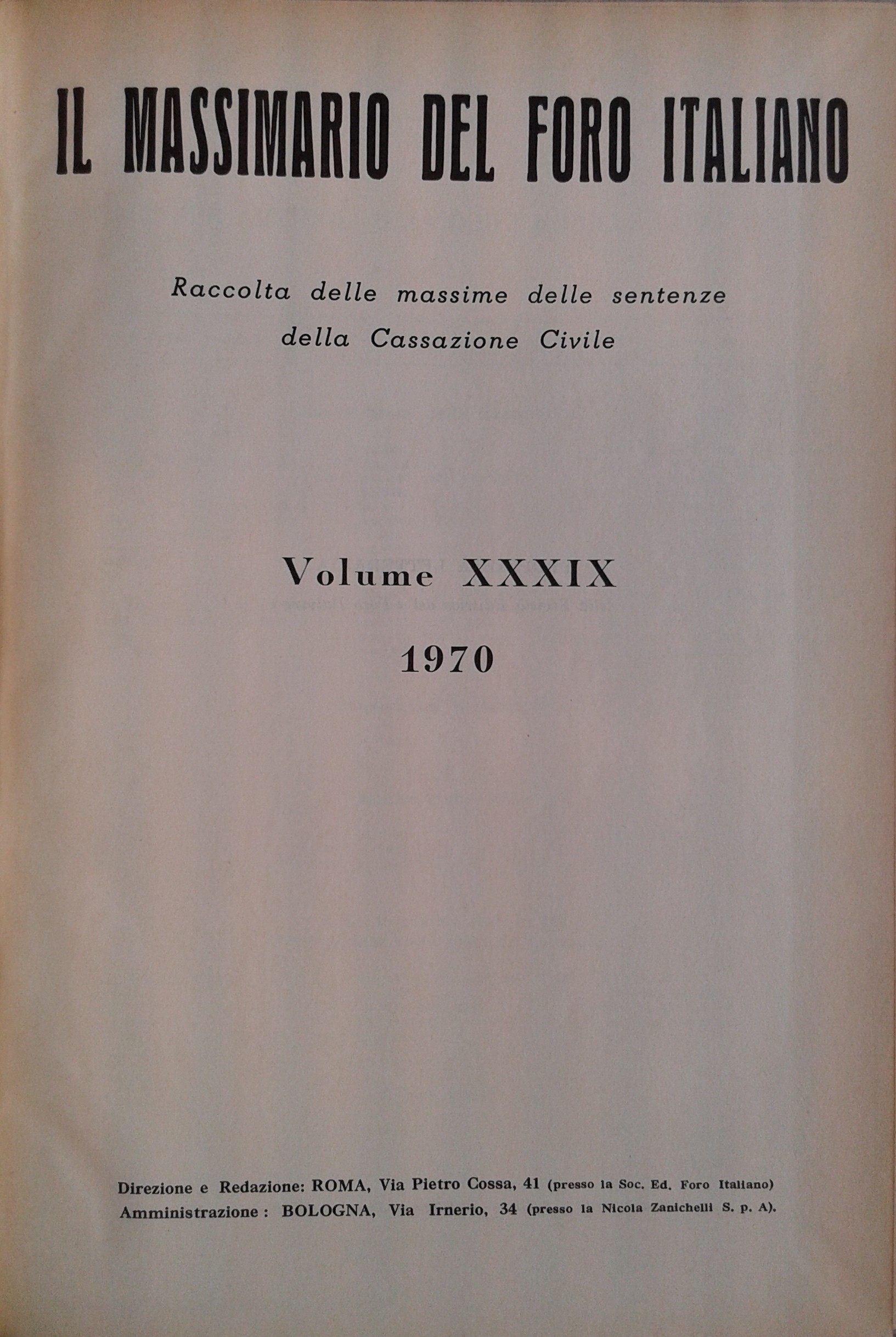 Massimario del Foro Italiano. Raccolta delle massime delle sentenze della cassazione civile. Annate 1970-1979