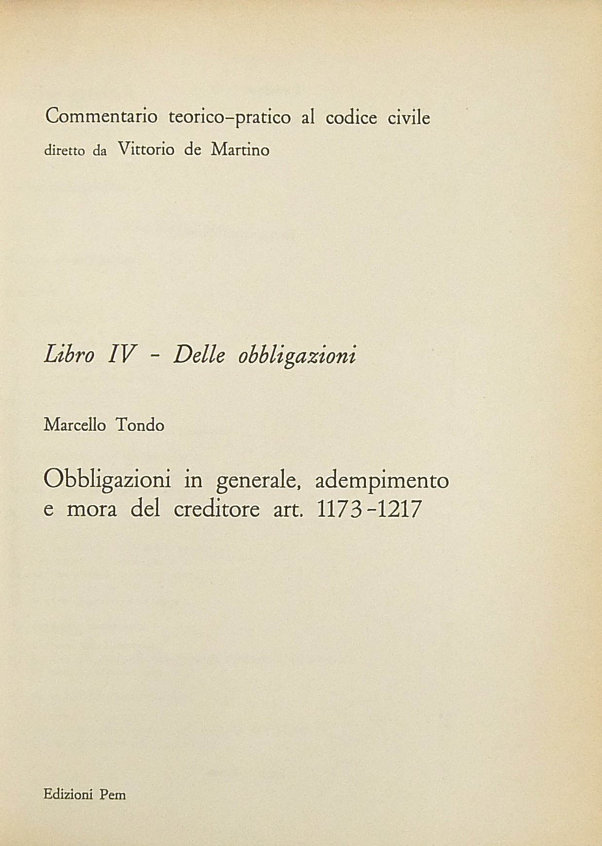 Numero Collana: Libro IV - Delle obbligazioni