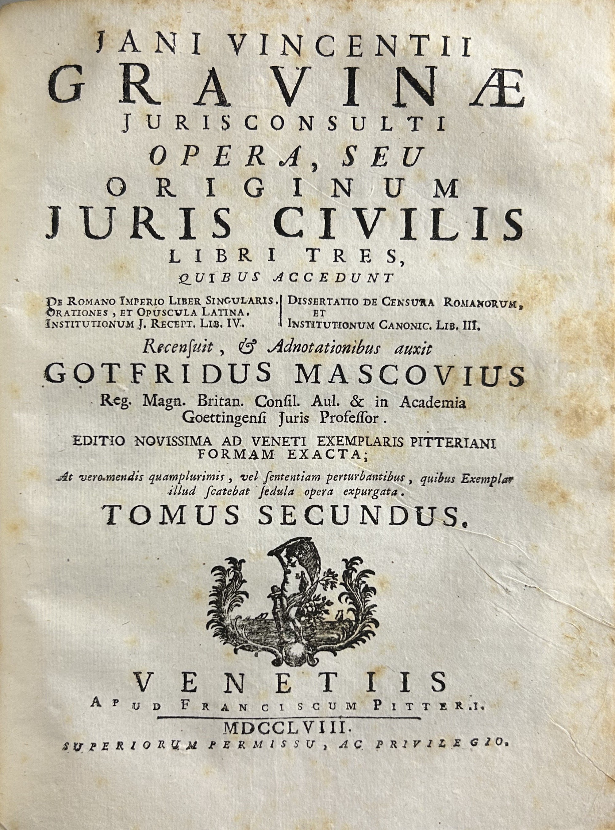 Gravina Gian Vincenzo (1664-1718) - Gravinae Jani Vincentii