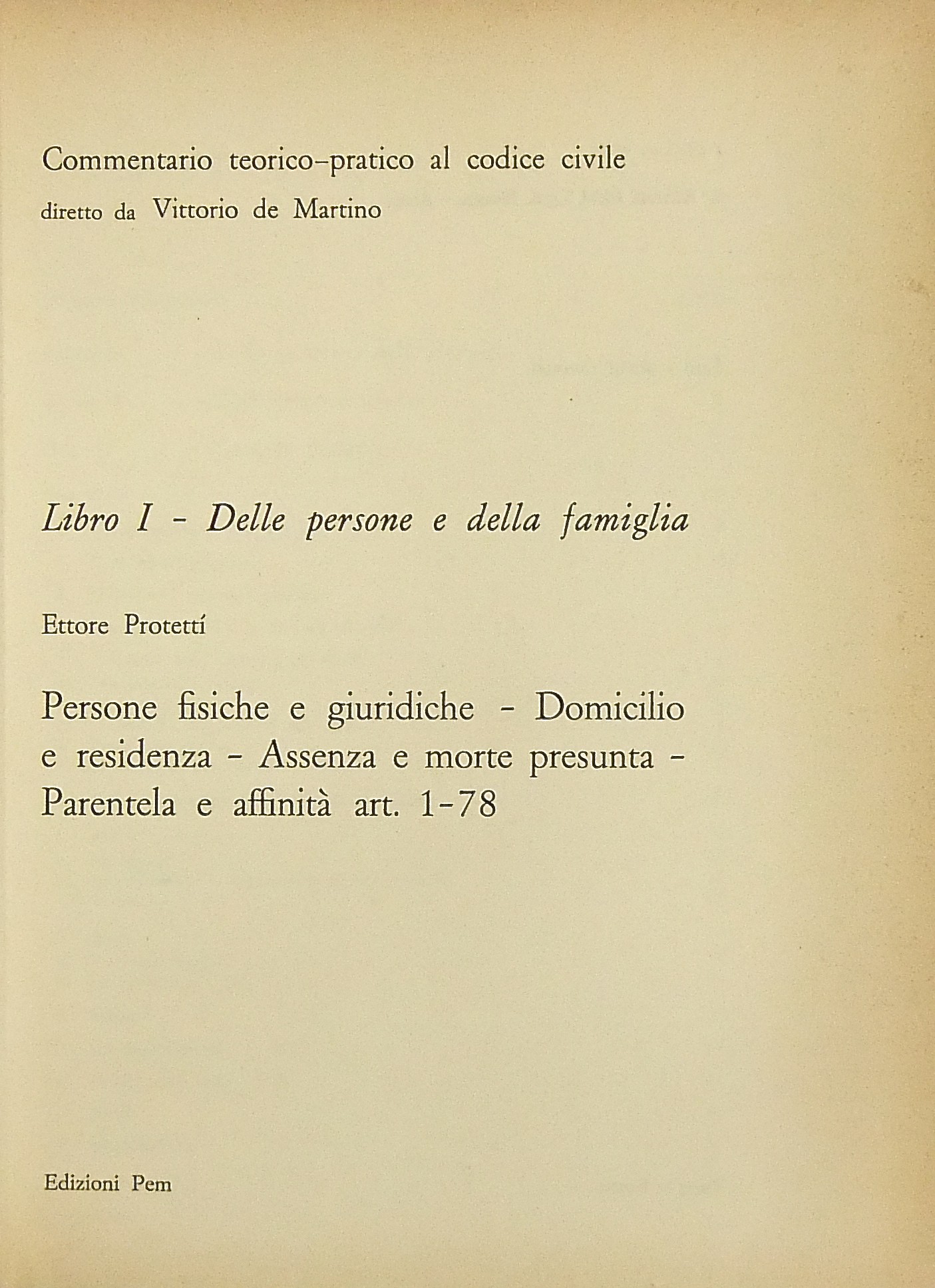 Persone fisiche e giuridiche. Domicilio e residenza. Assenza e morte presunta. Parentela e affinità. Art. 1-78