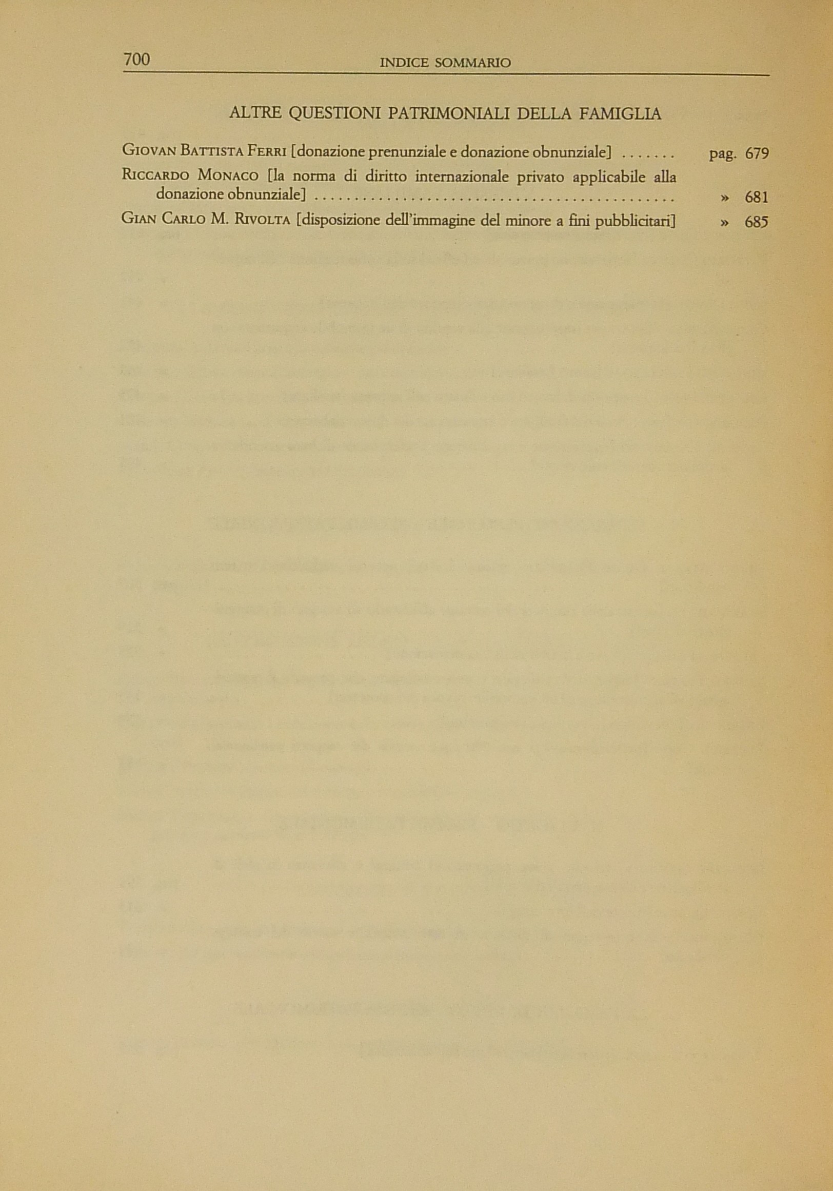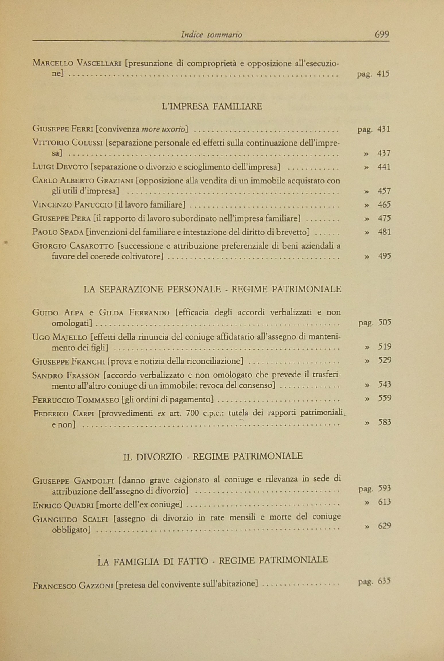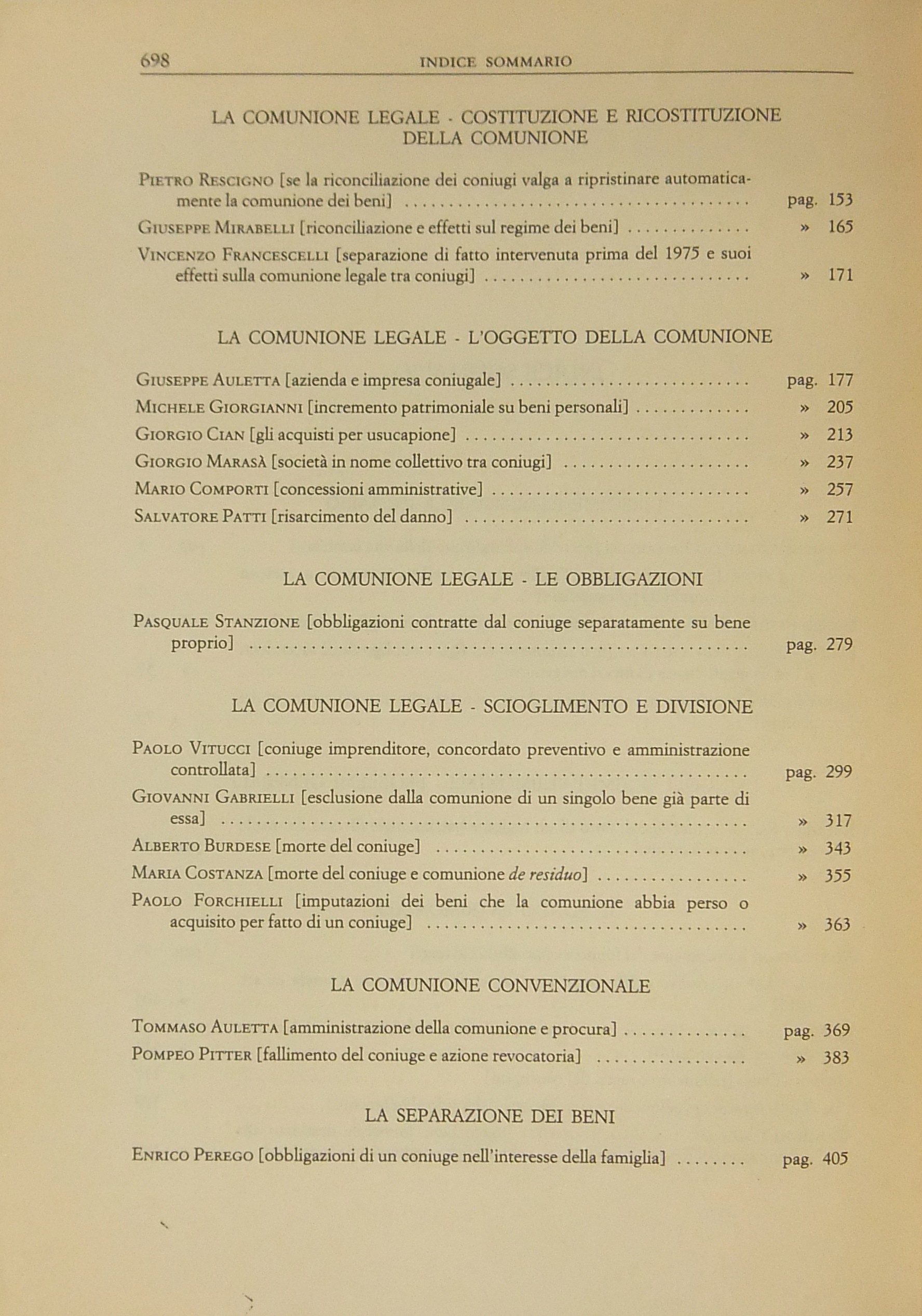 Scritti di: Alpa, Argiroffi, Auletta G., Auletta T., Bianca, Burdese, Carpi, Carresi, Casarotto, Cian, Colussi, Comporti, Costanza, Criscuoli, De Cupis, Devoto, Ferrando, Ferri G., Ferri G.B., Forchielli, Franceschelli V., Franchi, Frasson, Gabrielli, Gandolfi, Gardani Contursi Lisi, Gazzoni, Giorgianni M., Graziani, Guglielmucci, Lener, Majello, Marasà , Mirabelli, Monaco R., Oppo, Panuccio, Pasetti, Patti, Pera, Perego, Pitter, Quadri E., Rescigno P., Rivolta, R. Sacco, Santoro Passarelli, Scalfi, Segni, Spada, Stanzione, Tommaseo, Vascellari, Vitucci.