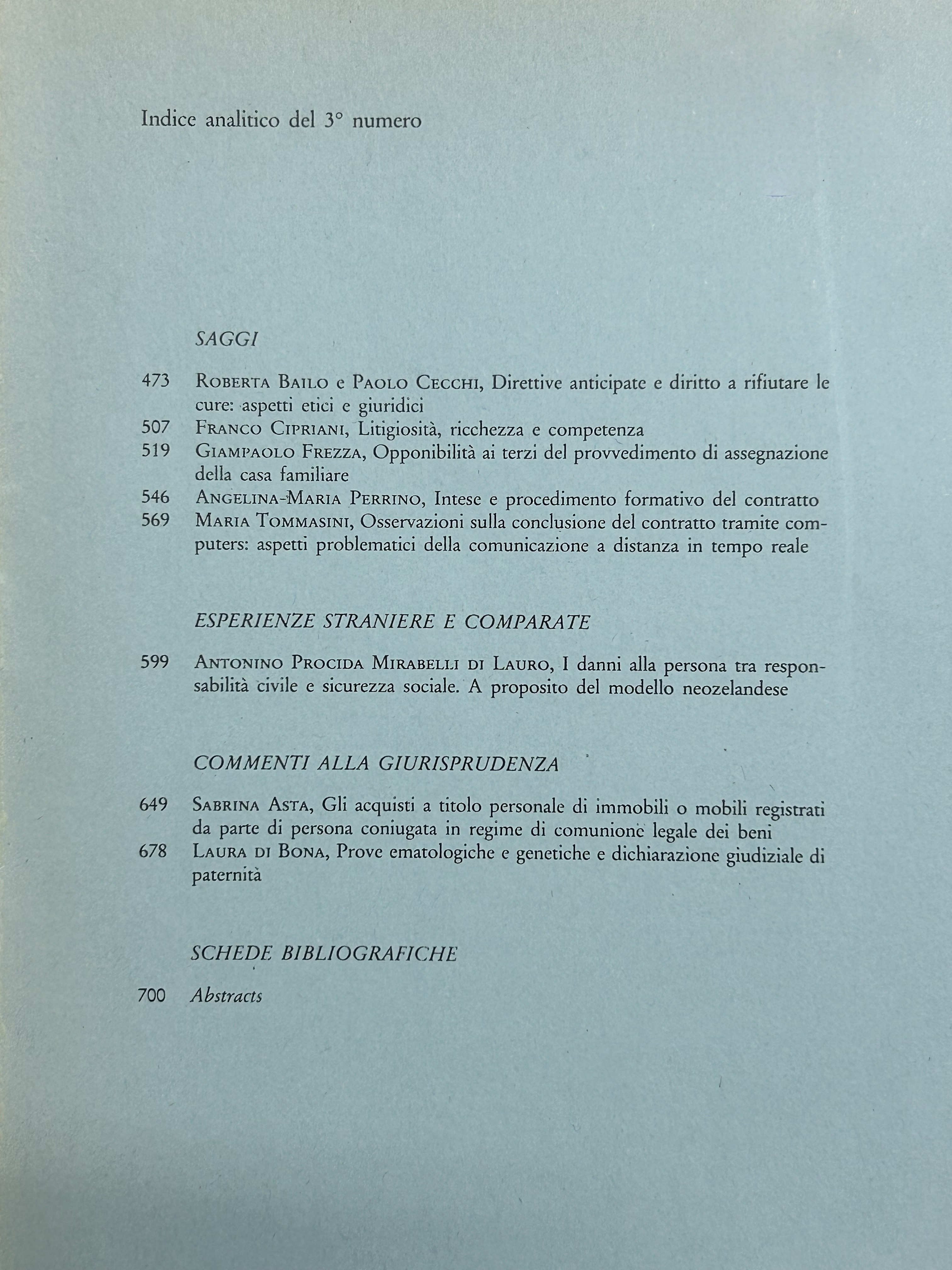 Barbiera L. - Bianca C.M. - Caterini E. - Cipriani F. - Mazzarese S. - Nuzzo M. - Parente F. - Patroni Griffi L. - Procida Mirabelli Di Lauro A. - Ruscello F. - Violante U. et alii