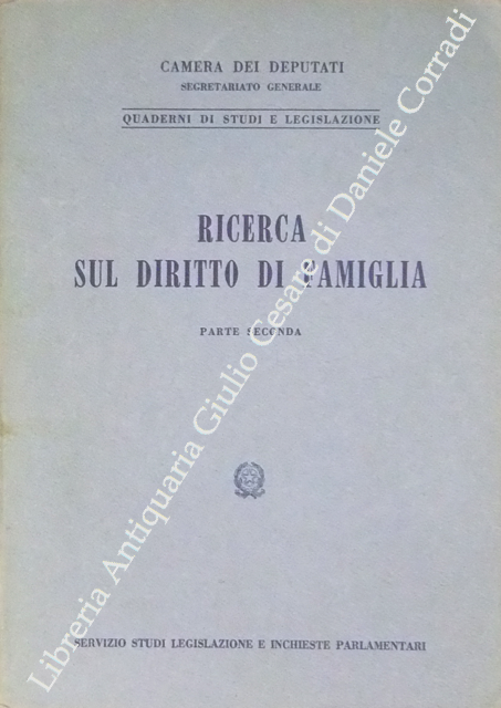 Ricerca sul diritto di famiglia. Parte prima - Il diritto di famiglia in Italia; Parte seconda - Ordinamenti stranieri