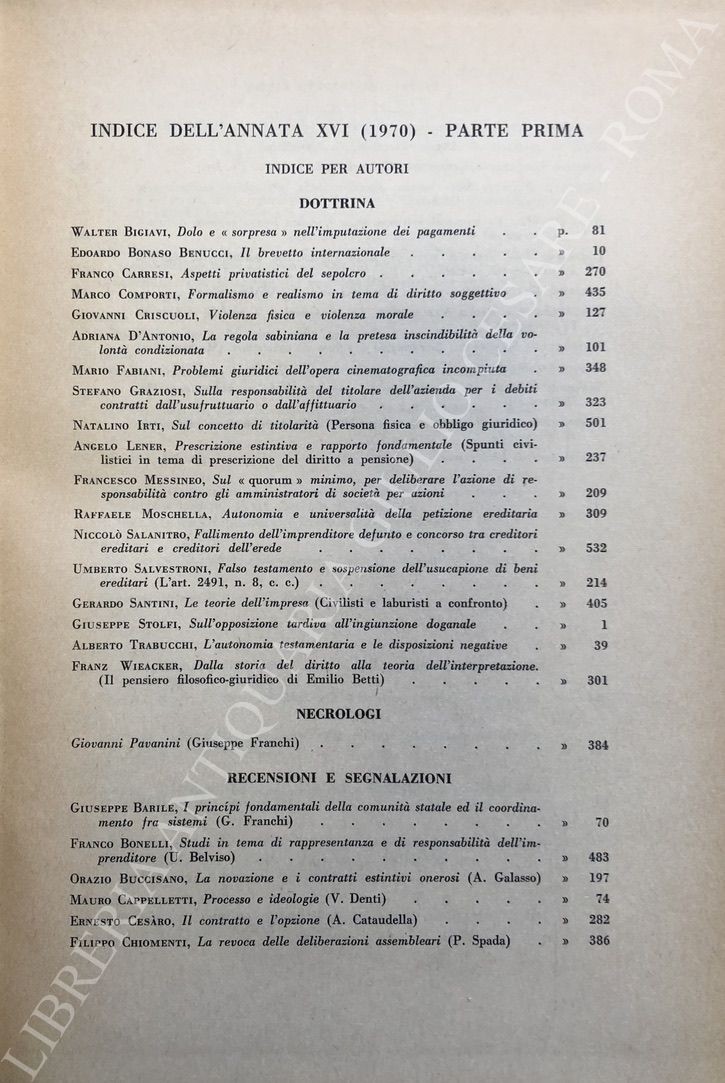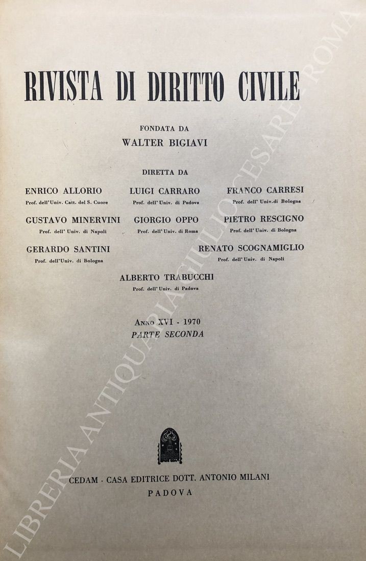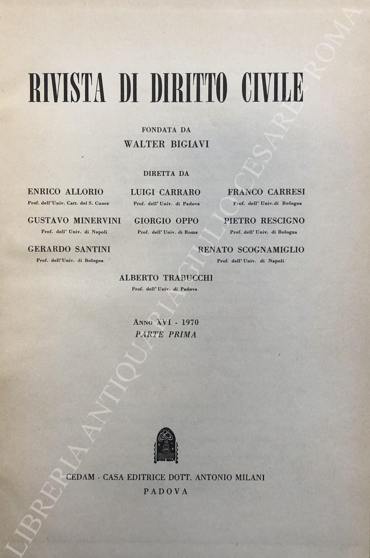 Rivista diretta da: Allorio, Bigiavi, Carraro, Carresi, Minervini, Oppo, Rescigno, Scognamiglio, Trabucchi.