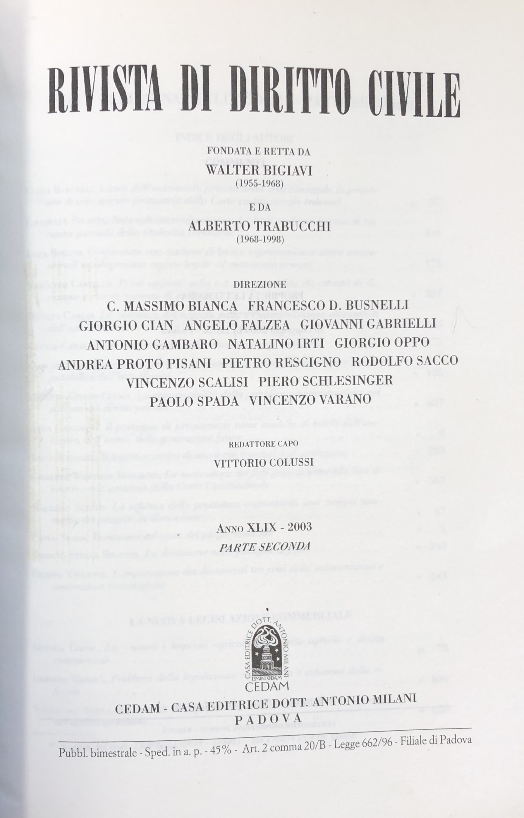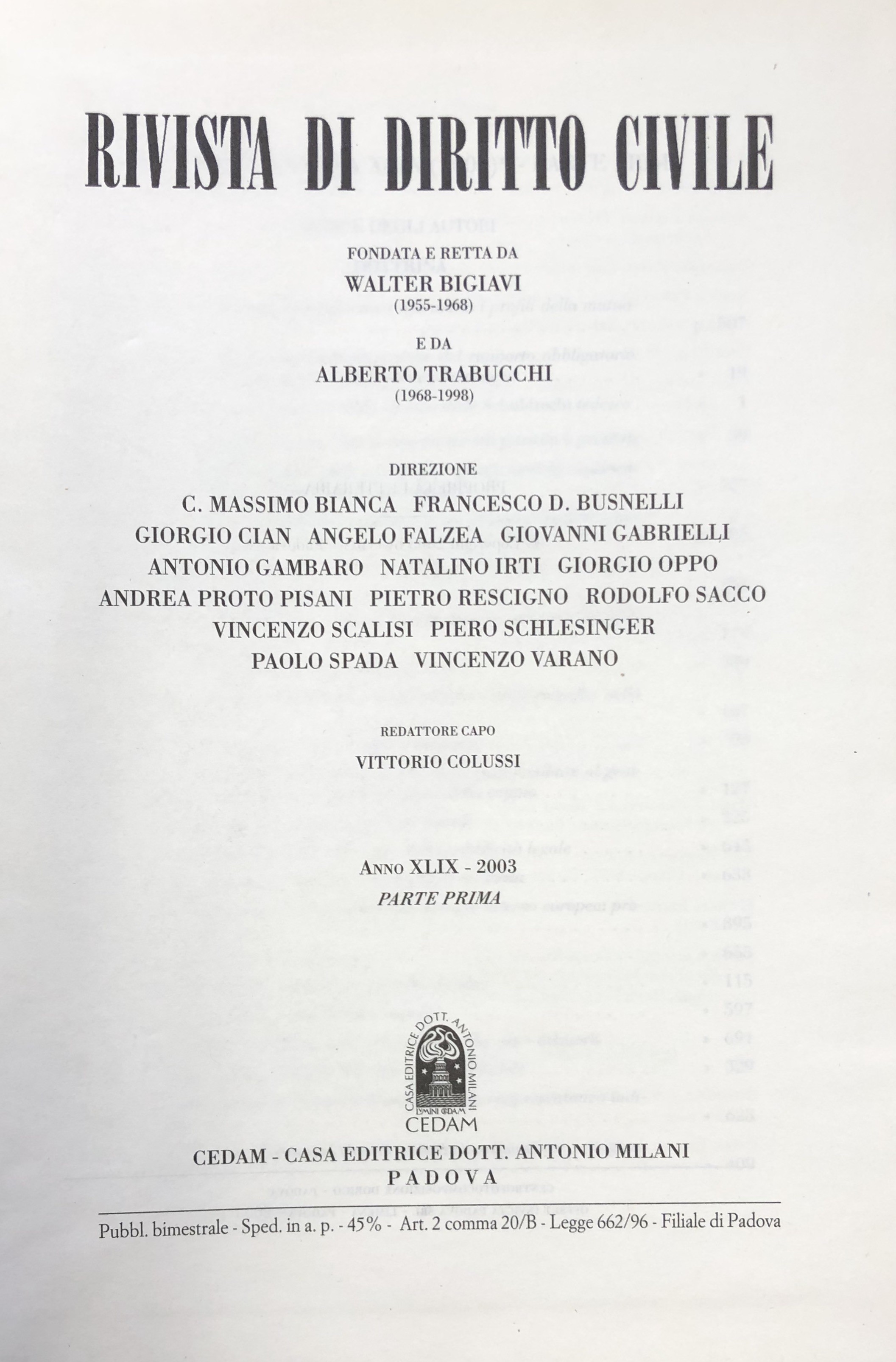 Rivista diretta da: Allorio, Bigiavi, Carraro, Carresi, Minervini, Oppo, Rescigno, Santini, Scognamiglio, Trabucchi.
