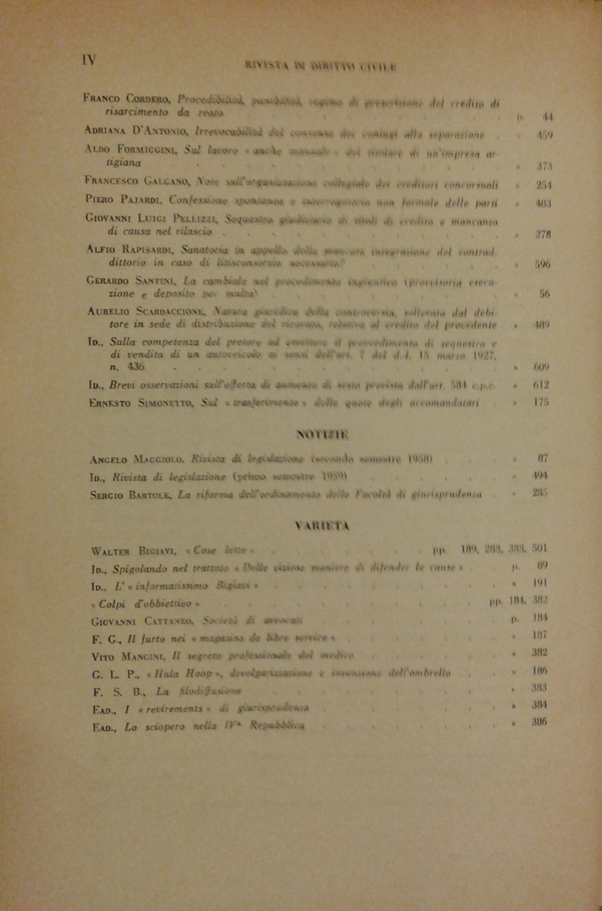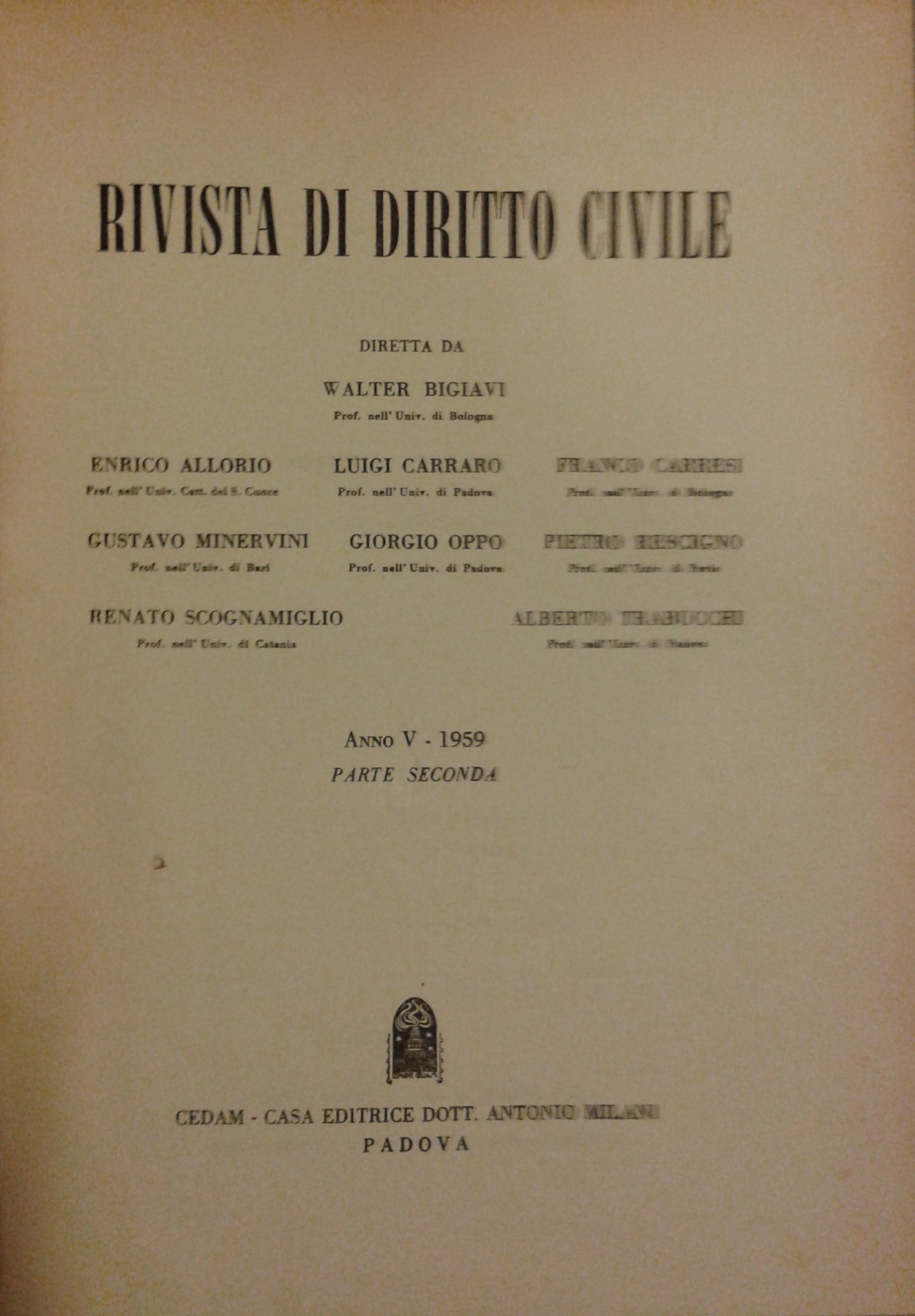 Rivista diretta da: Allorio, Bigiavi, Carraro, Carresi, Minervini, Oppo, Rescigno, Scognamiglio, Trabucchi.