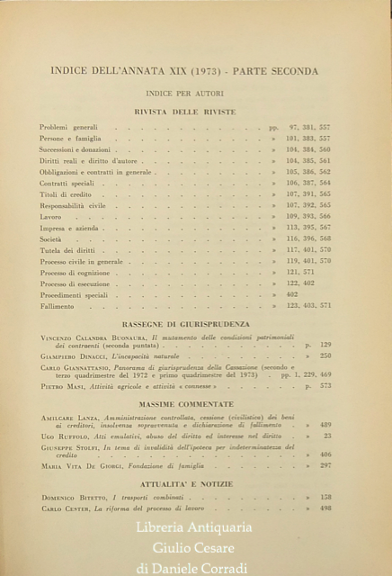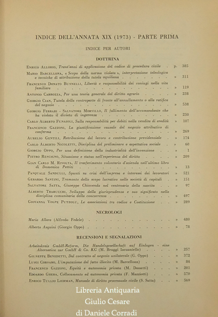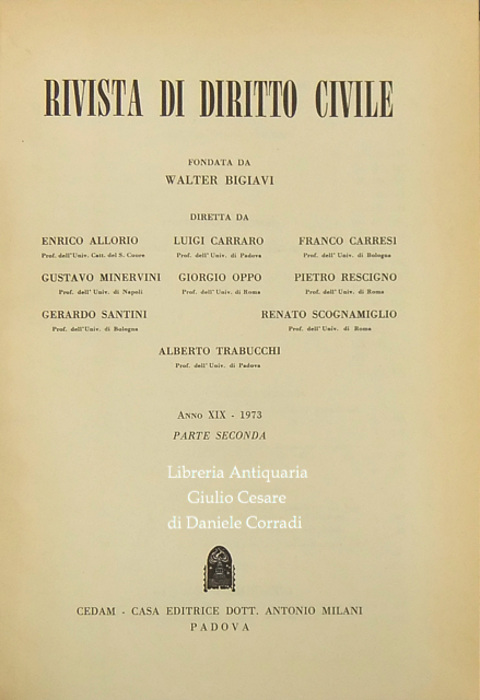 Rivista diretta da Allorio, Bigiavi, Carraro, Carresi, Minervini, Oppo, Rescigno, Santini, Scognamiglio, Trabucchi.