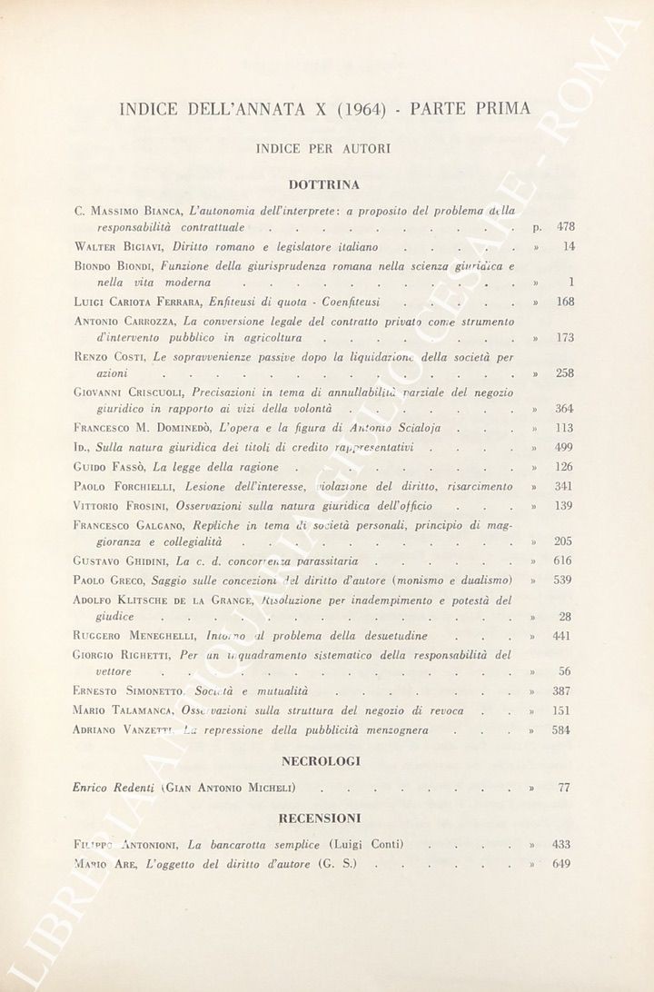Rivista diretta da: Allorio, Bigiavi, Carraro, Carresi, Minervini, Oppo, Rescigno, Scognamiglio, Trabucchi.