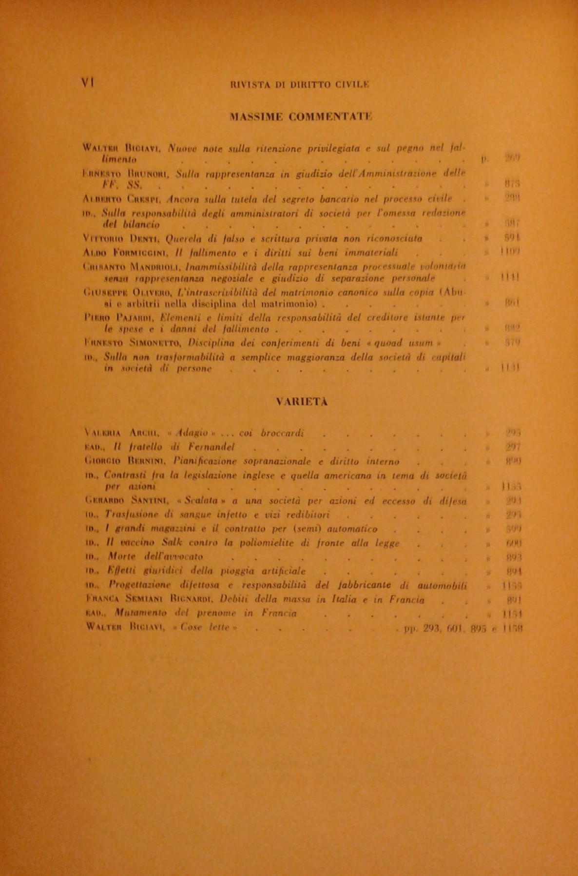 Rivista diretta da: Allorio, Bigiavi, Carraro, Carresi, Minervini, Oppo, Trabucchi.