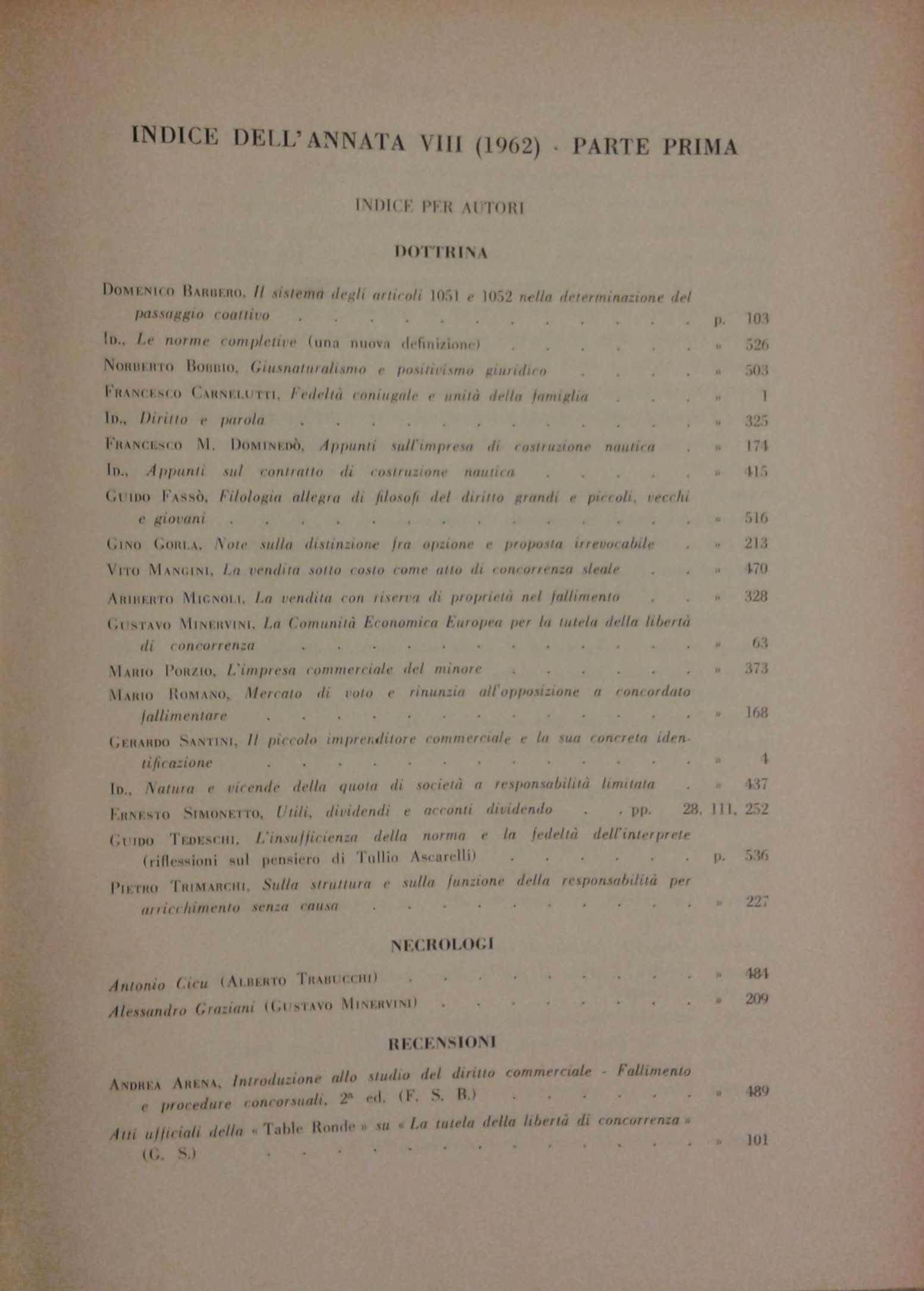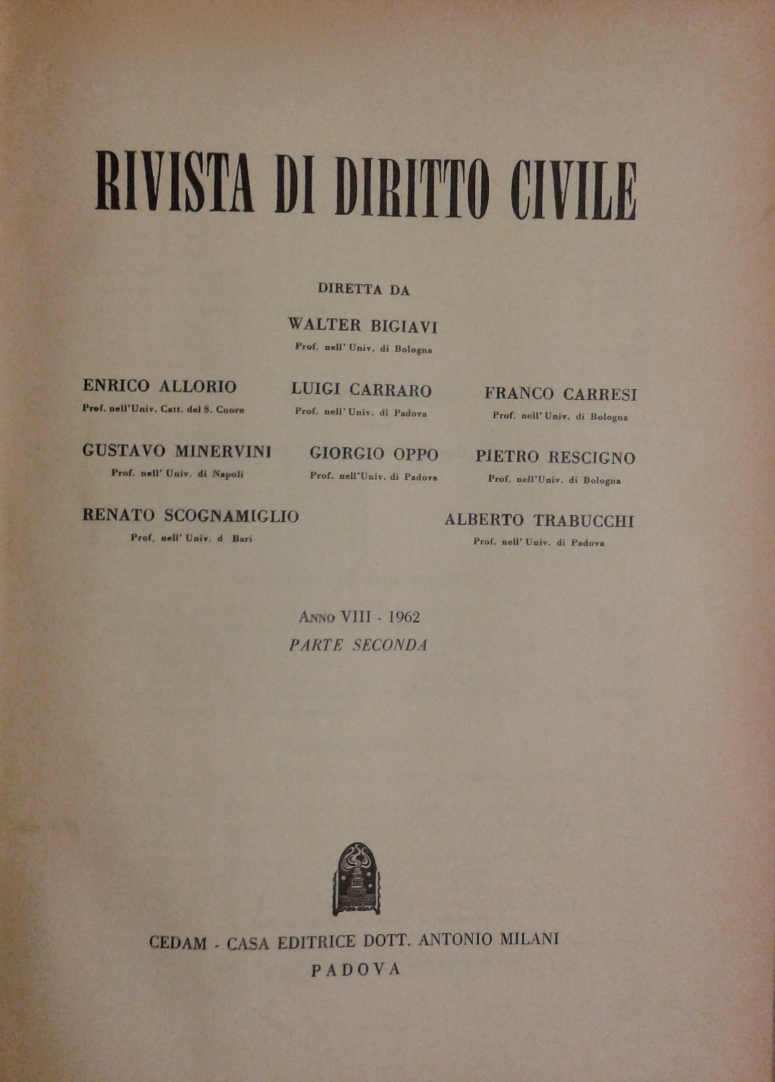 Rivista diretta da: Allorio, Bigiavi, Carraro, Carresi, Minervini, Oppo, Rescigno, Scognamiglio, Trabucchi.