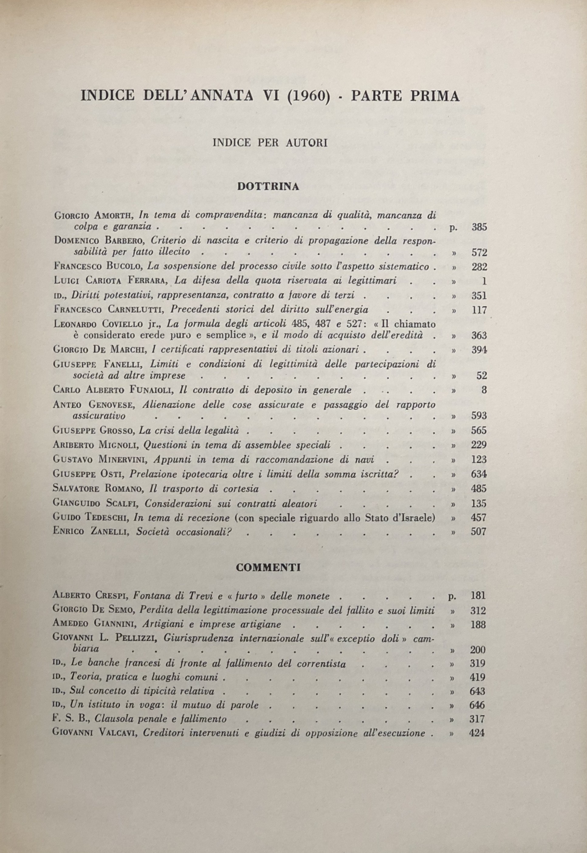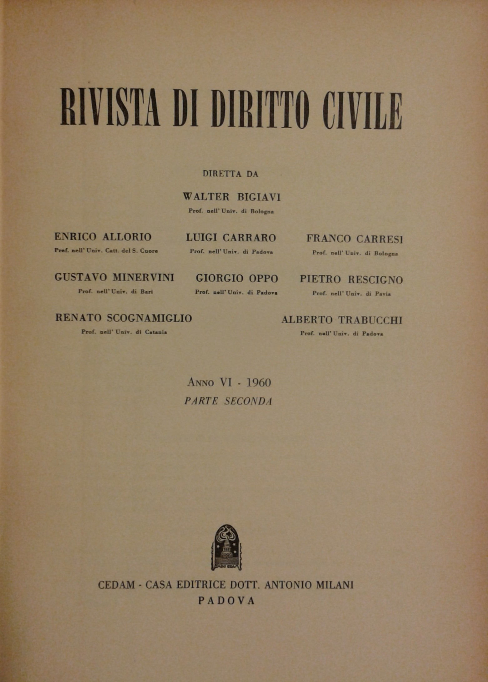 Rivista diretta da: Allorio, Bigiavi, Carraro, Carresi, Minervini, Oppo, Rescigno, Scognamiglio, Trabucchi.