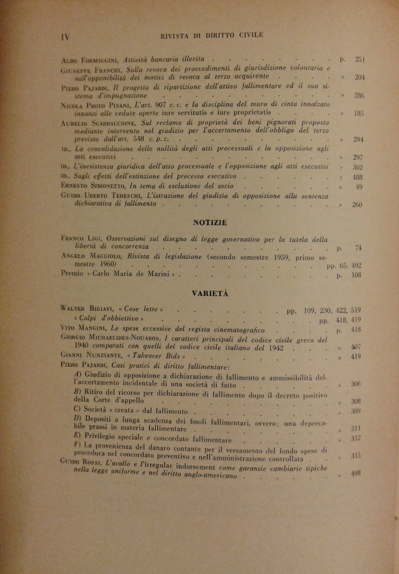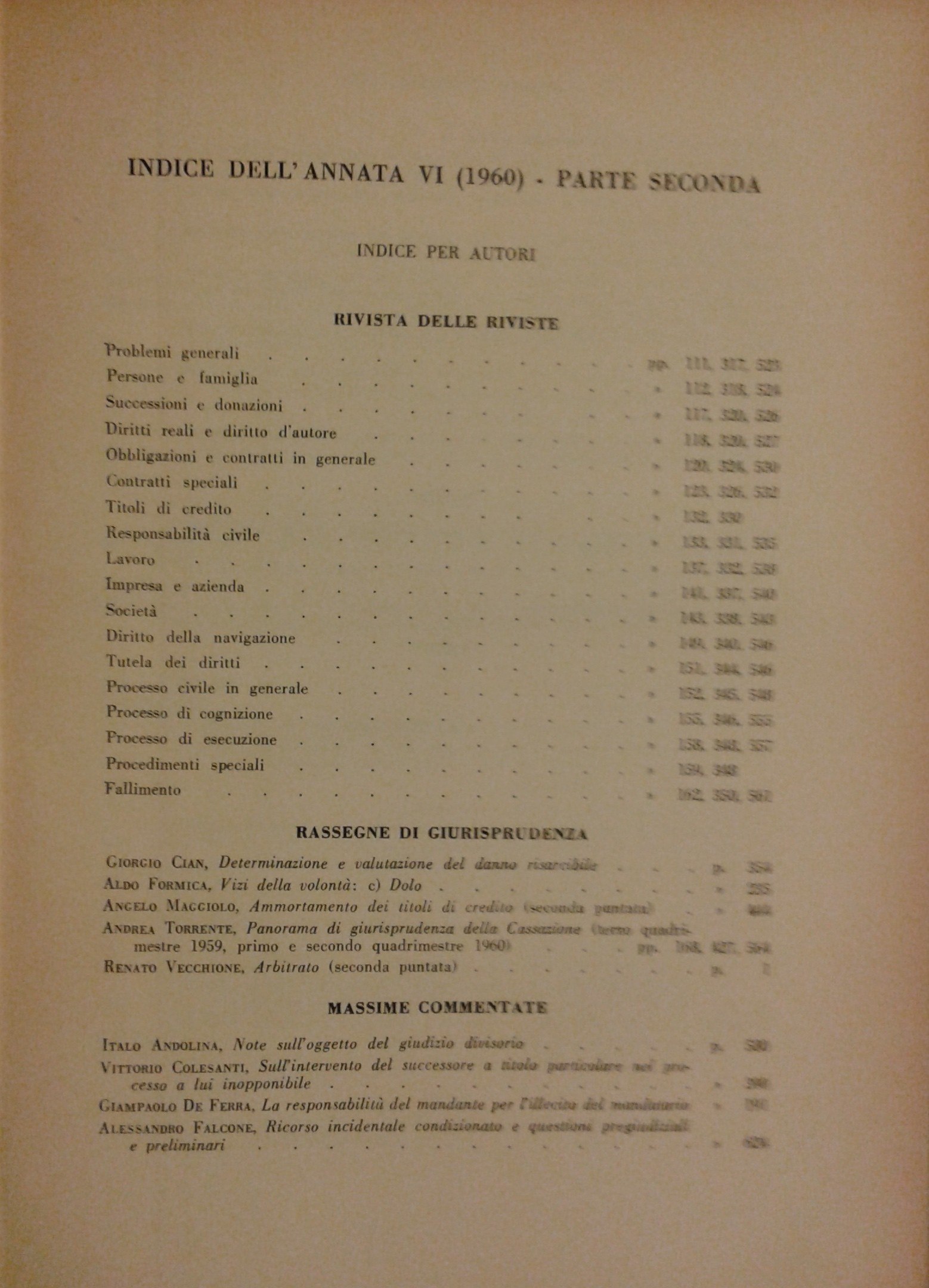 Rivista di diritto civile. Anno VI - 1960