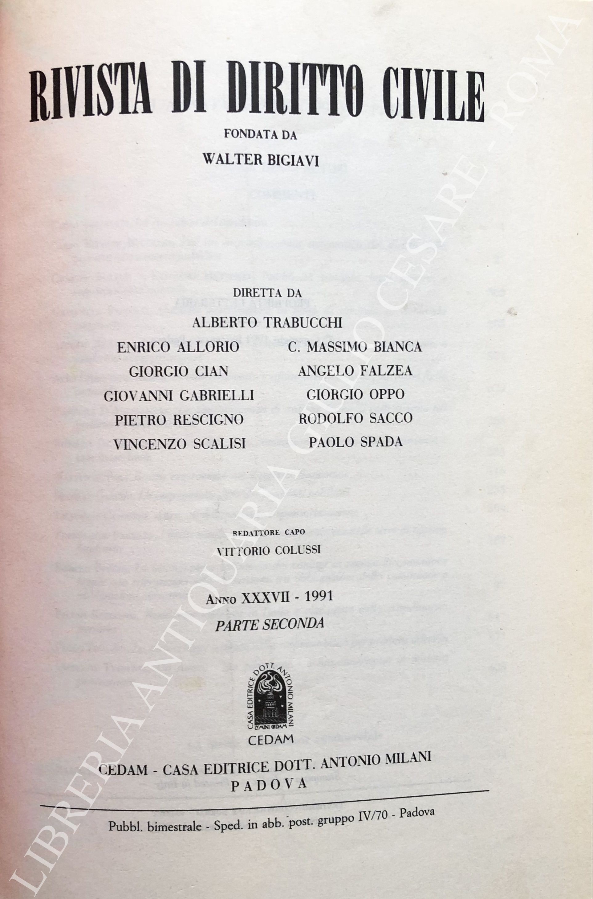 Rivista diretta da Allorio, Bigiavi, Carraro, Carresi, Minervini, Oppo, Rescigno, Santini, Scognamiglio, Trabucchi.