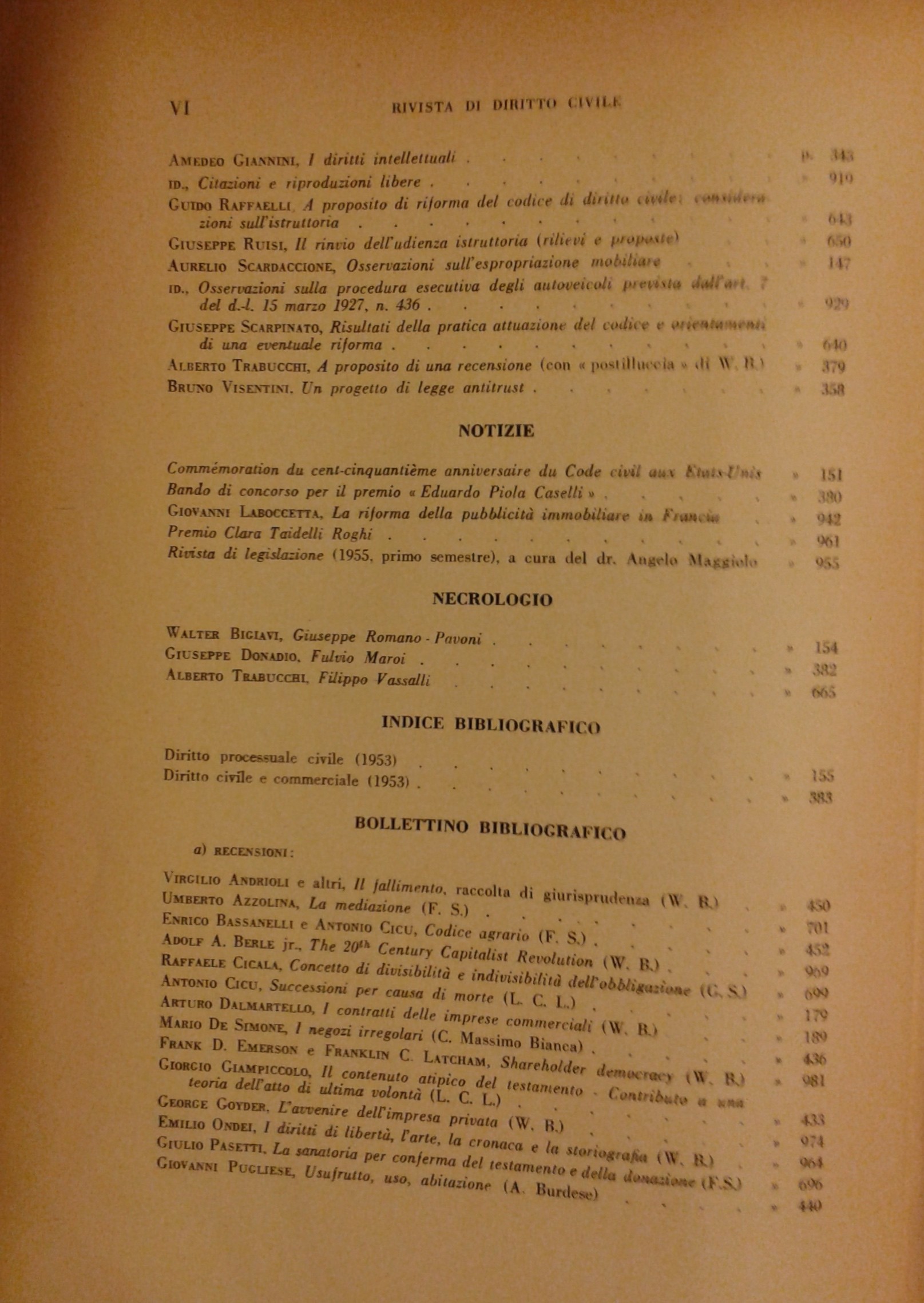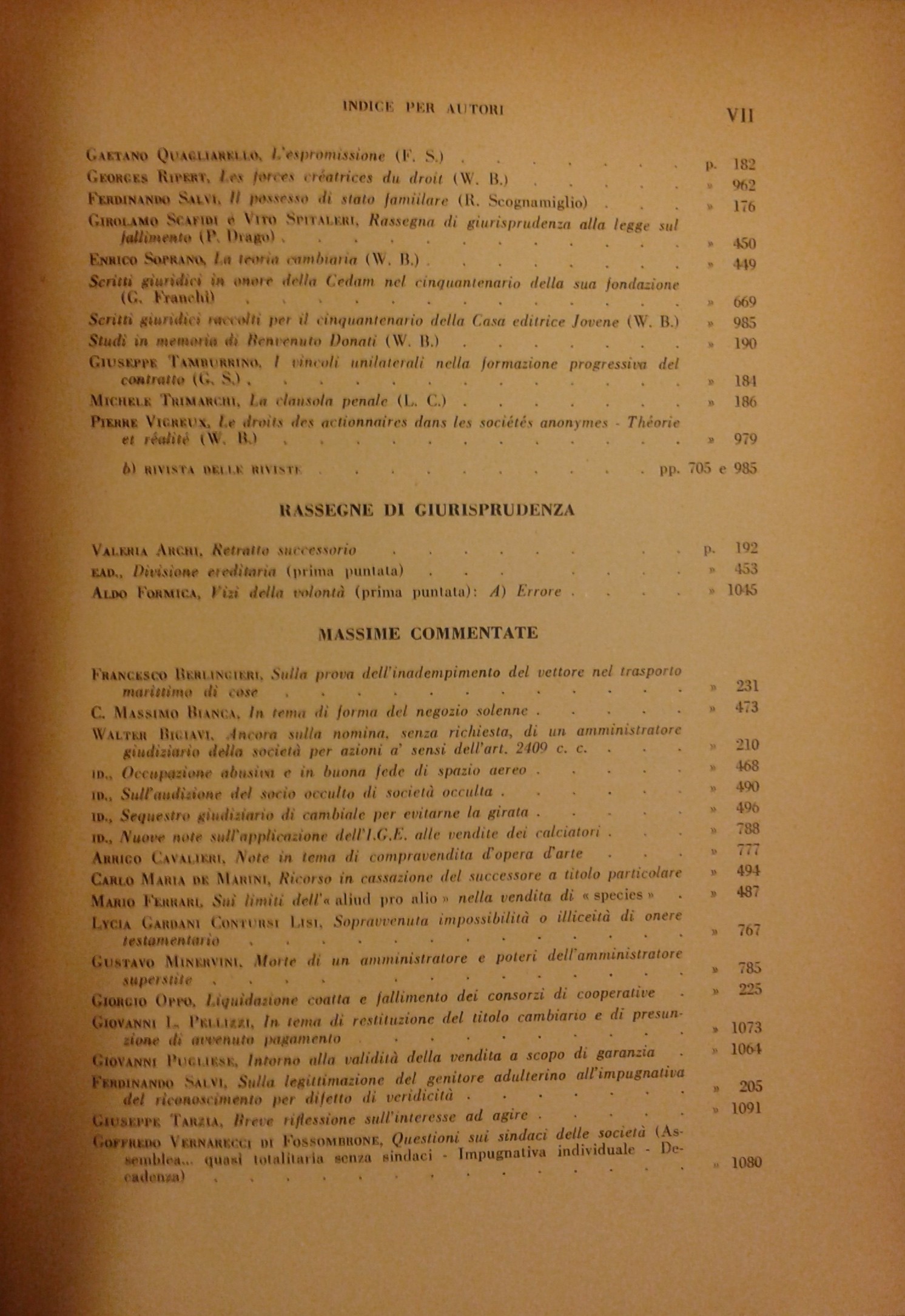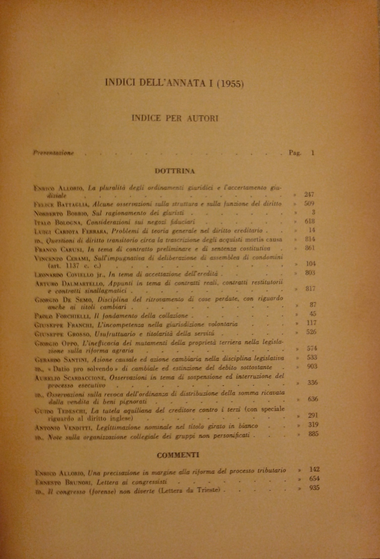 Allorio E. - Bigiavi W. - Bobbio N. - Carraro L. - Carresi F. - Coviello l. jr. - Dalmartello A. - Forchielli P. - Minervini G. - Oppo G. - Trabucchi A. et alii