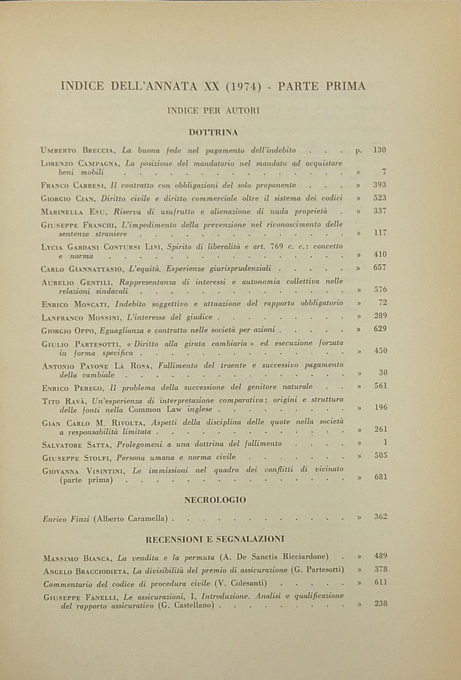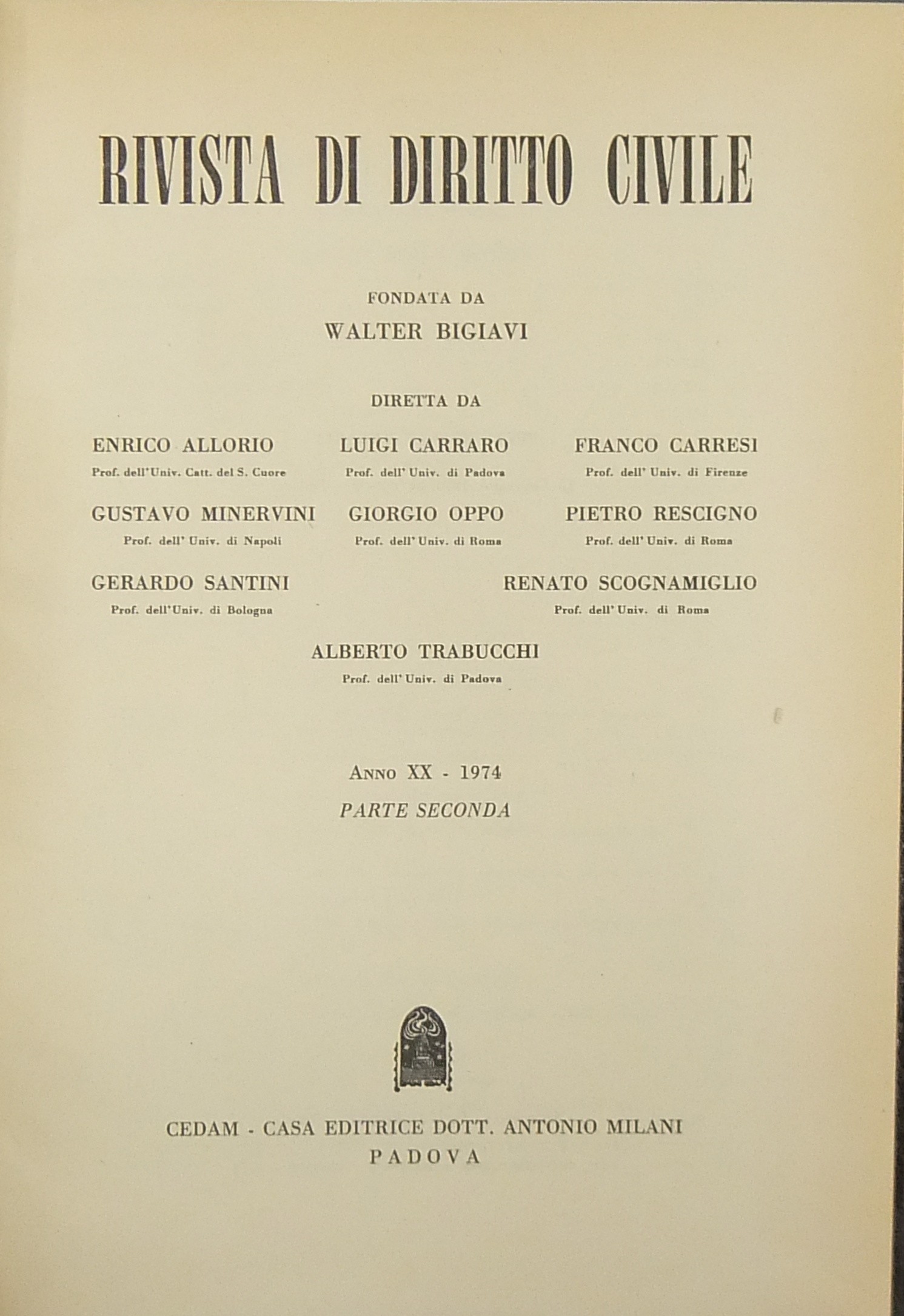 Rivista diretta da: Allorio, Bigiavi, Carraro, Carresi, Minervini, Oppo, Rescigno, Santini, Scognamiglio, Trabucchi.