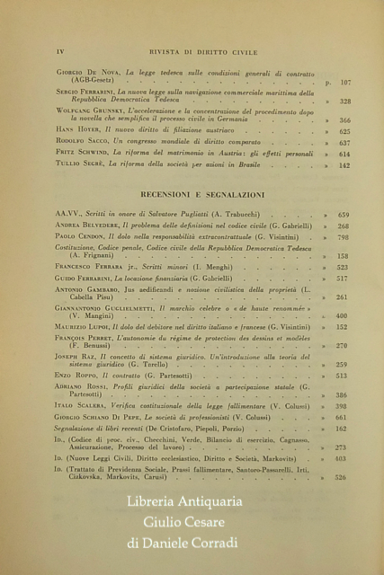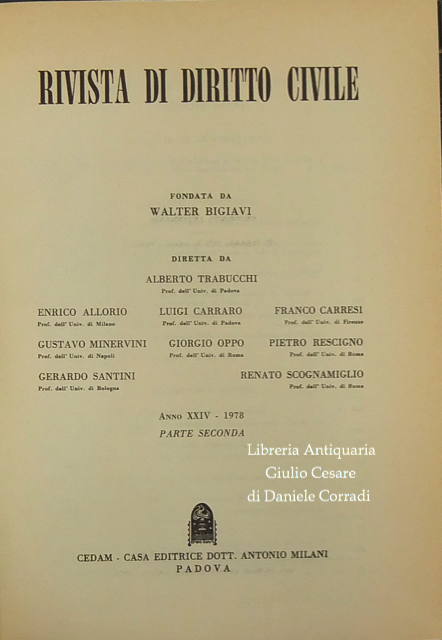 Rivista diretta da Allorio, Bigiavi, Carraro, Carresi, Minervini, Oppo, Rescigno, Santini, Scognamiglio, Trabucchi.