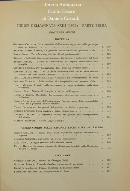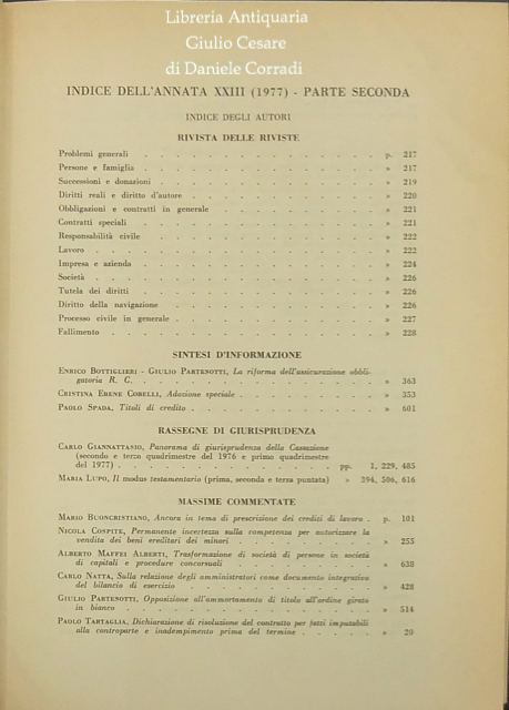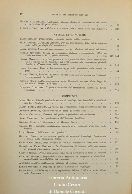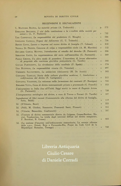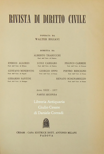 Rivista diretta da Allorio, Bigiavi, Carraro, Carresi, Minervini, Oppo, Rescigno, Santini, Scognamiglio, Trabucchi.