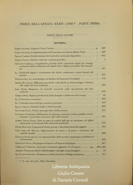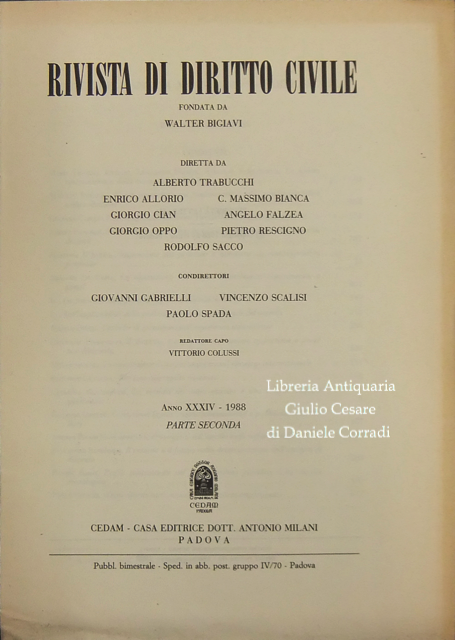 Rivista diretta da Allorio, Bigiavi, Carraro, Carresi, Minervini, Oppo, Rescigno, Santini, Scognamiglio, Trabucchi.