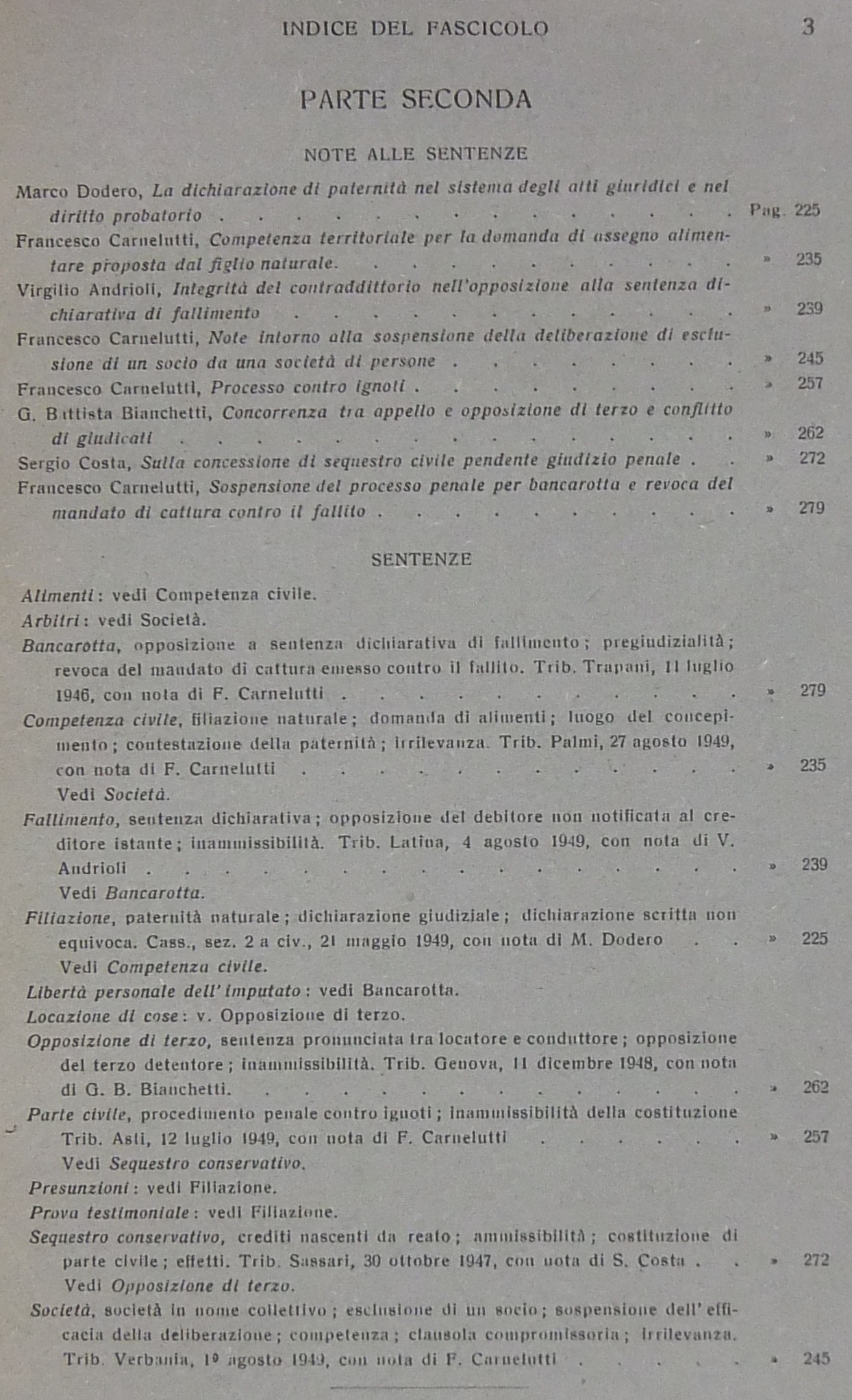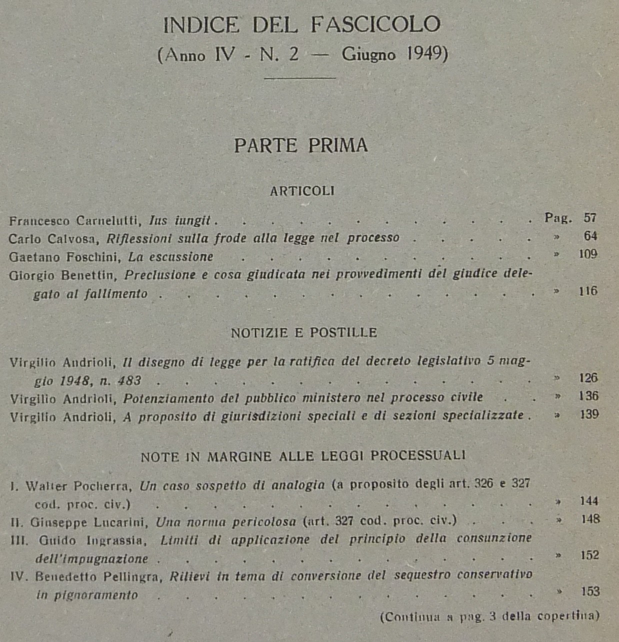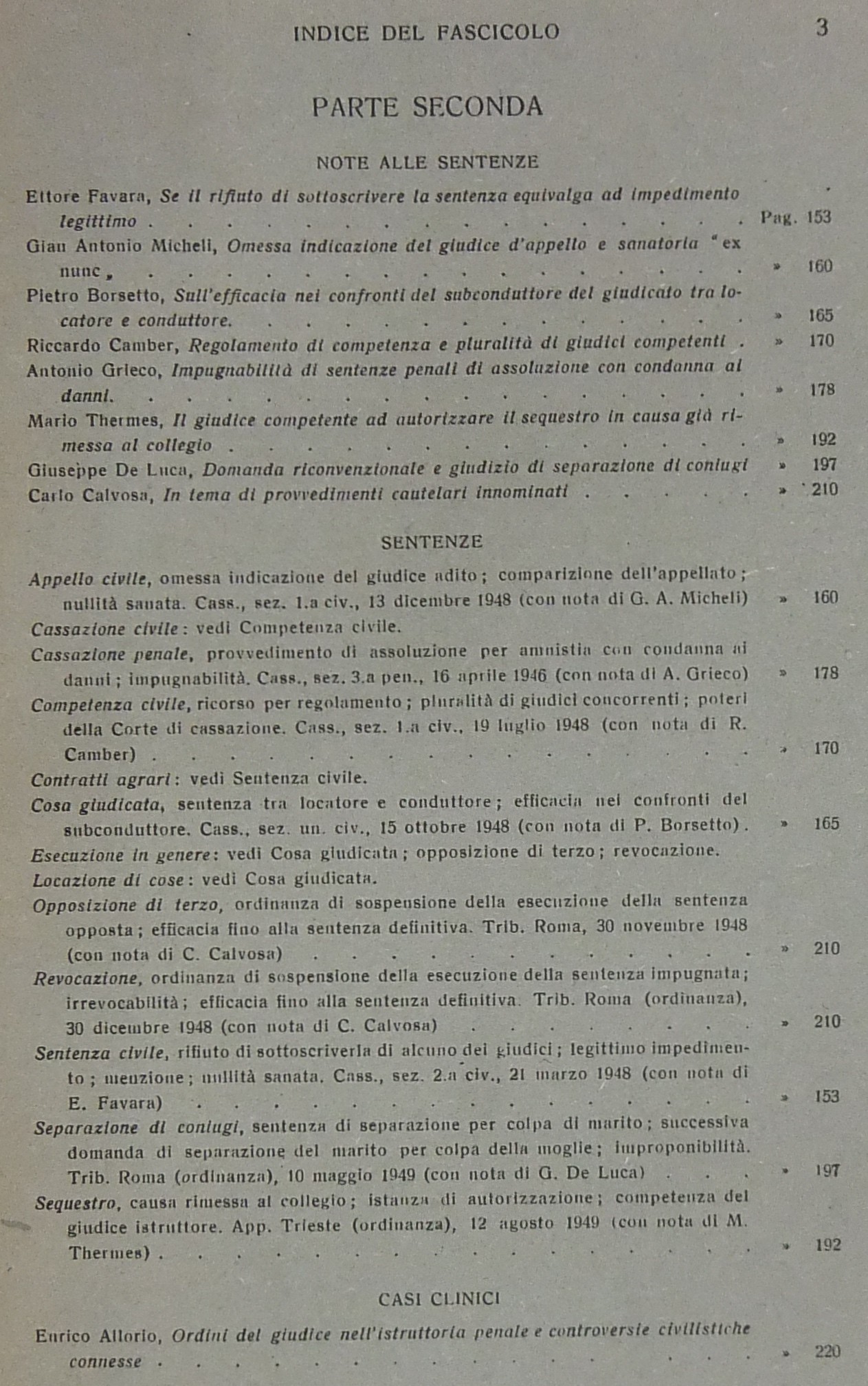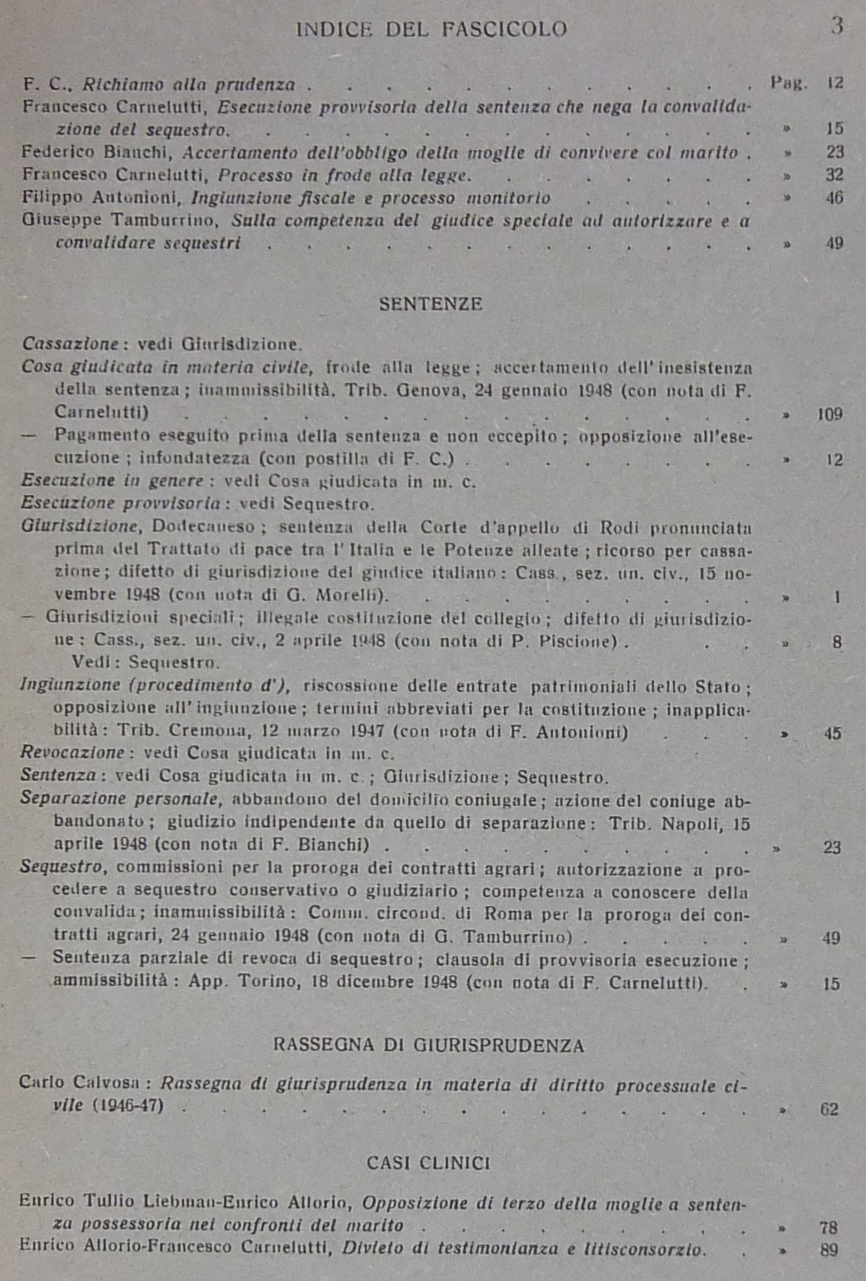 Allorio E. - Andrioli V. - Calvosa C. - Carnelutti F. - Foschini G. - Garbagnati E. - Gasparri P. - Liebman E.T. - Micheli G.A. - Pavanini G. - Satta S. et alii
