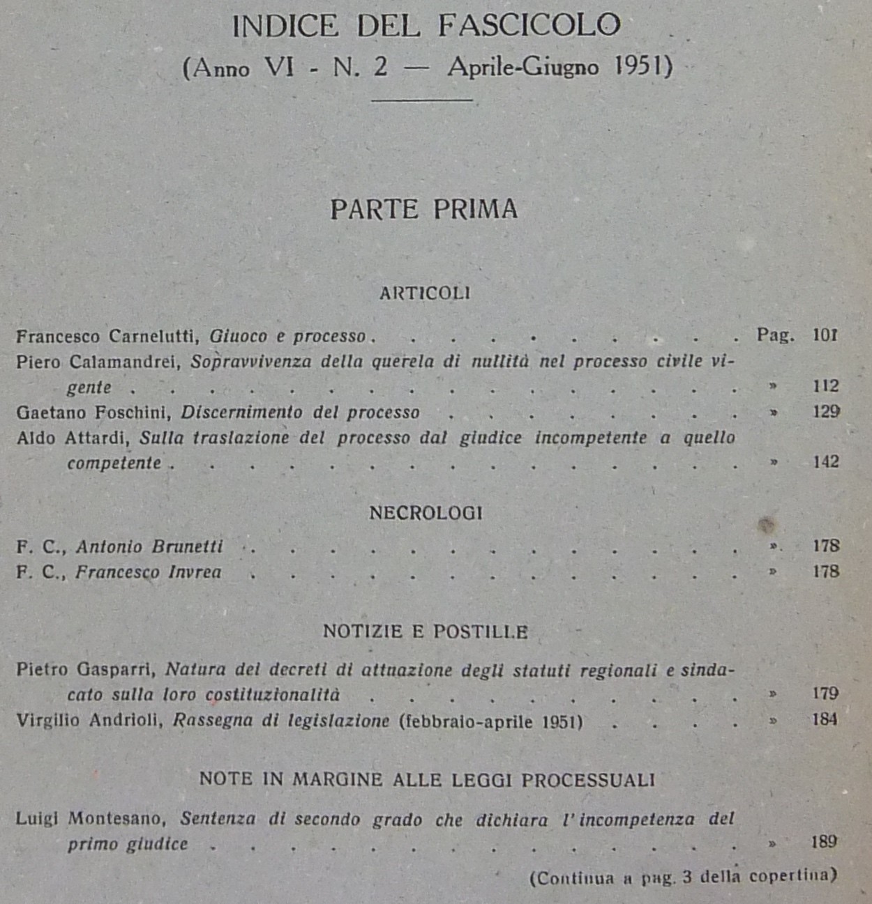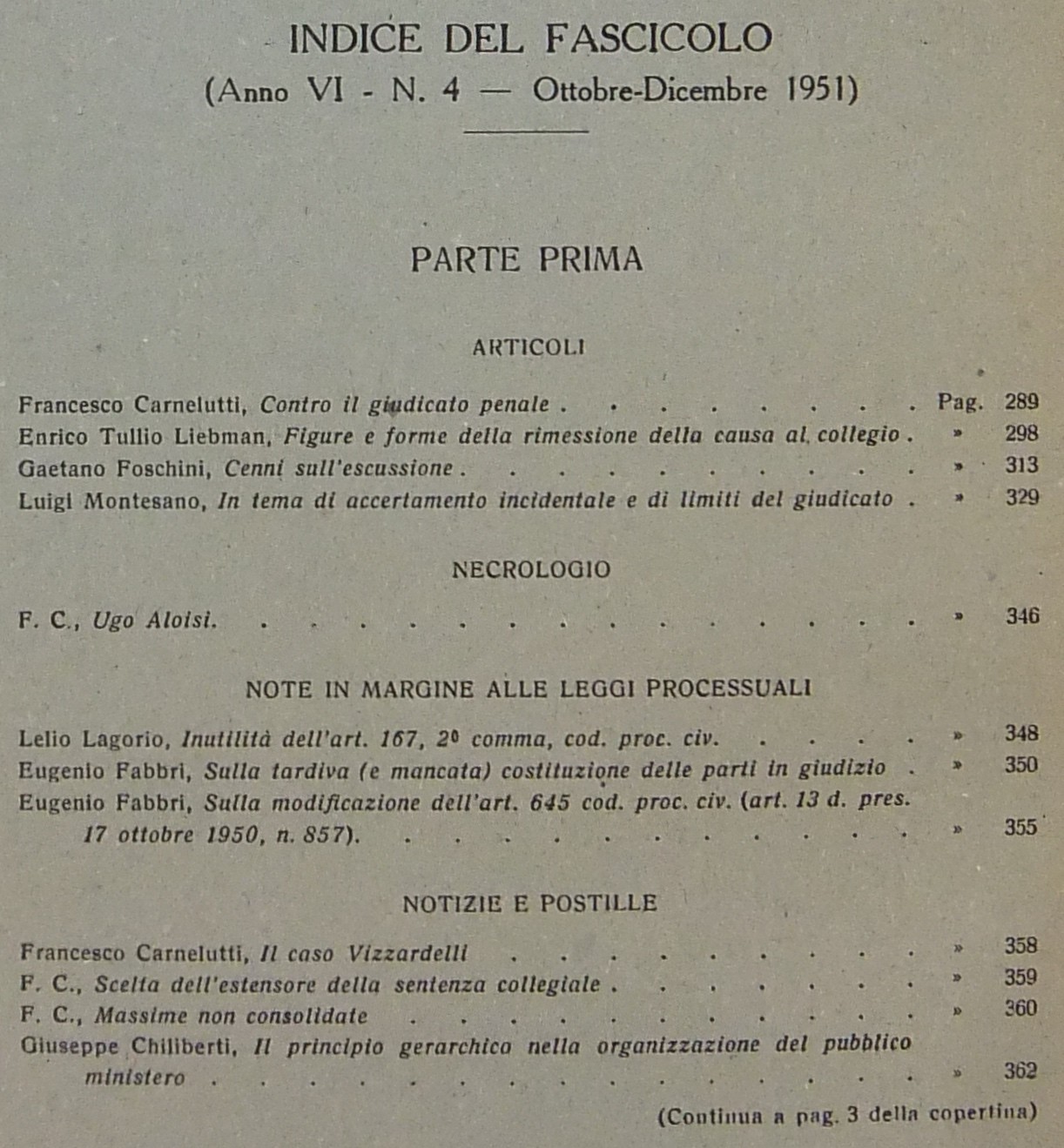 Andrioli V. - Attardi A. - Calamandrei P. - Foschini G. - Furno C. - Gasparri P. - Liebman E.T. - Montesano L. - Pugliese G. - Satta S. et alii