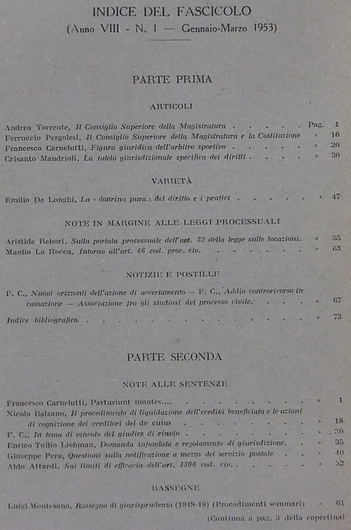 Attardi A. - Cappelletti M. - Carnelutti F. - Gasparri P. - Liebman E.T. - Minoli E. - Satta S. et alii