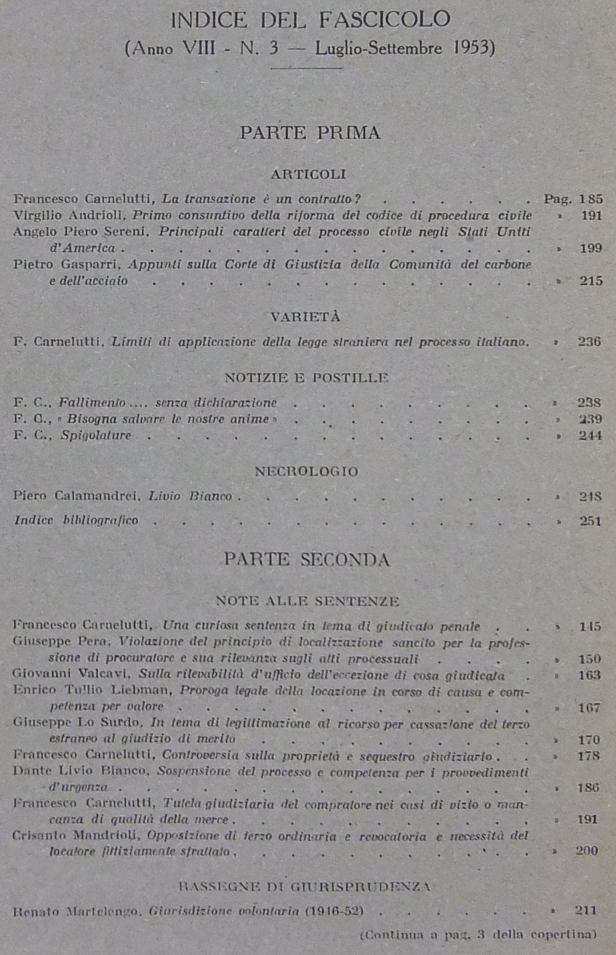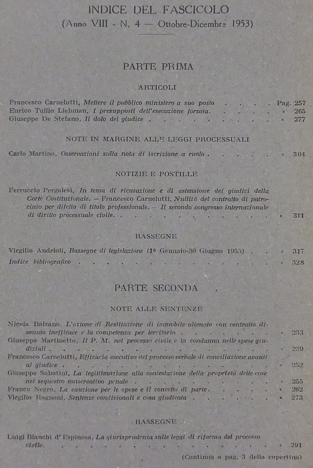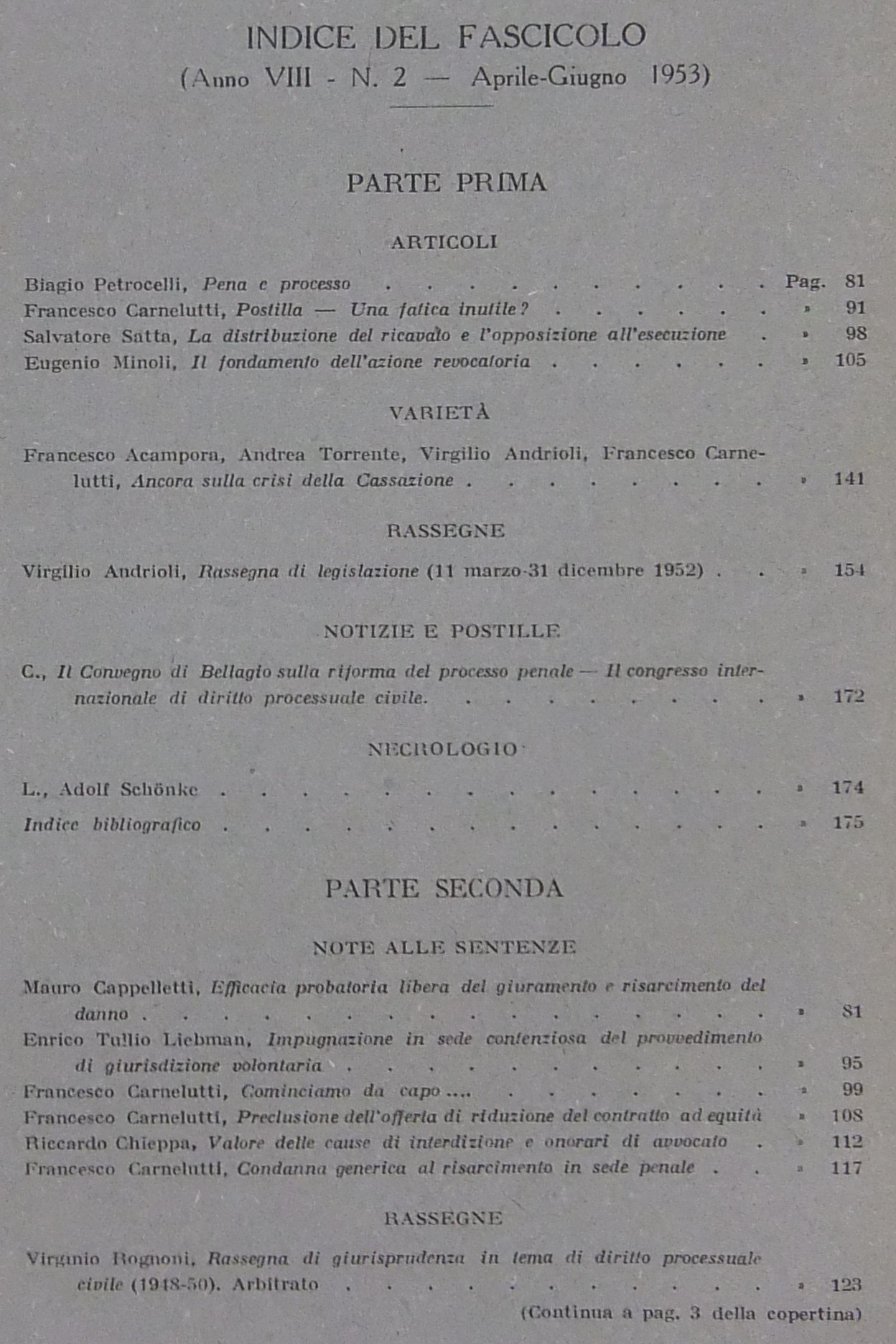 Rivista di Diritto Processuale. Annata 1953. Diretta da: Francesco Carnelutti, Giuseppe Chiovenda, Piero Calamandrei, Enrico Tullio Liebman. Anno VIII (Seconda Serie)
