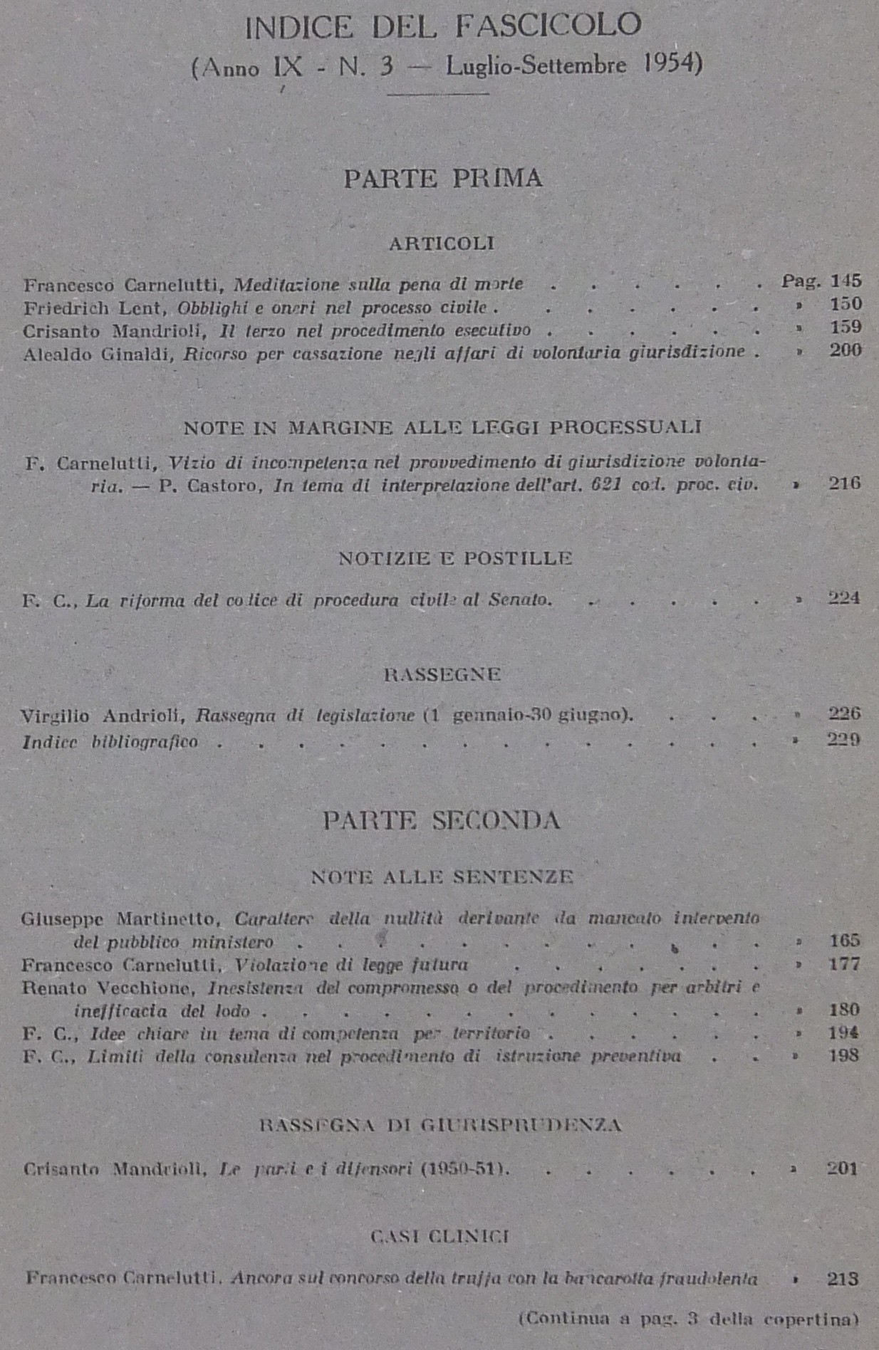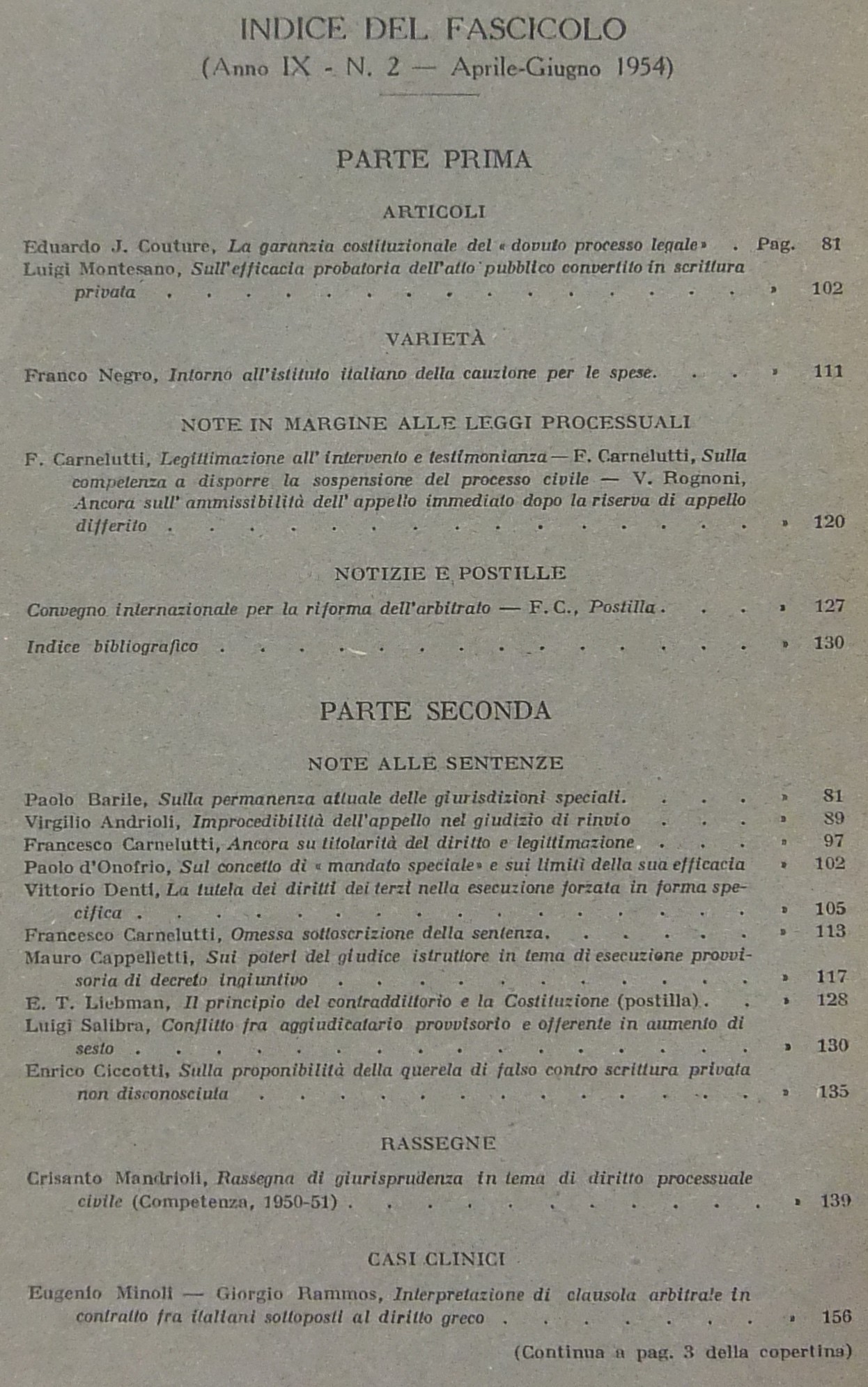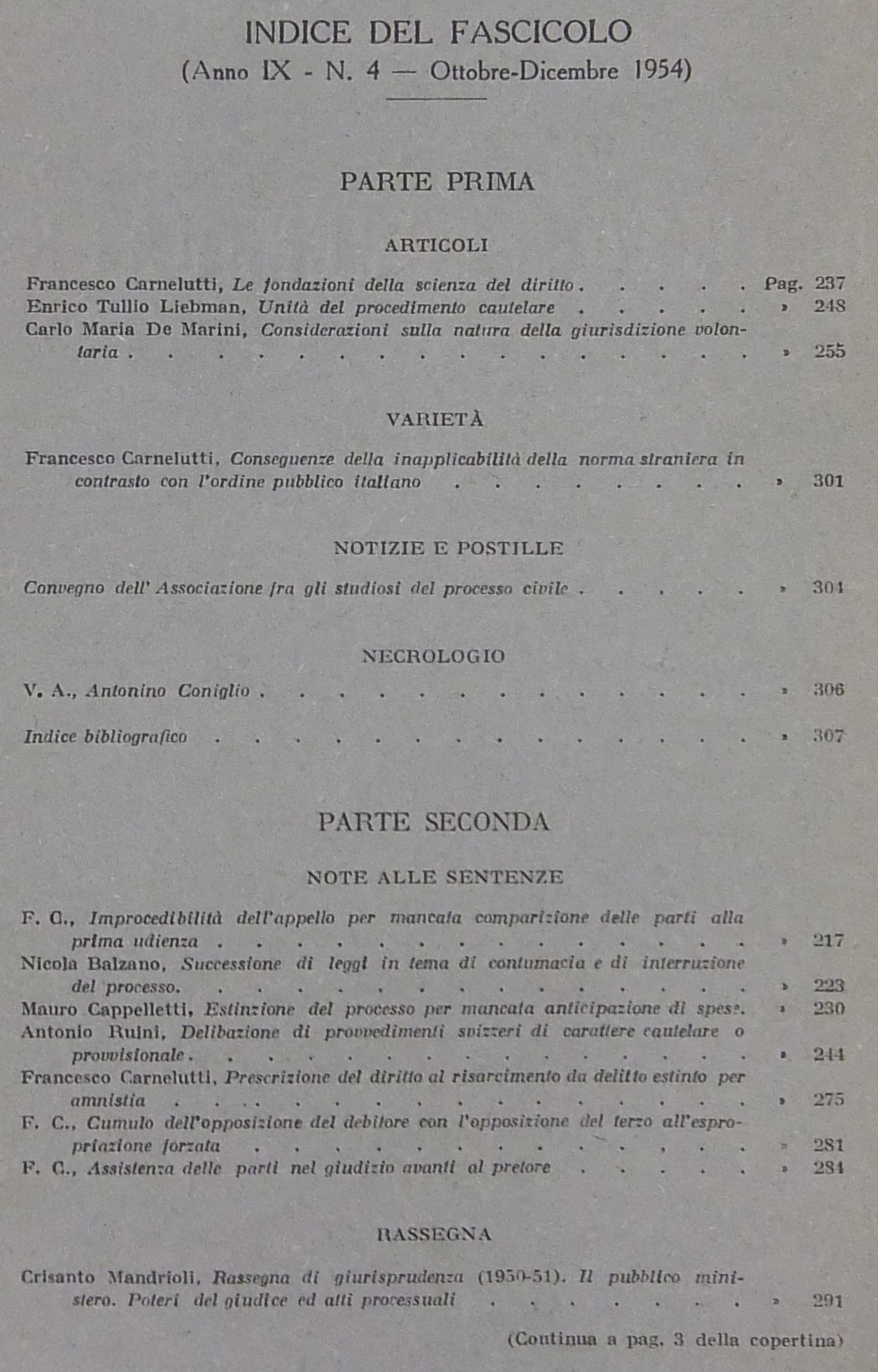 Rivista di Diritto Processuale. Annata 1954. Diretta da: Francesco Carnelutti, Giuseppe Chiovenda, Piero Calamandrei, Enrico Tullio Liebman. Anno IX (Seconda Serie)