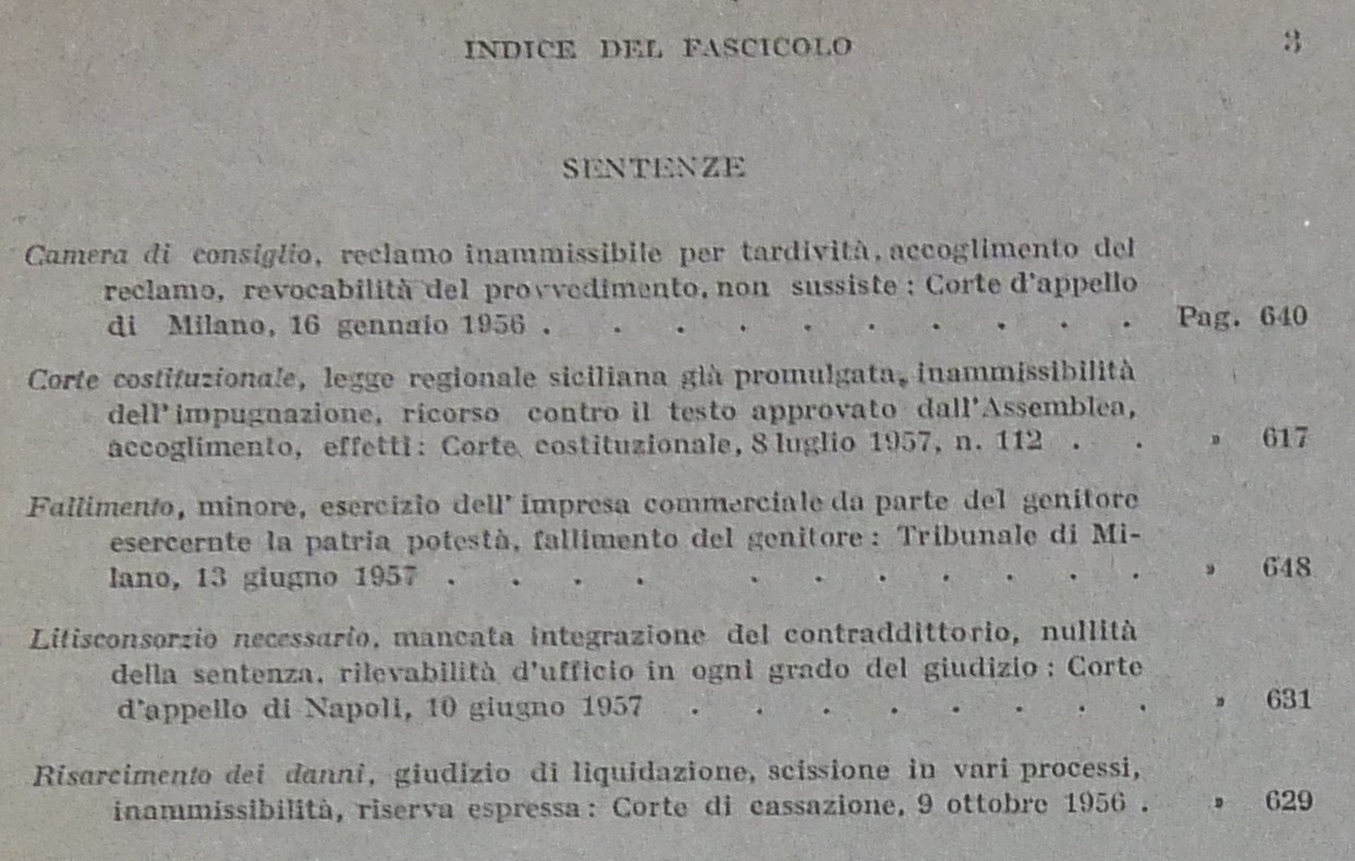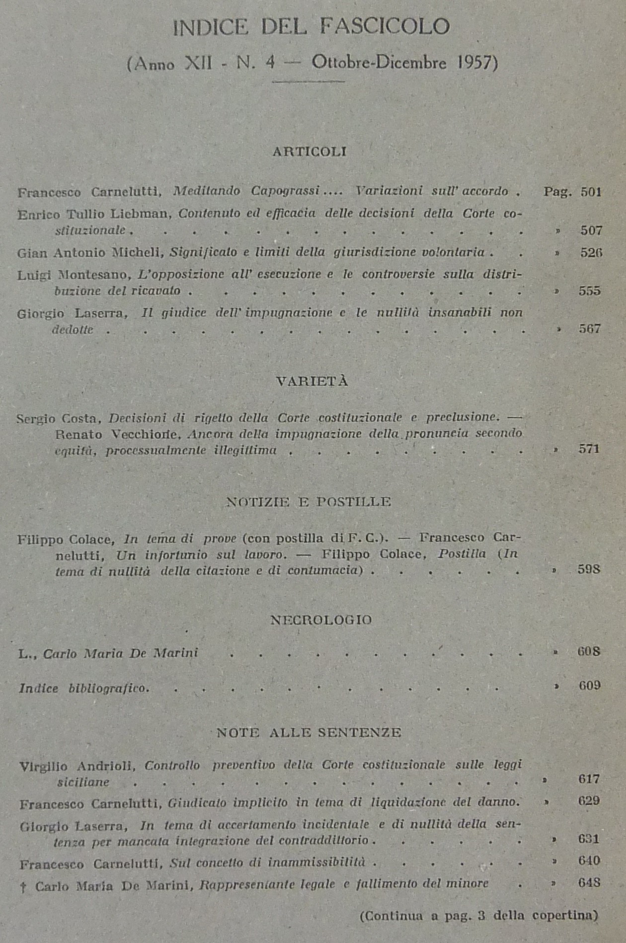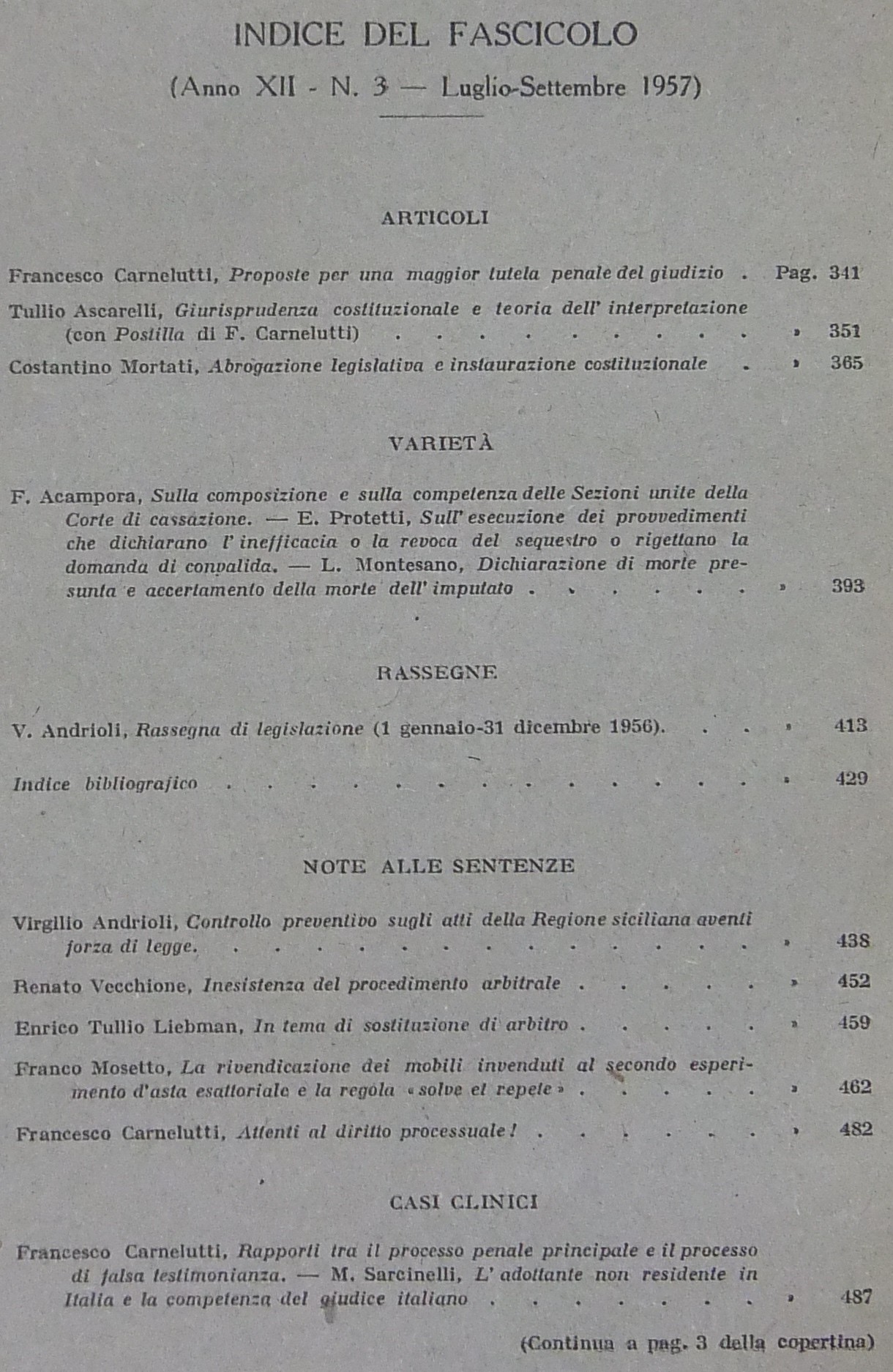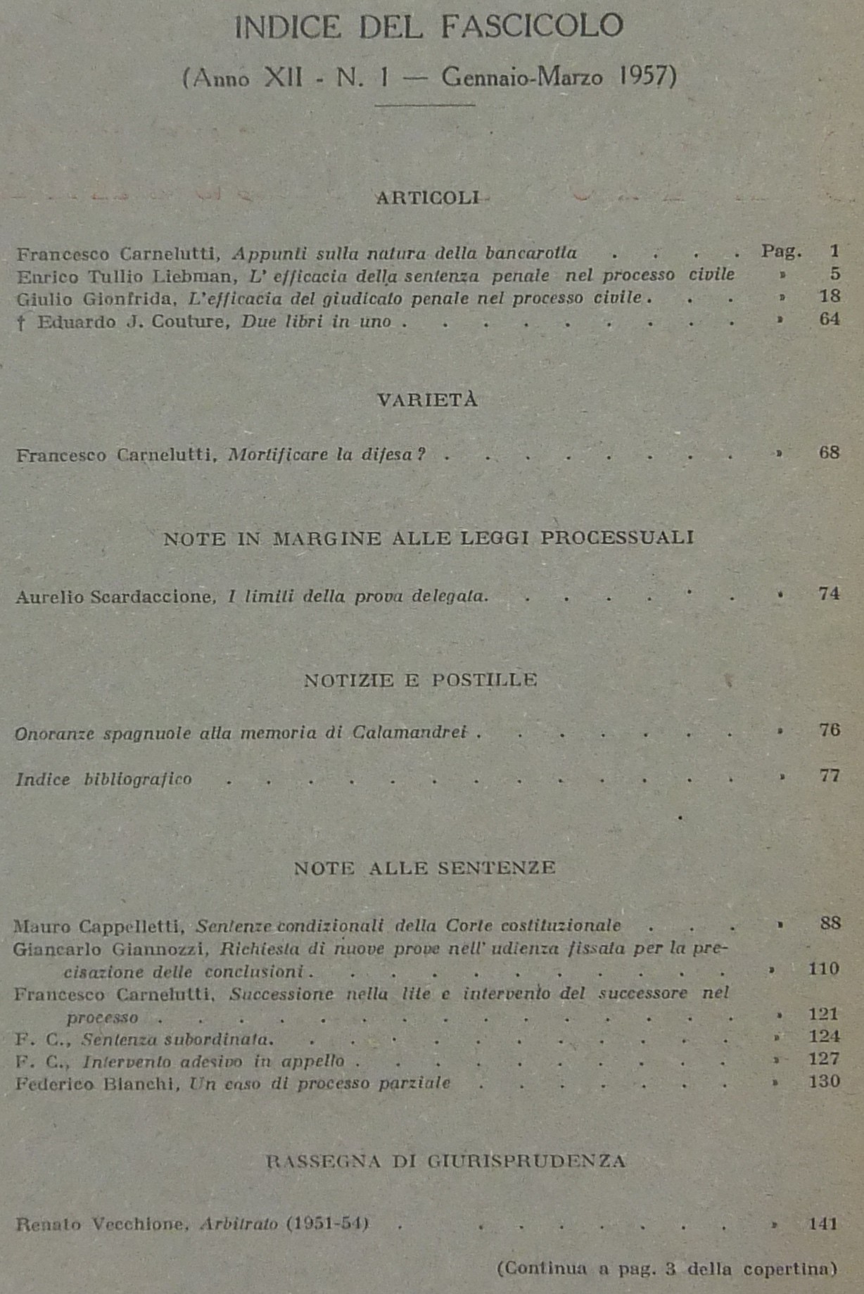 Alessi R. - Andrioli V. - Ascarelli T. - Cappelletti M. - Carnelutti F. - De Marini C.M. - Giannozzi G. - Grassetti C. - Laserra G. - Liebman E.T. - Mandrioli C. - Mortati C. et alii