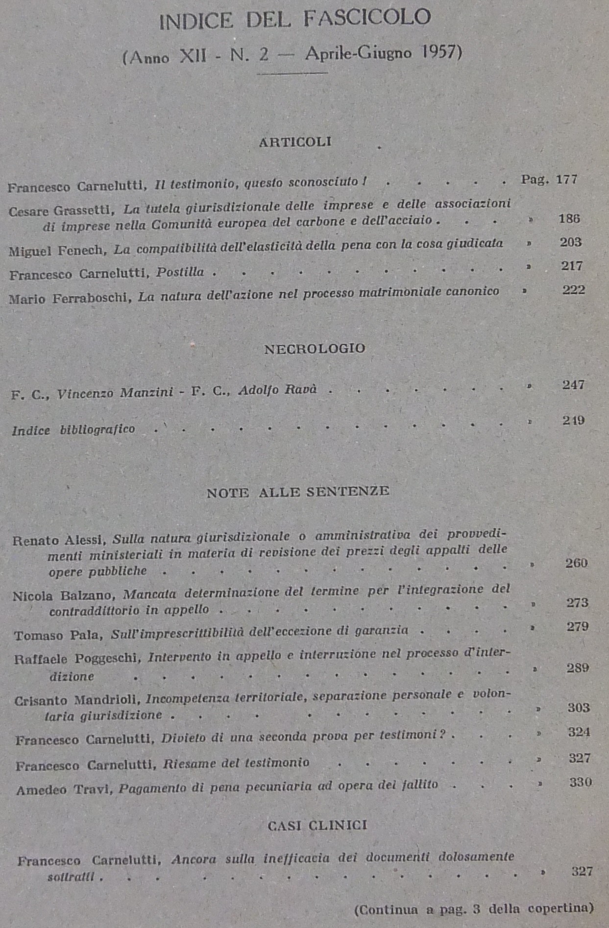 Rivista di Diritto Processuale. Annata 1957. Diretta da: Francesco Carnelutti, Giuseppe Chiovenda, Piero Calamandrei, Enrico Tullio Liebman. Anno XII (Seconda Serie)