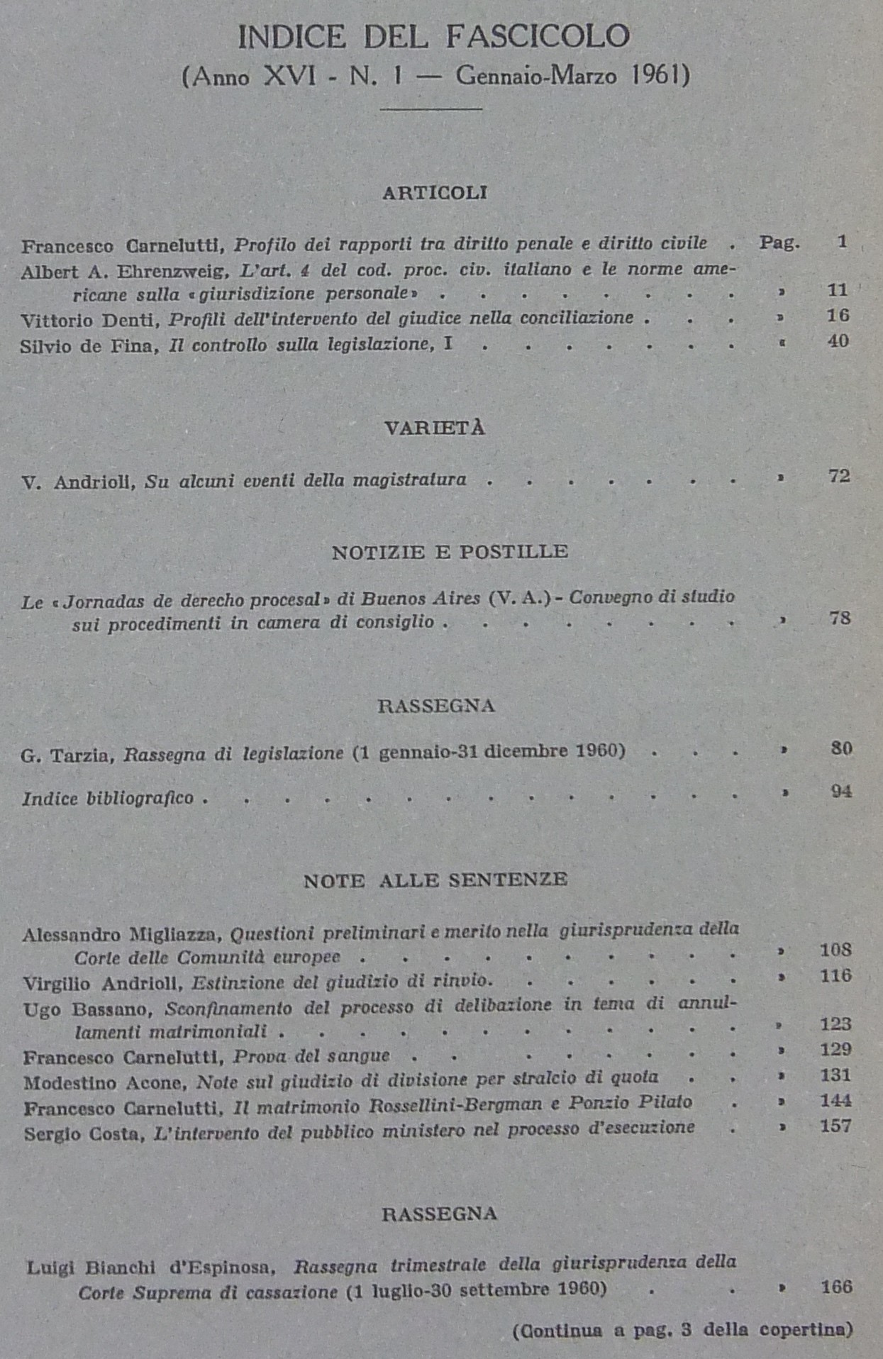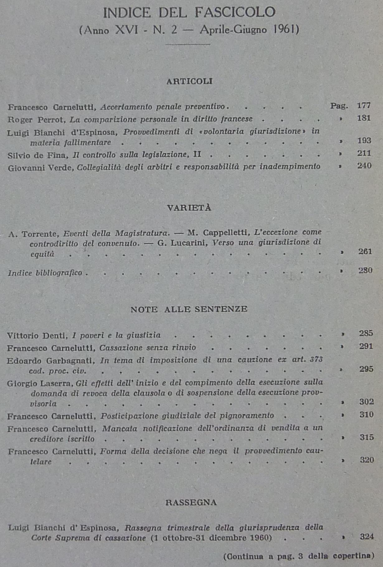 Rivista di Diritto Processuale. Annata 1961. Diretta da: Francesco Carnelutti, Giuseppe Chiovenda, Piero Calamandrei, Enrico Tullio Liebman. Anno XVI (Seconda Serie)