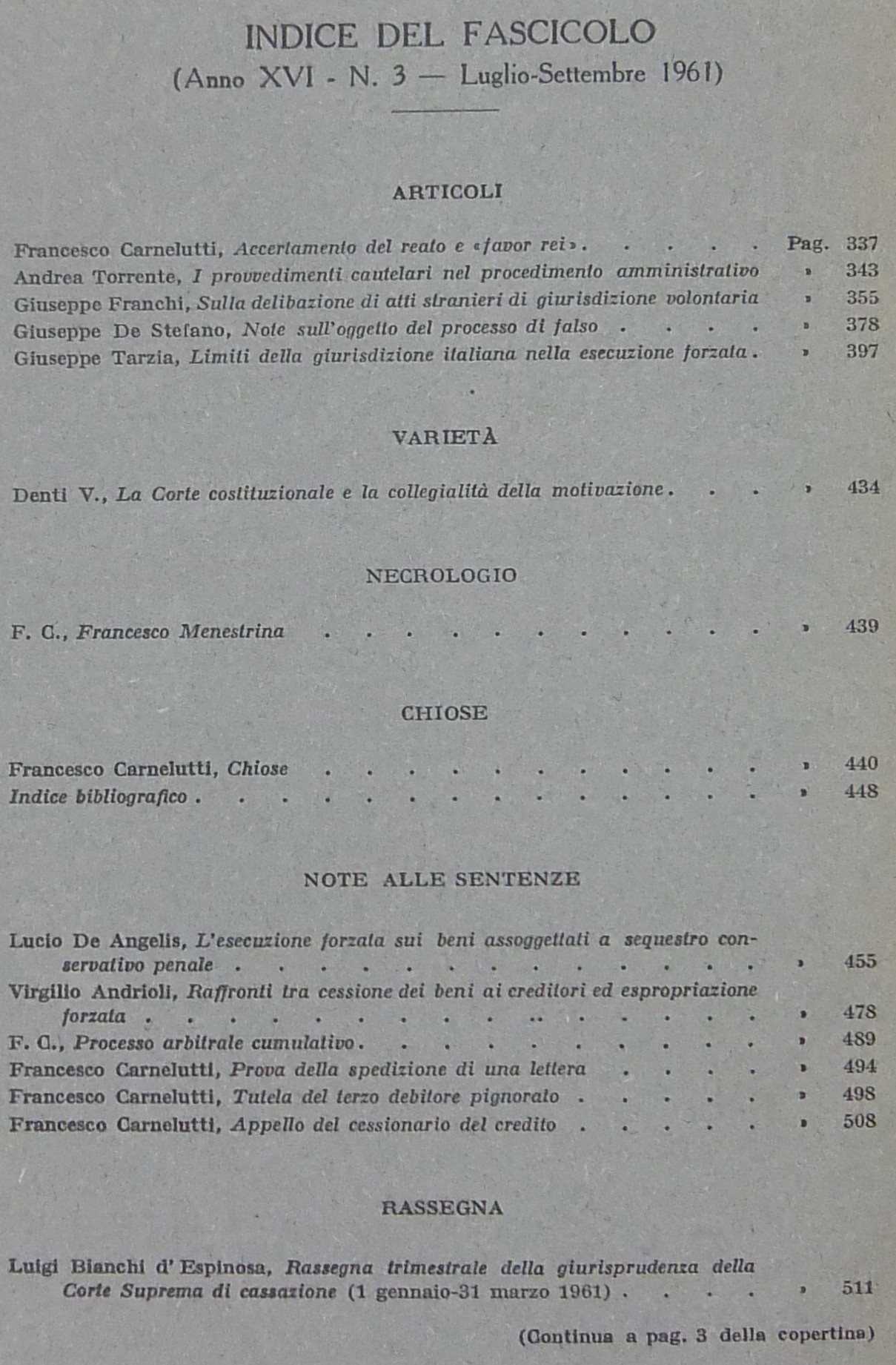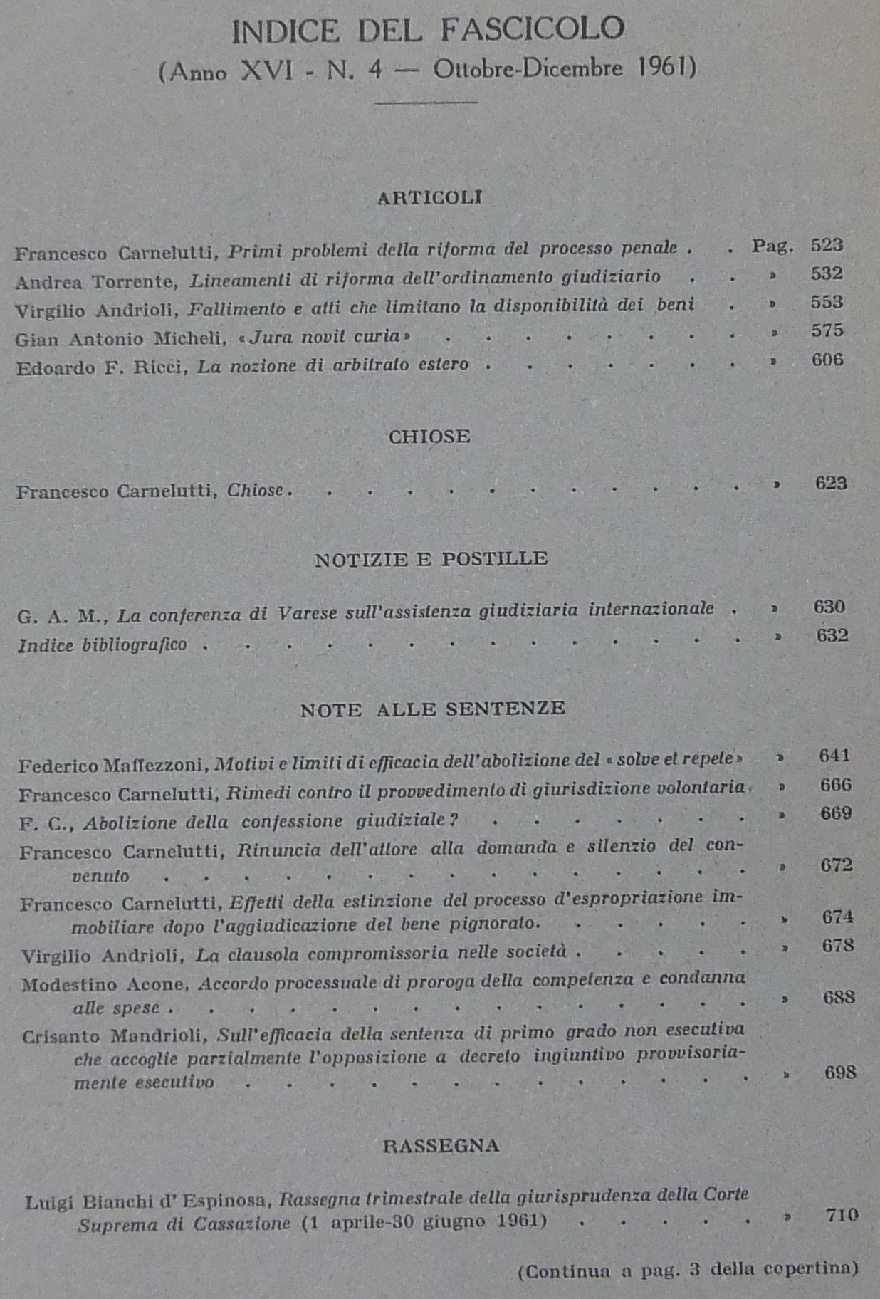 Andrioli V. - Carnelutti F. - Costa S. - Denti V. - Garbagnati E. - Laserra G. - Mandrioli C. - Micheli G.A. - Torrente A. - Verde G. et alii