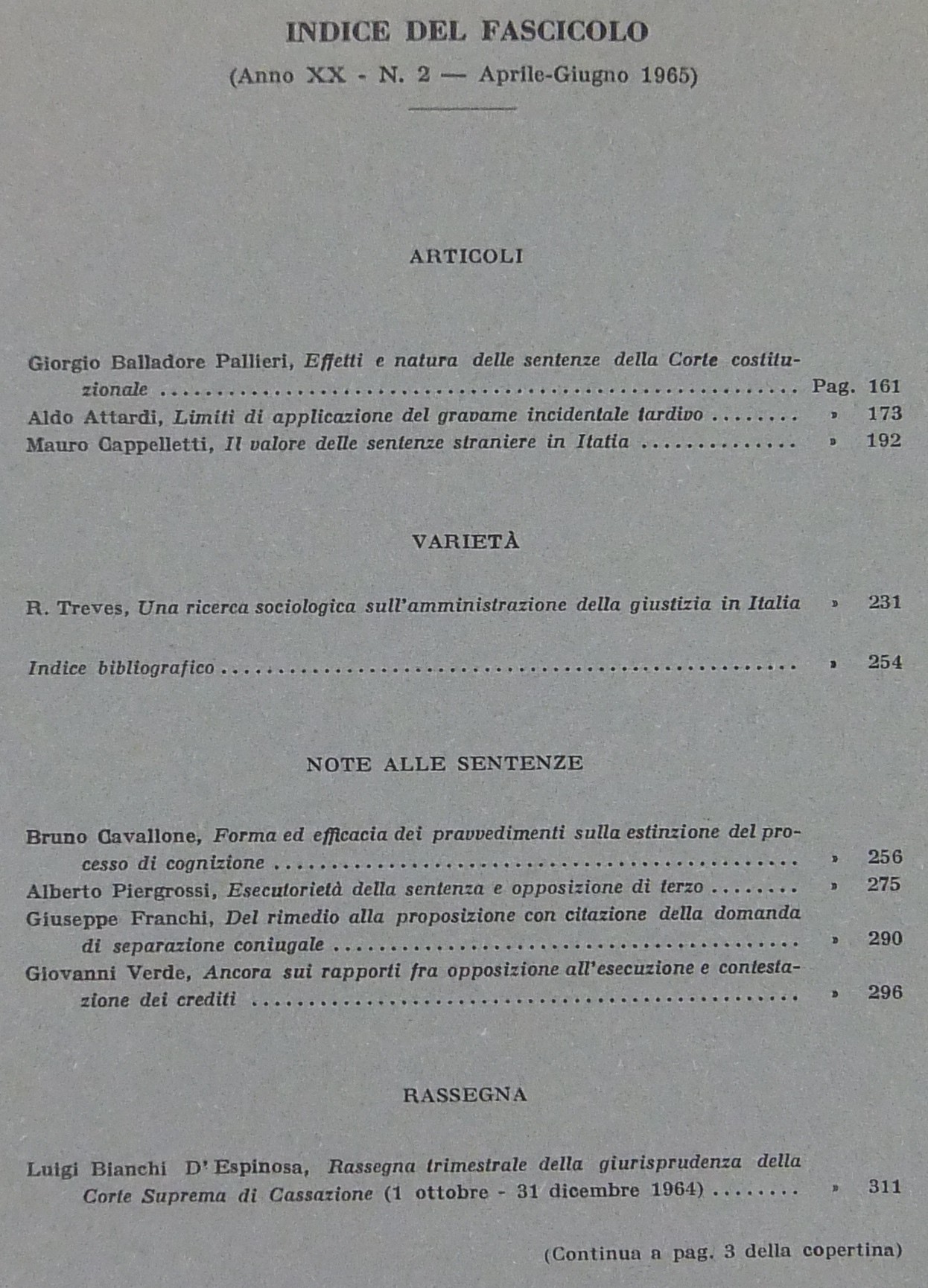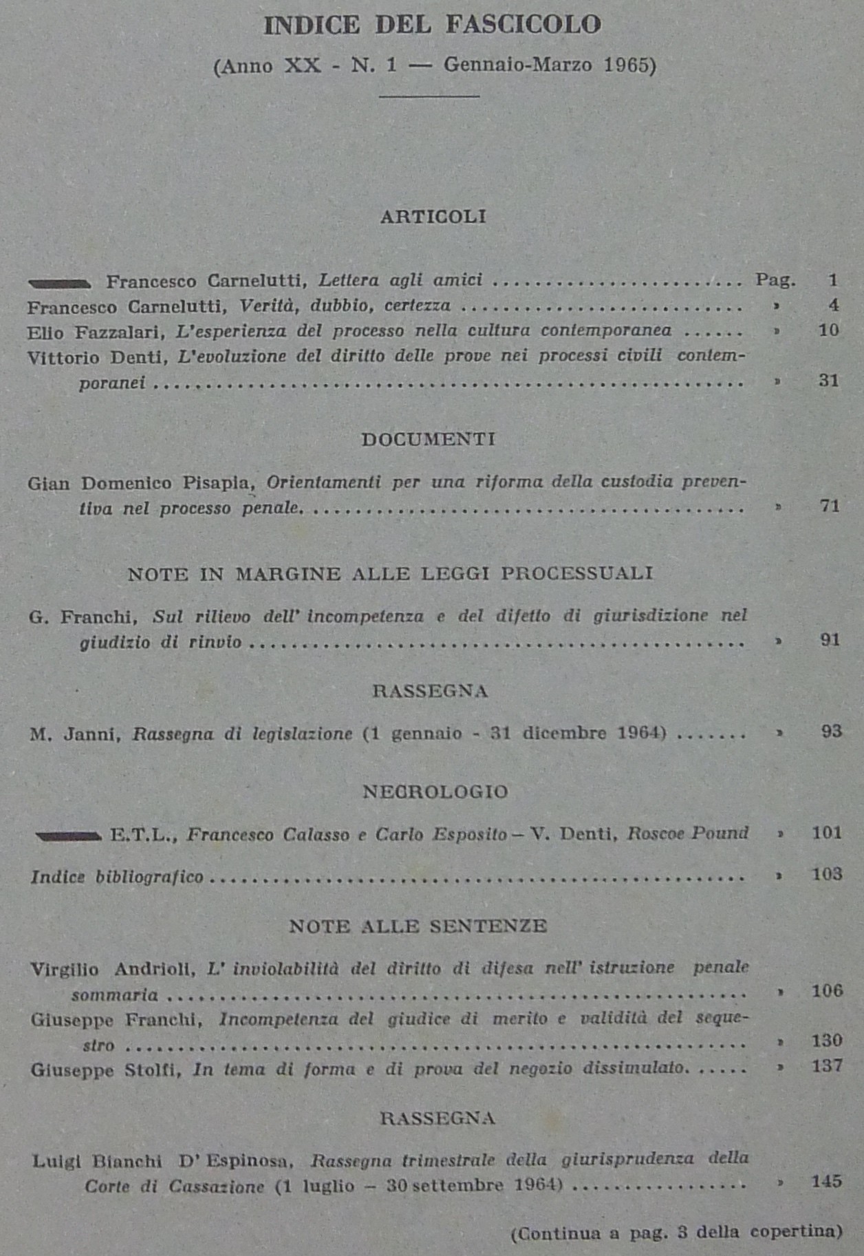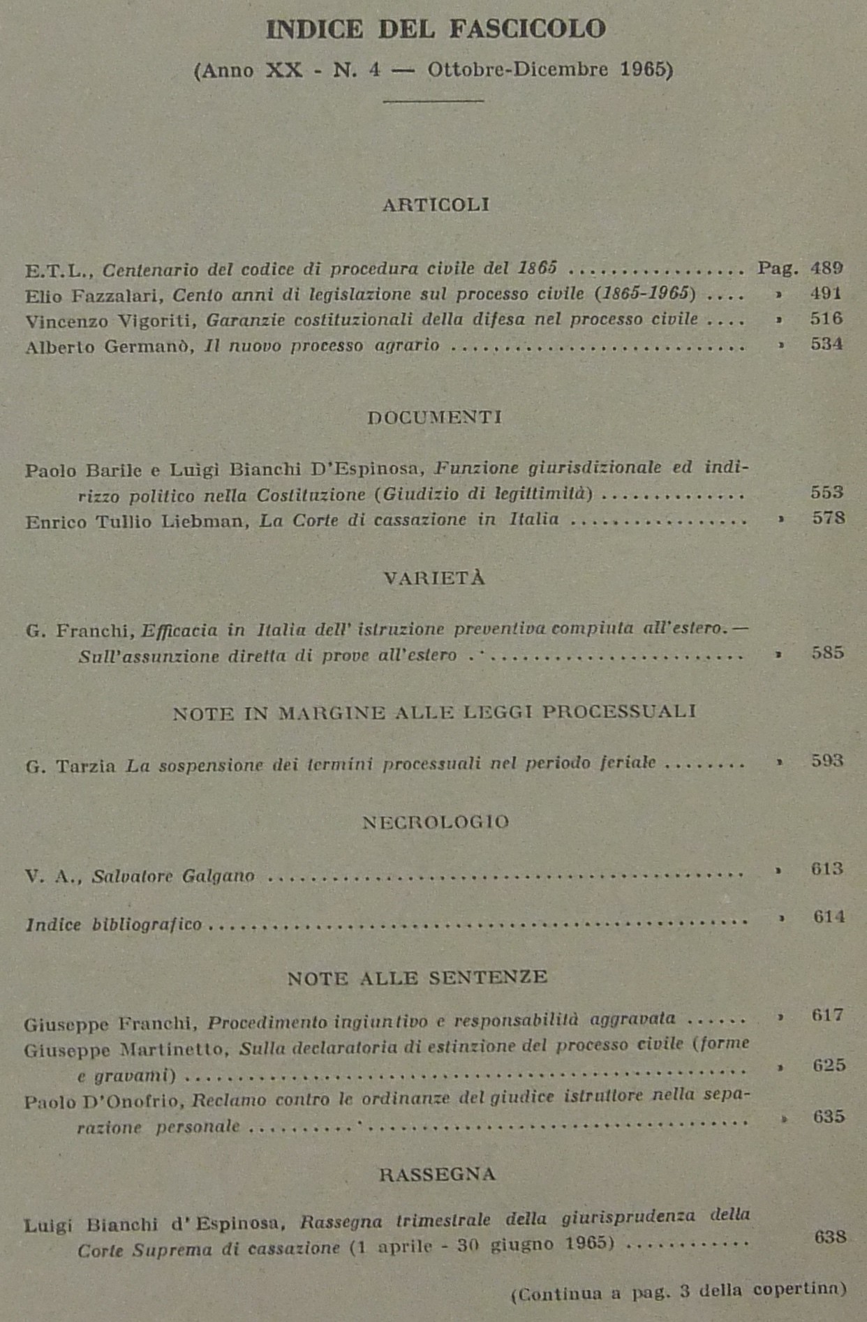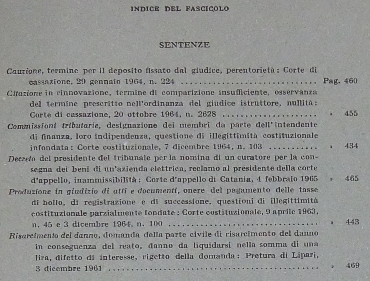 Andrioli V. - Attardi A. - Barile P. - Balladore Pallieri G. - Carnelutti F. - Costa S. - Denti V. - Fazzalari E. - Liebman E.T. - Micheli G.A. - Montesano L. - Stolfi G. - Tarzia G. - Treves R. - Verde G. et alii