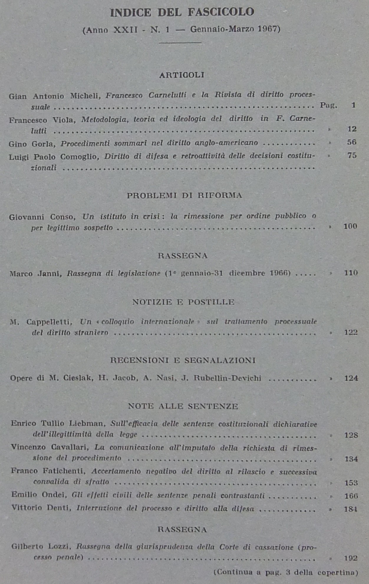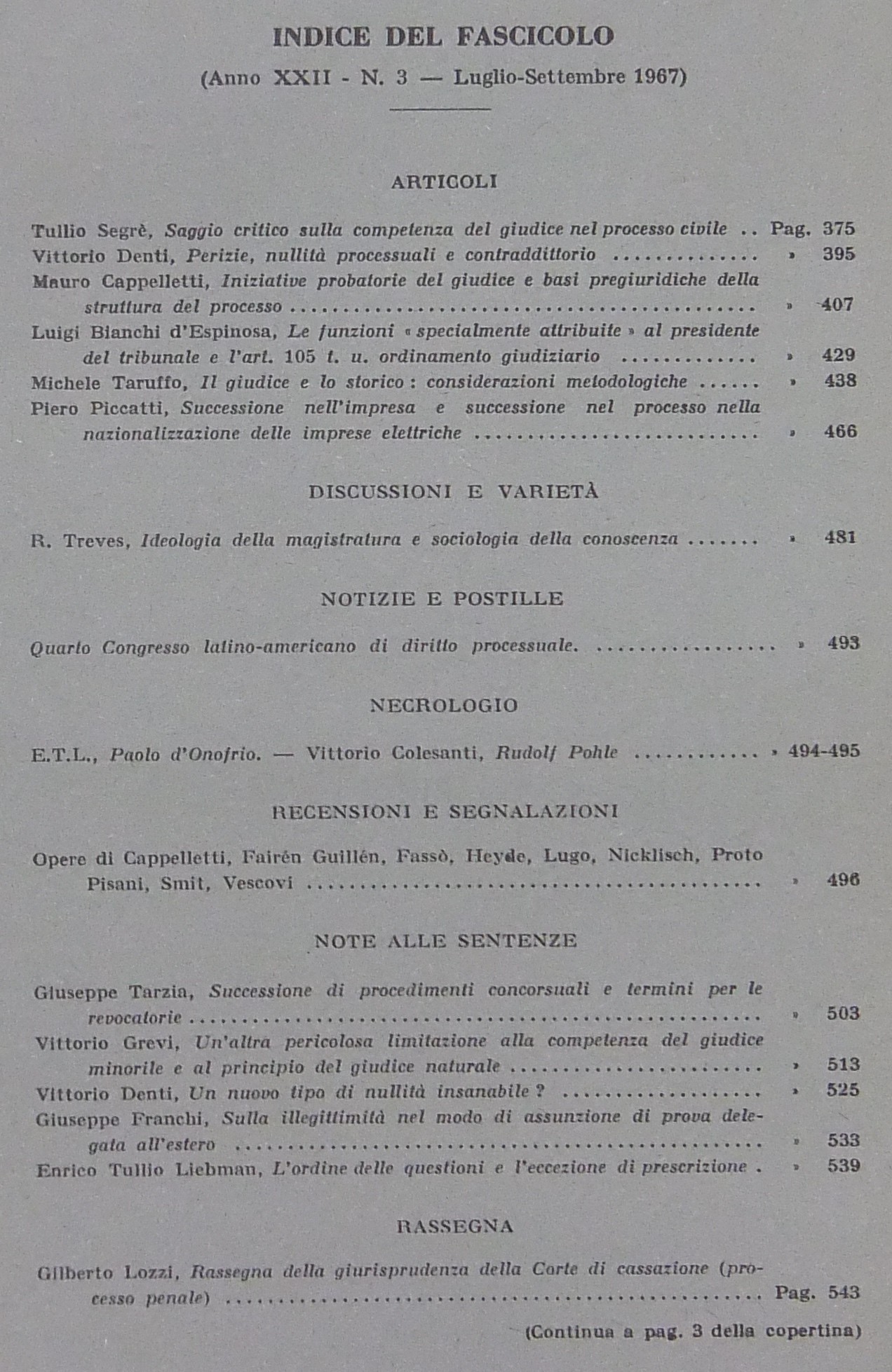 Cappelletti M. - Comoglio L.P. - Conso G. - Denti V. - Fazzalari E. - Ferri C. - Garbagnati E. - Gorla G. - La China S. - Laserra G. - Liebman E.T. - Micheli G.A. - Ondei E. - Stolfi G. - Taruffo M. - Treves R. et alii