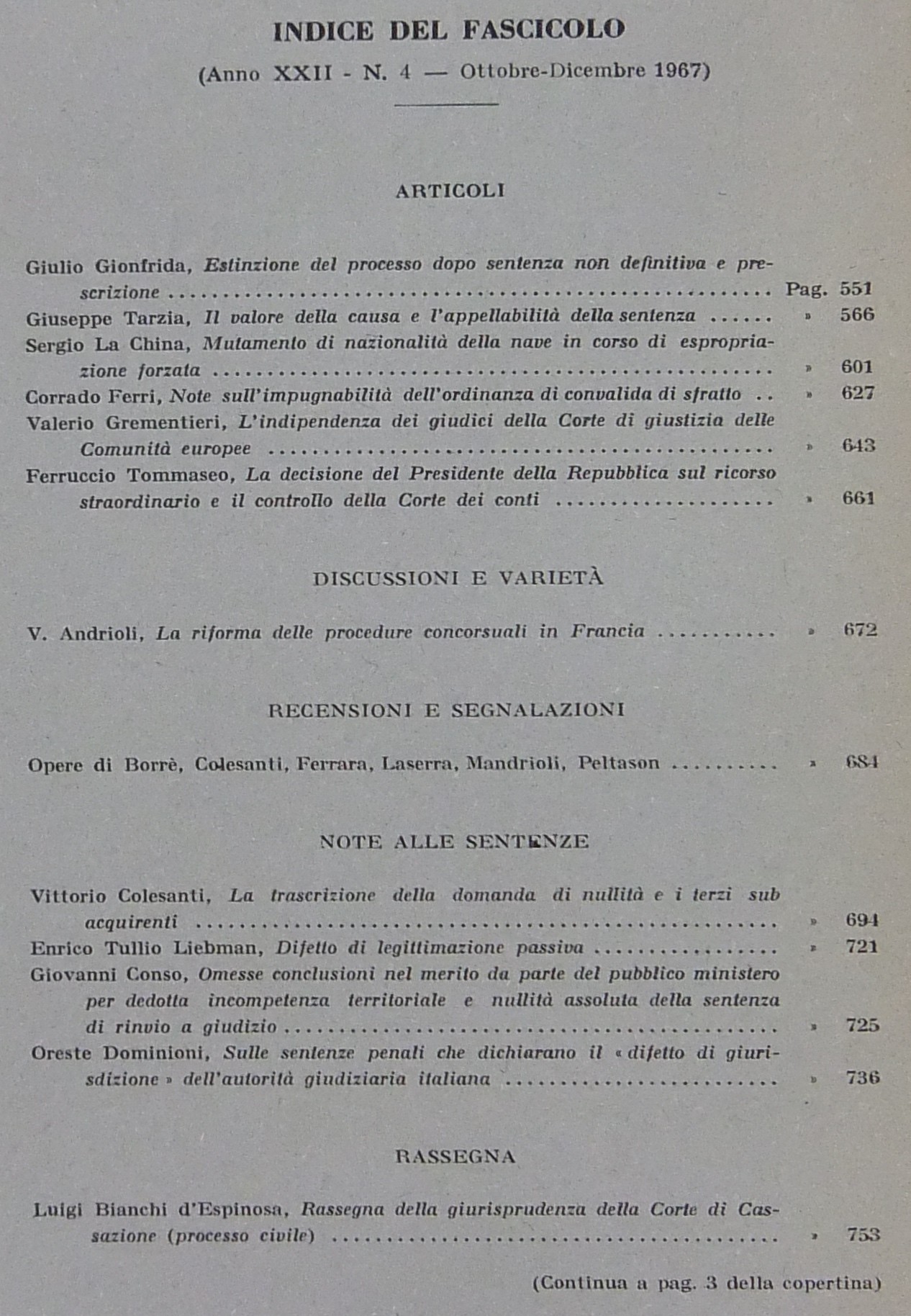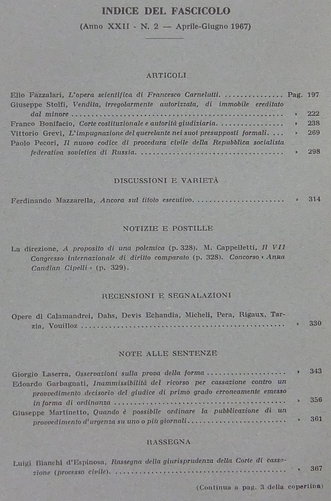 Rivista di Diritto Processuale. Annata 1967. Diretta da: Francesco Carnelutti, Giuseppe Chiovenda, Piero Calamandrei, Enrico Tullio Liebman. Anno XXII (Seconda Serie)