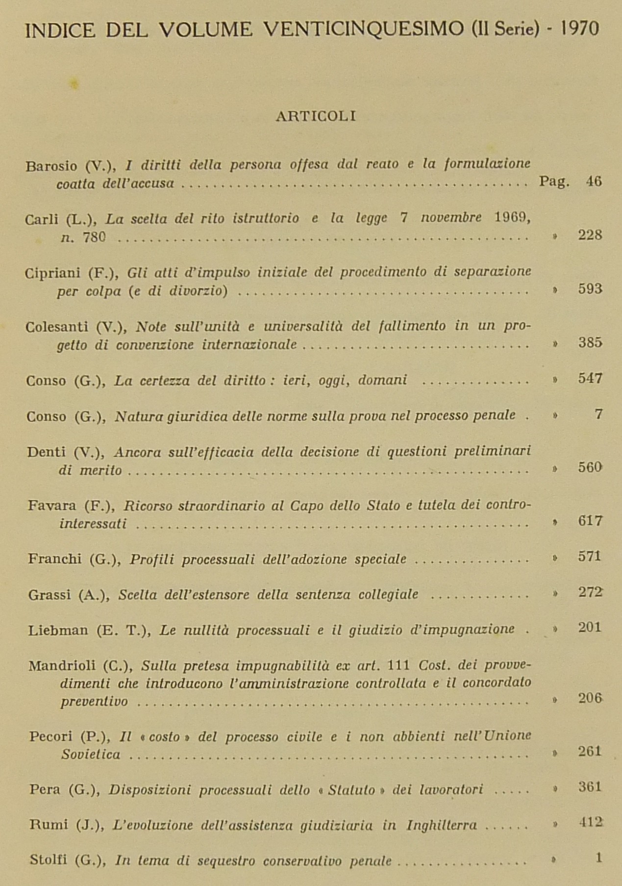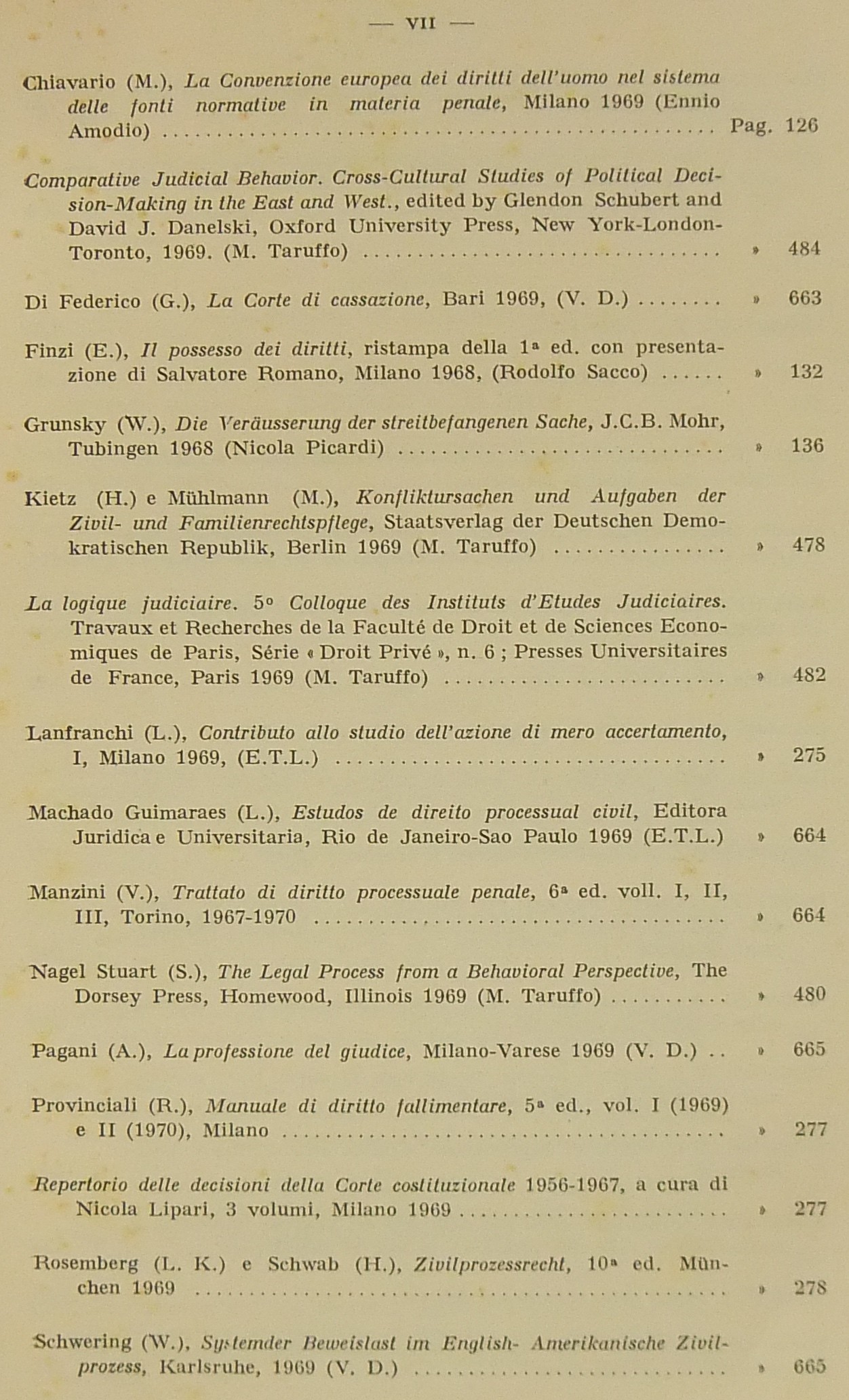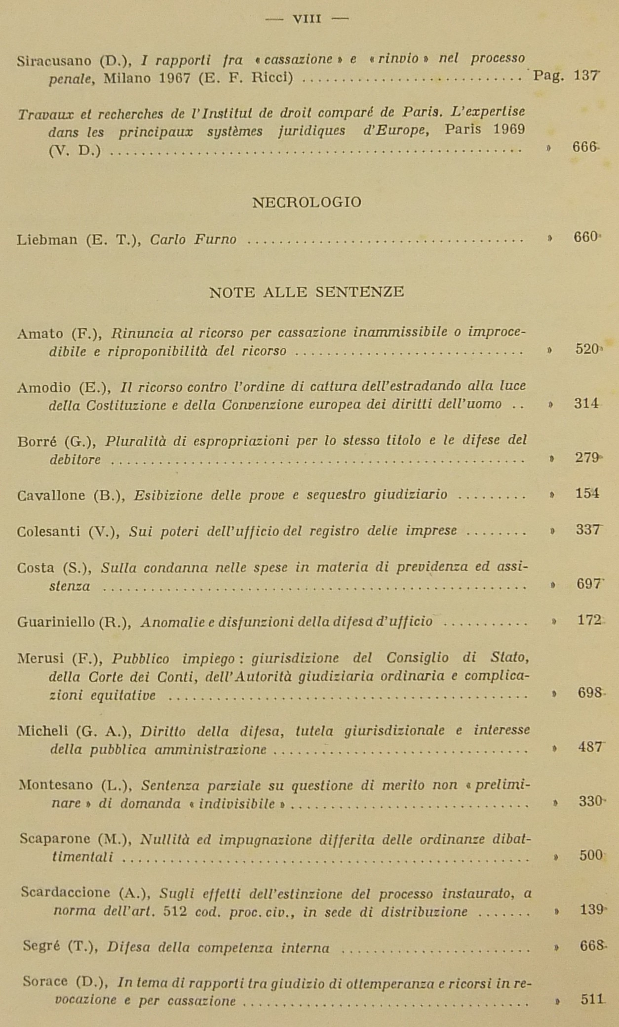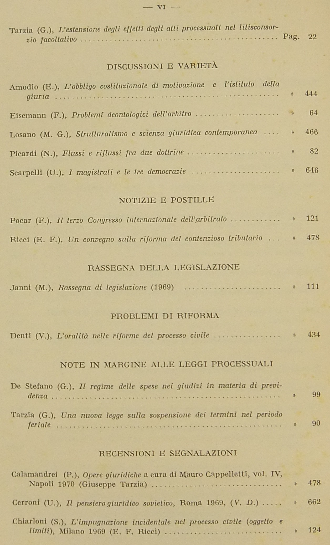 Amodio E. - Calamandrei P. - Cipriani F. - Conso G. - Denti V. - Finzi E. - Franchi G. - Lanfranchi L. - Liebman E.T. - Mandrioli C. - Manzini V. - Micheli G.A. - Picardi N. - Pocar F. - Provinciali R. - Ricci E.F. - Stolfi G. - Taruffo M. et alii