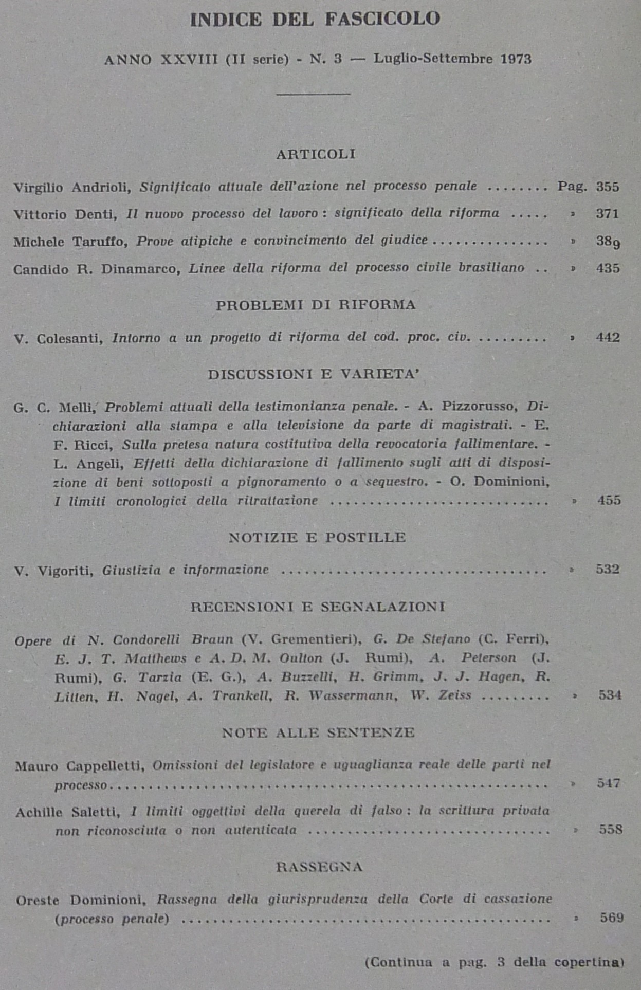 Rivista di Diritto Processuale. Annata 1973. Diretta da: Francesco Carnelutti, Giuseppe Chiovenda, Piero Calamandrei, Enrico Tullio Liebman. Anno XXVIII (Seconda Serie)