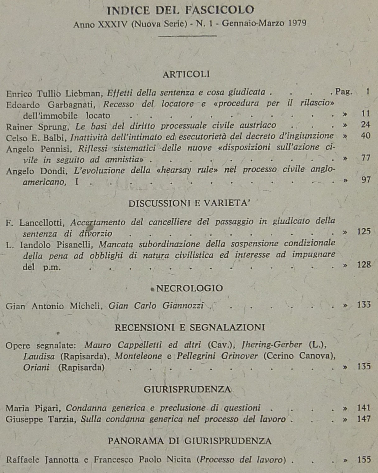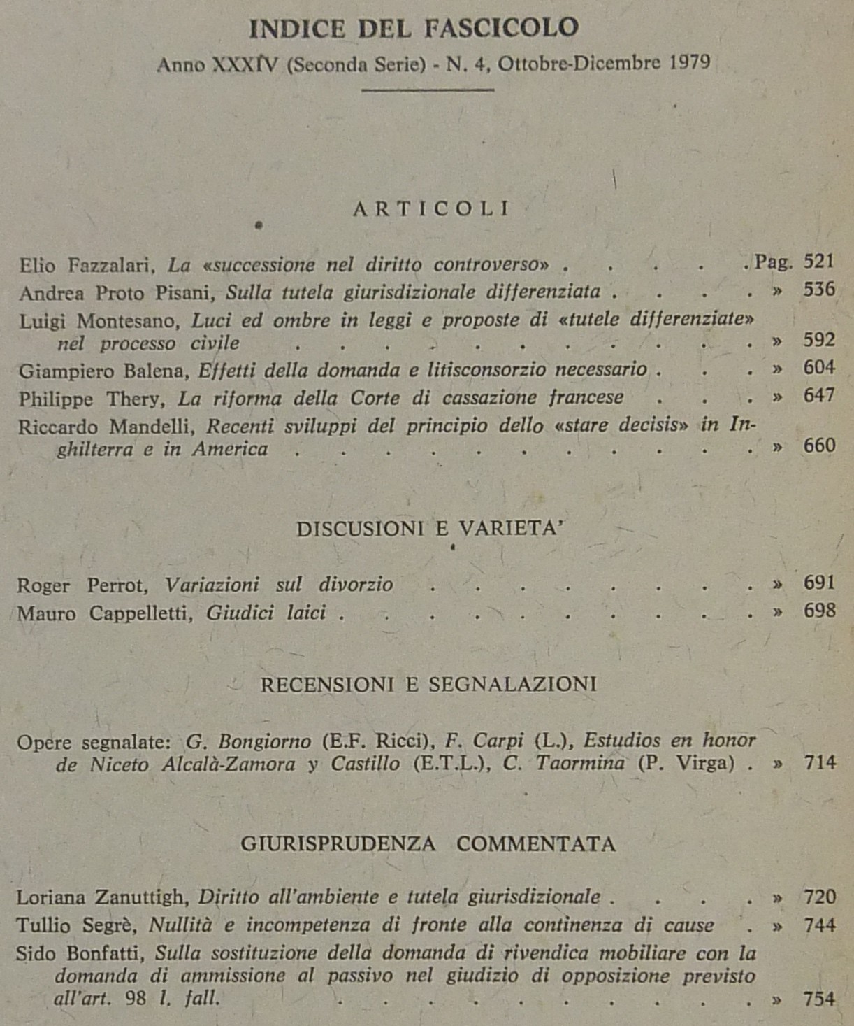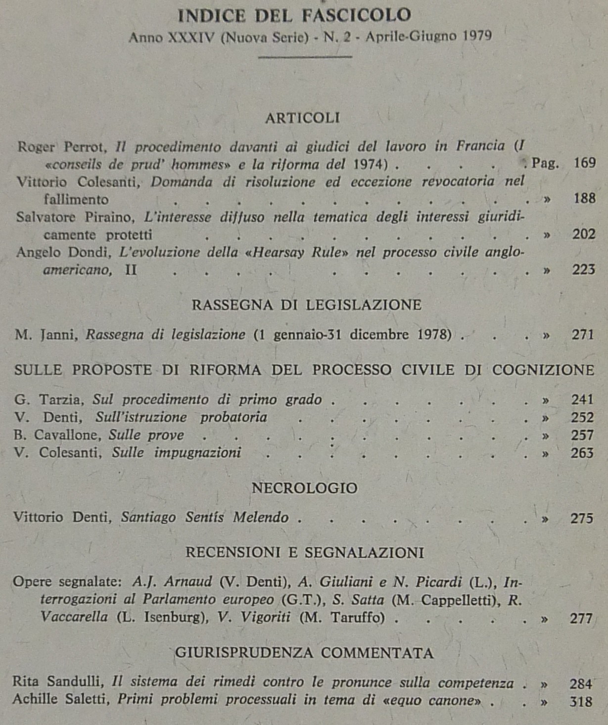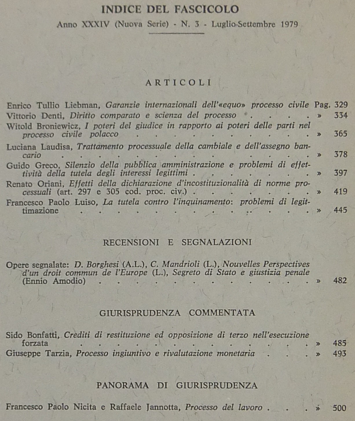 Rivista di Diritto Processuale. Annata 1979. Diretta da: Francesco Carnelutti, Giuseppe Chiovenda, Piero Calamandrei, Enrico Tullio Liebman. Anno XXXIV (Seconda Serie)