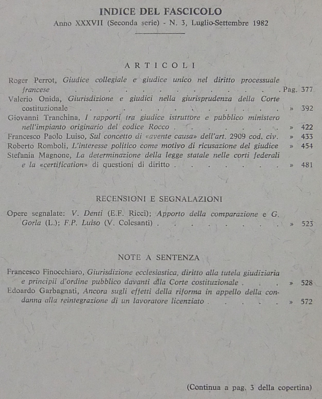 Rivista di Diritto Processuale. Annata 1982