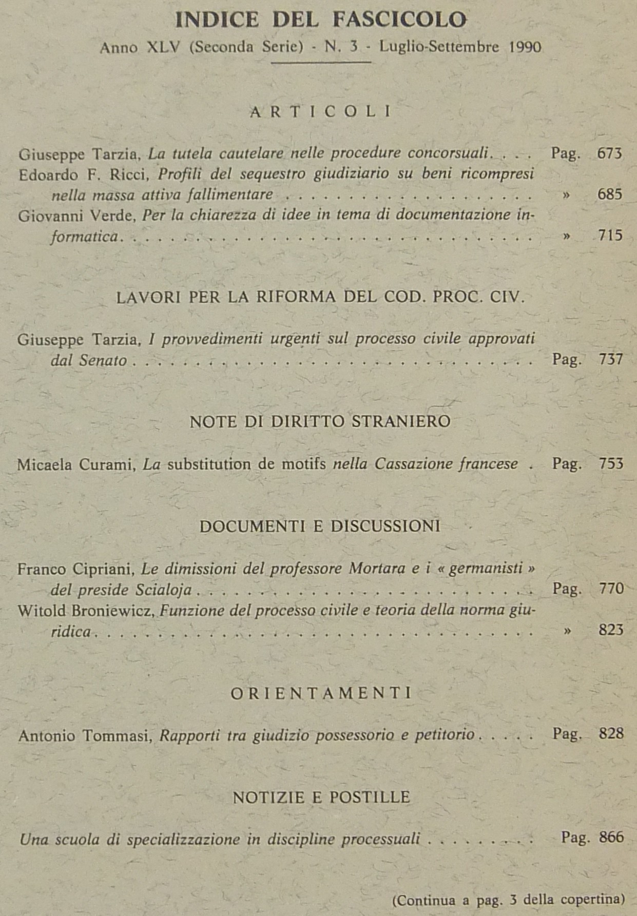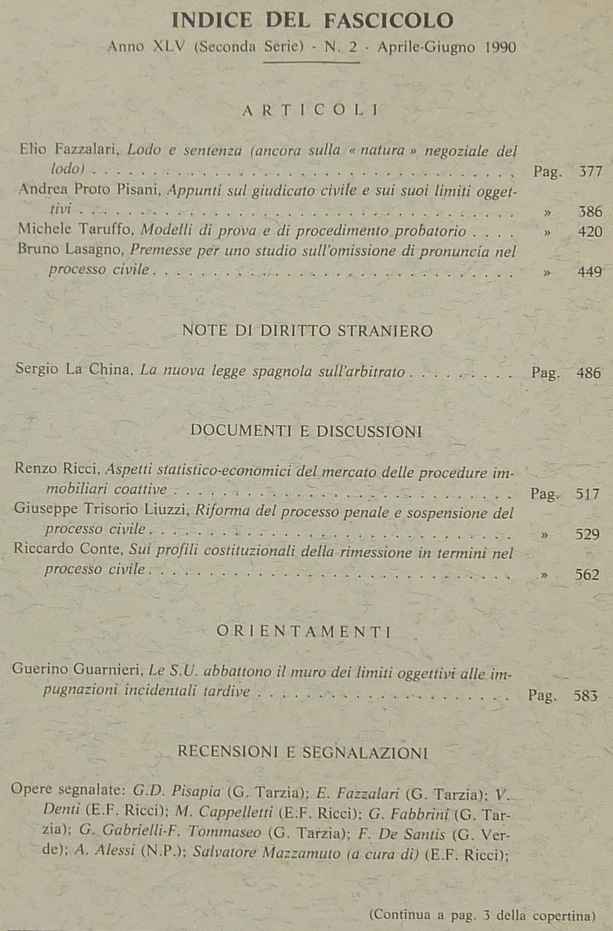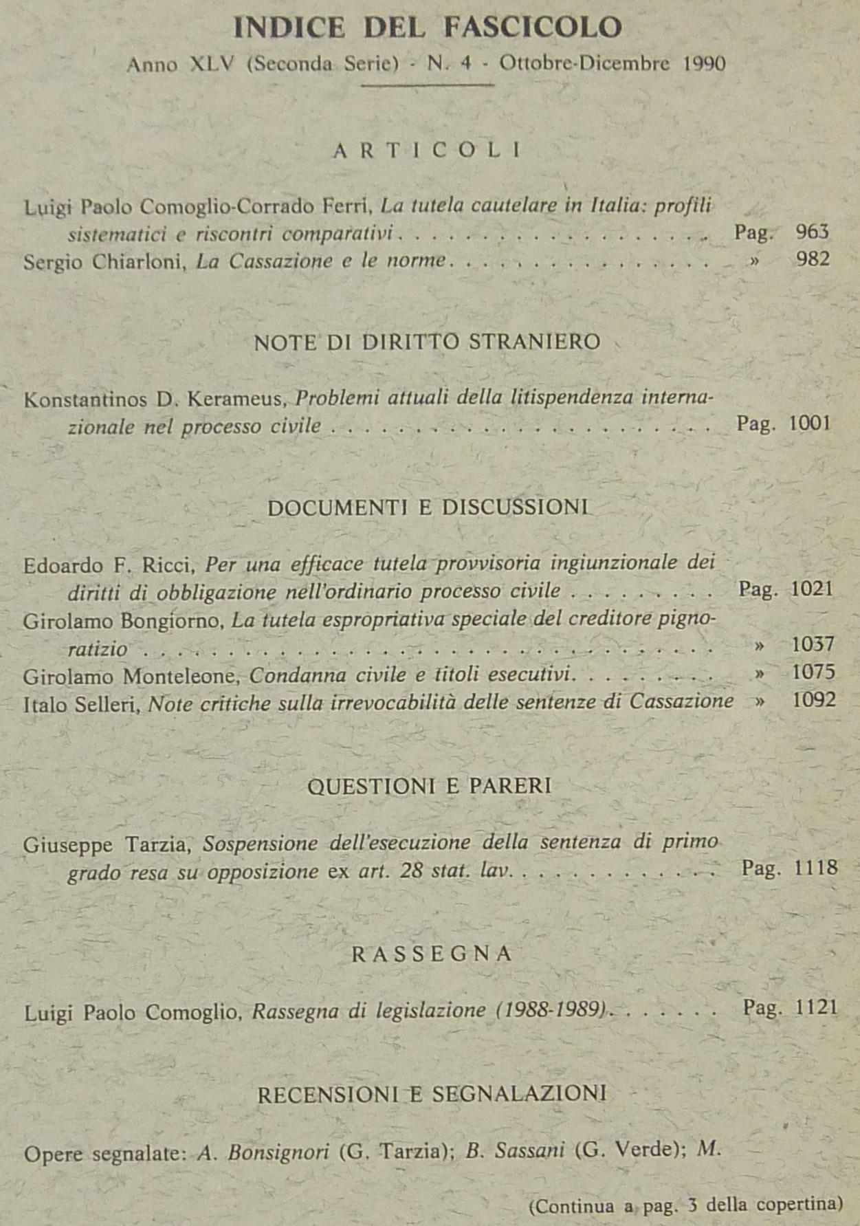 Rivista di Diritto Processuale. Annata 1990. Diretta da: Francesco Carnelutti, Giuseppe Chiovenda, Piero Calamandrei, Enrico Tullio Liebman. Anno XLV (Seconda Serie)