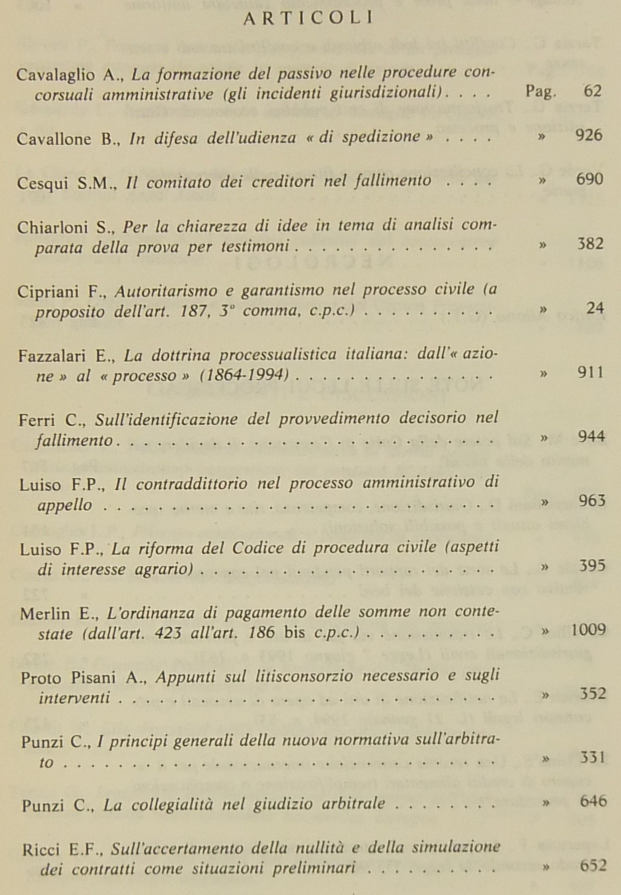 Cipriani F. - Fazzalari E. - ferri C. - Luiso F.P. - Proto Pisani A. - Tarzia G. - Verde G. et alii