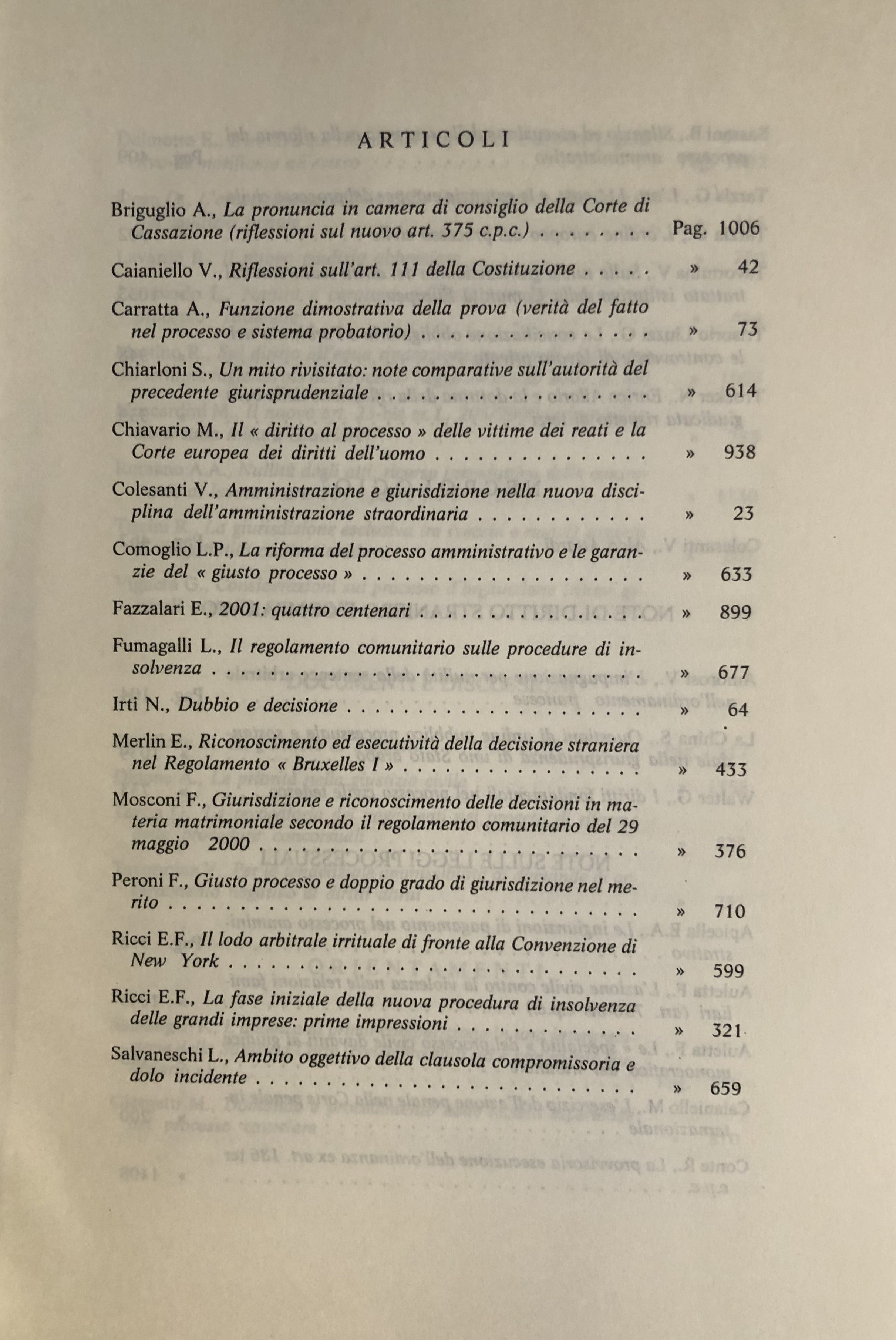 Rivista di Diritto Processuale. Annata 2001. Diretta da: Francesco Carnelutti, Giuseppe Chiovenda, Piero Calamandrei, Enrico Tullio Liebman. Anno LVI (Seconda Serie)