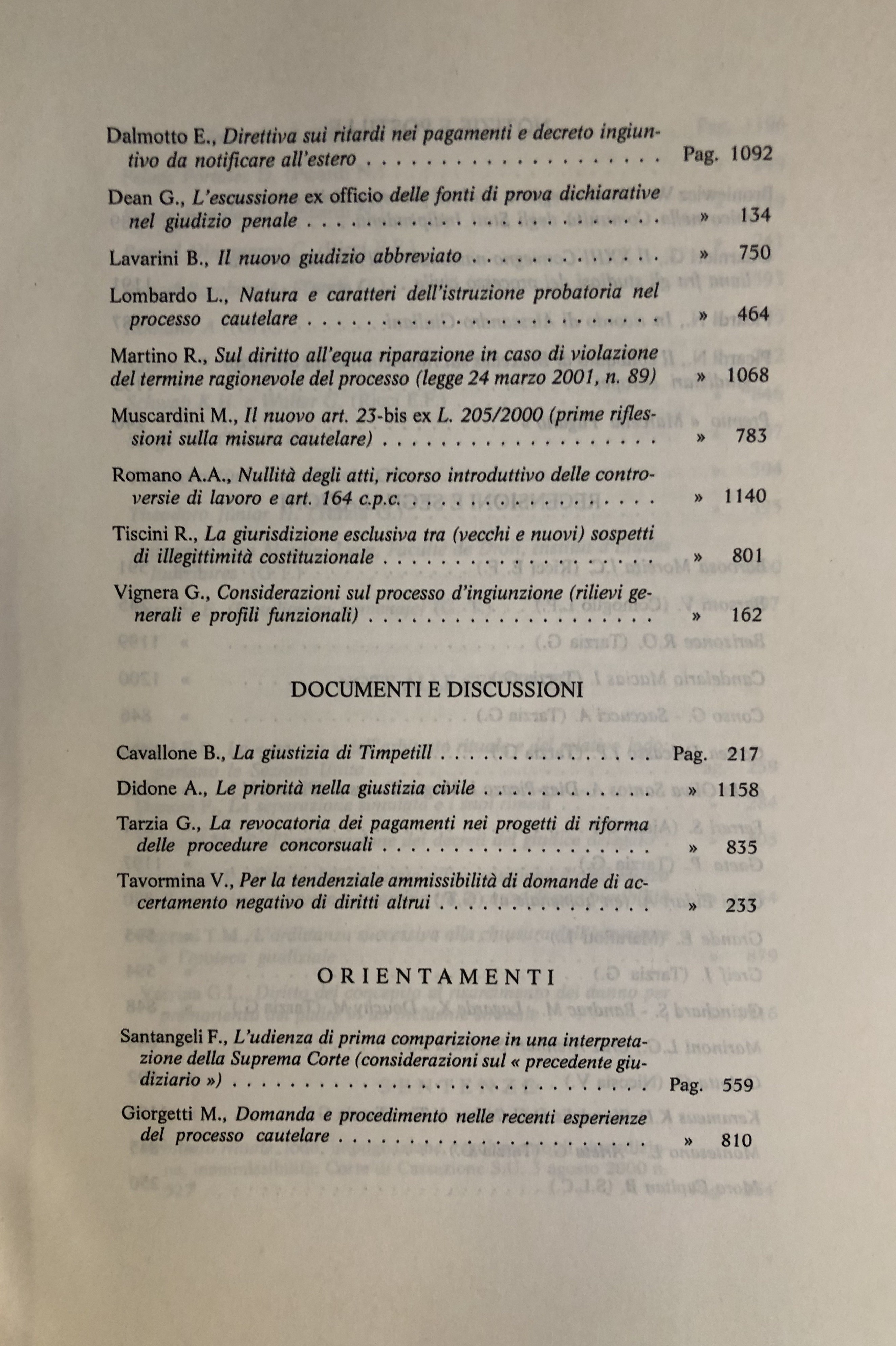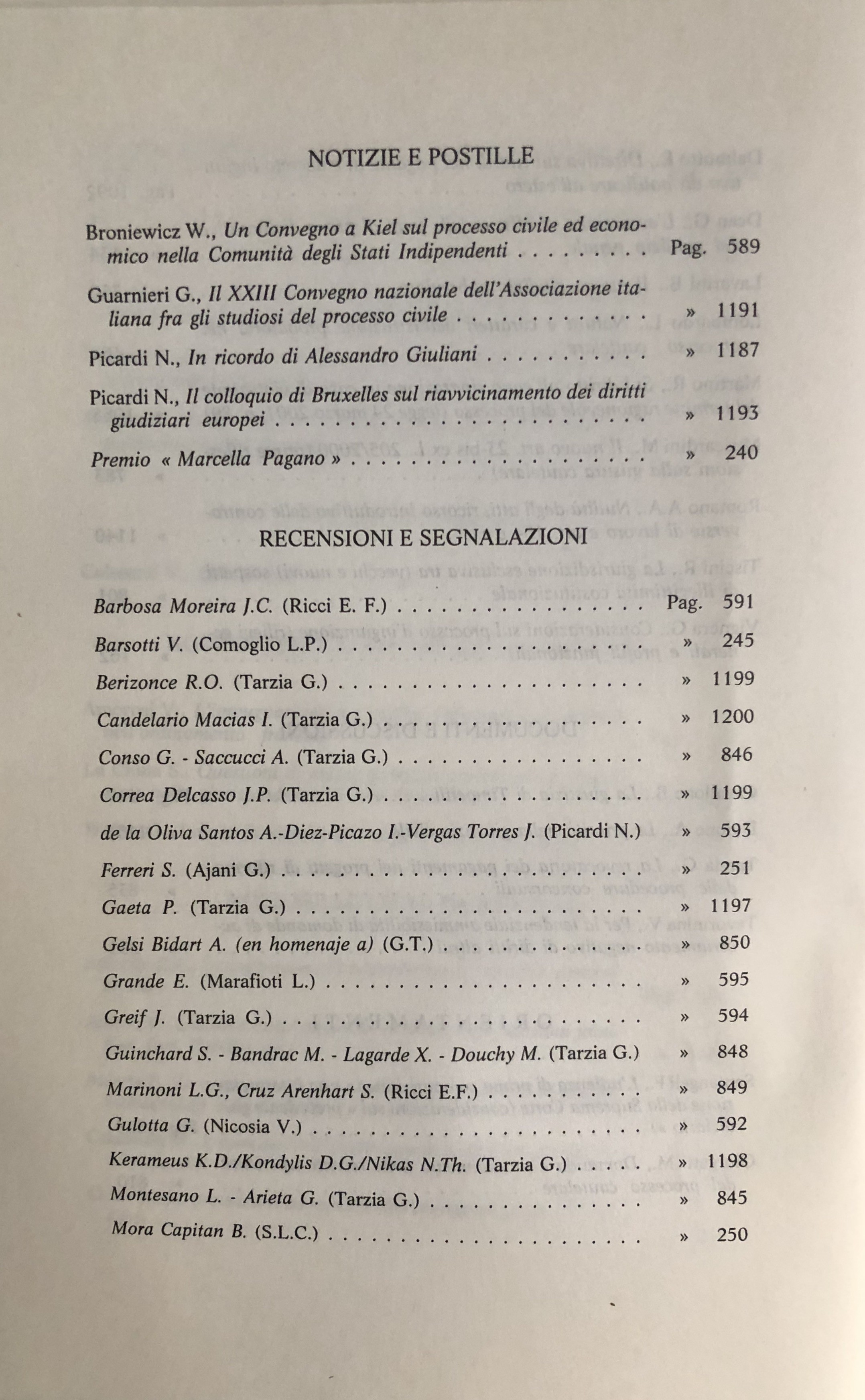 Carratta A. - Chiarloni S. - Chiavario M. - Colesanti V. - Comoglio L.P. - Fazzalari E. - Irti N. - Ricci E.F. - Tarzia G. - Trocker N. et alii