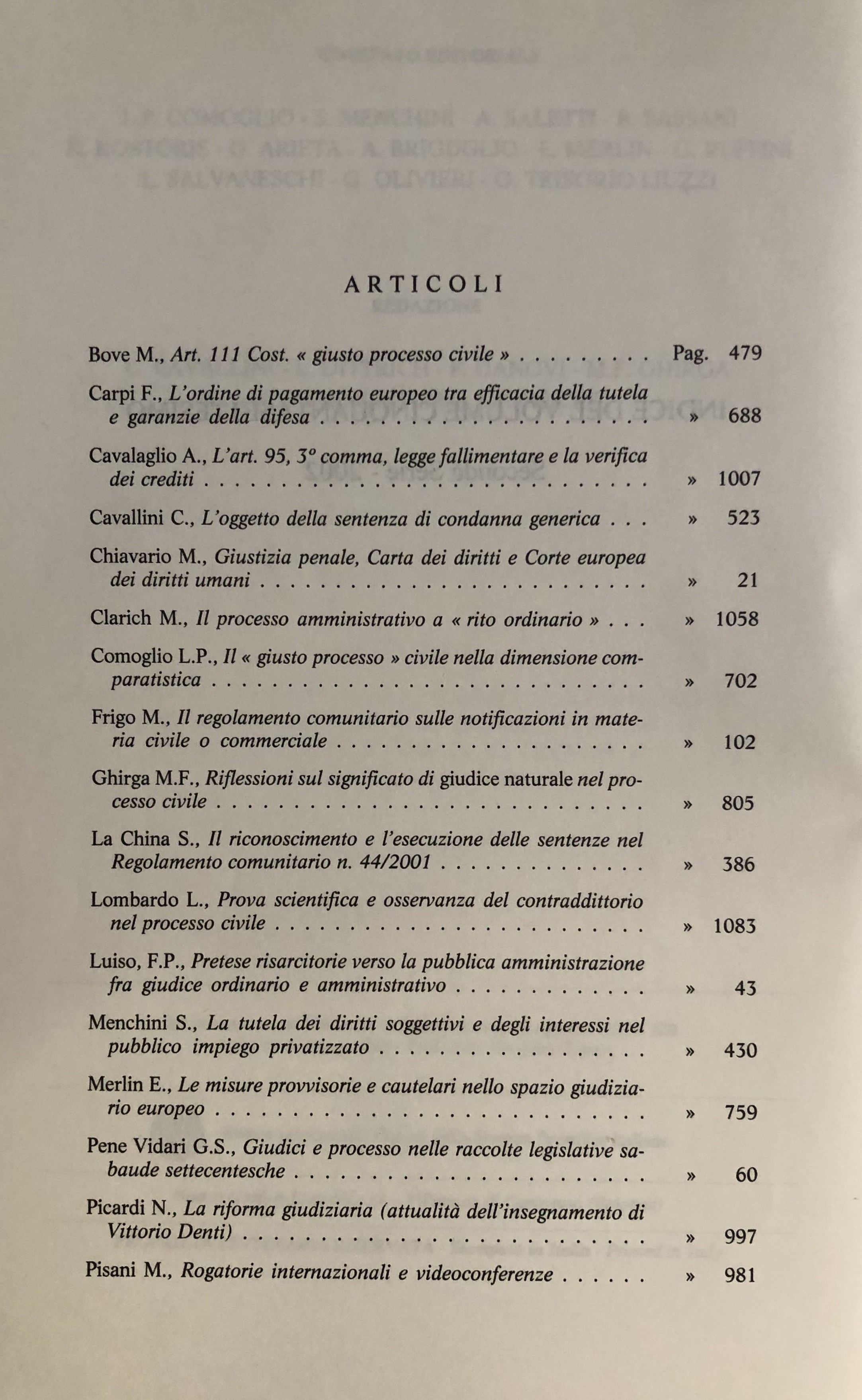 Chiavario M. - Clarich M. - Comoglio L.P. - La China S. - Luiso F.P. - Menchini S. - Pisani M. - Ruffini G. - Tarzia G. - Verde G. et alii