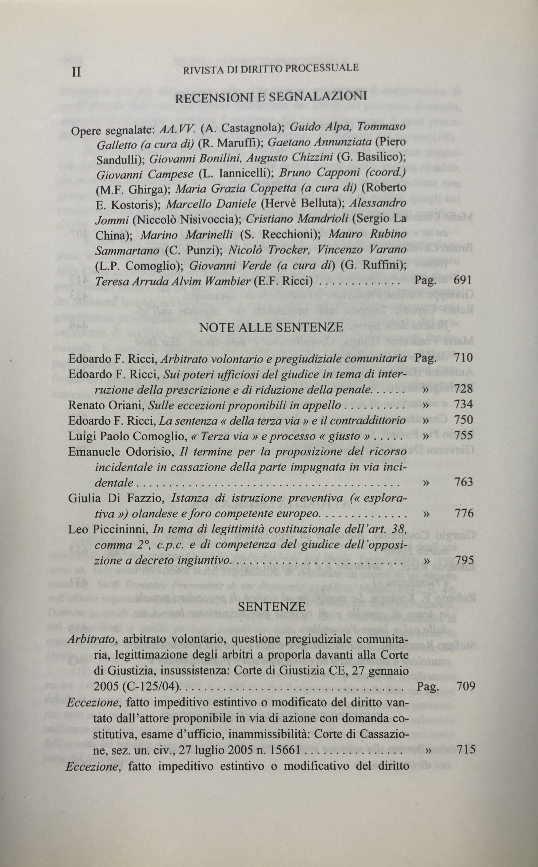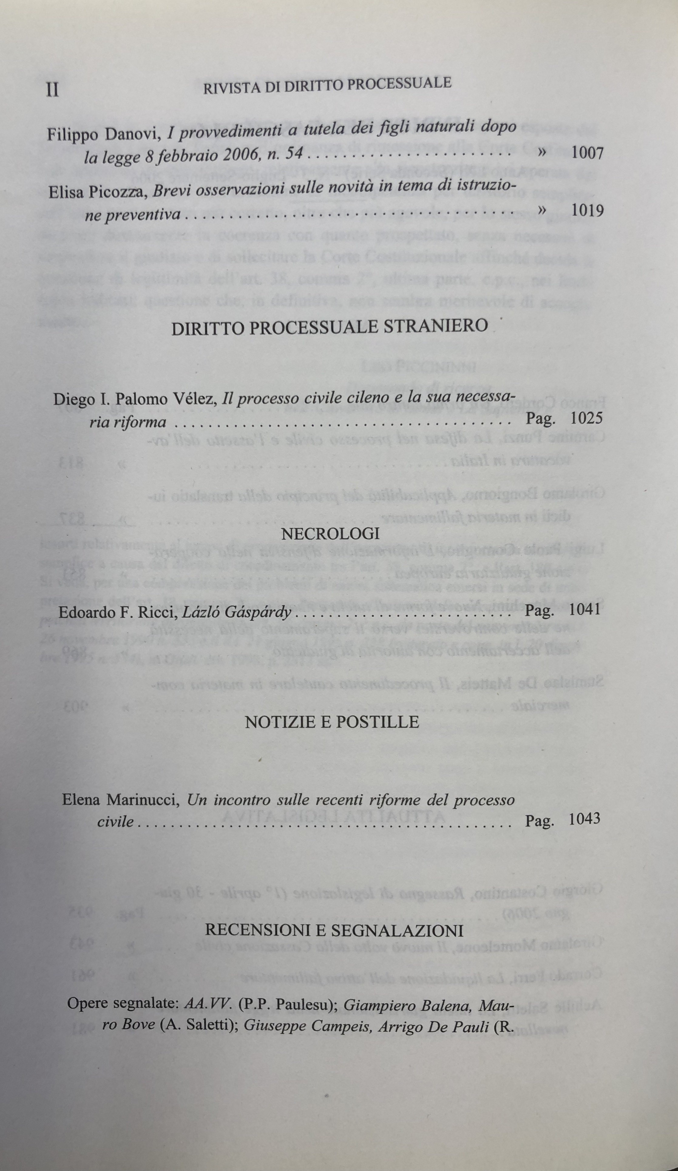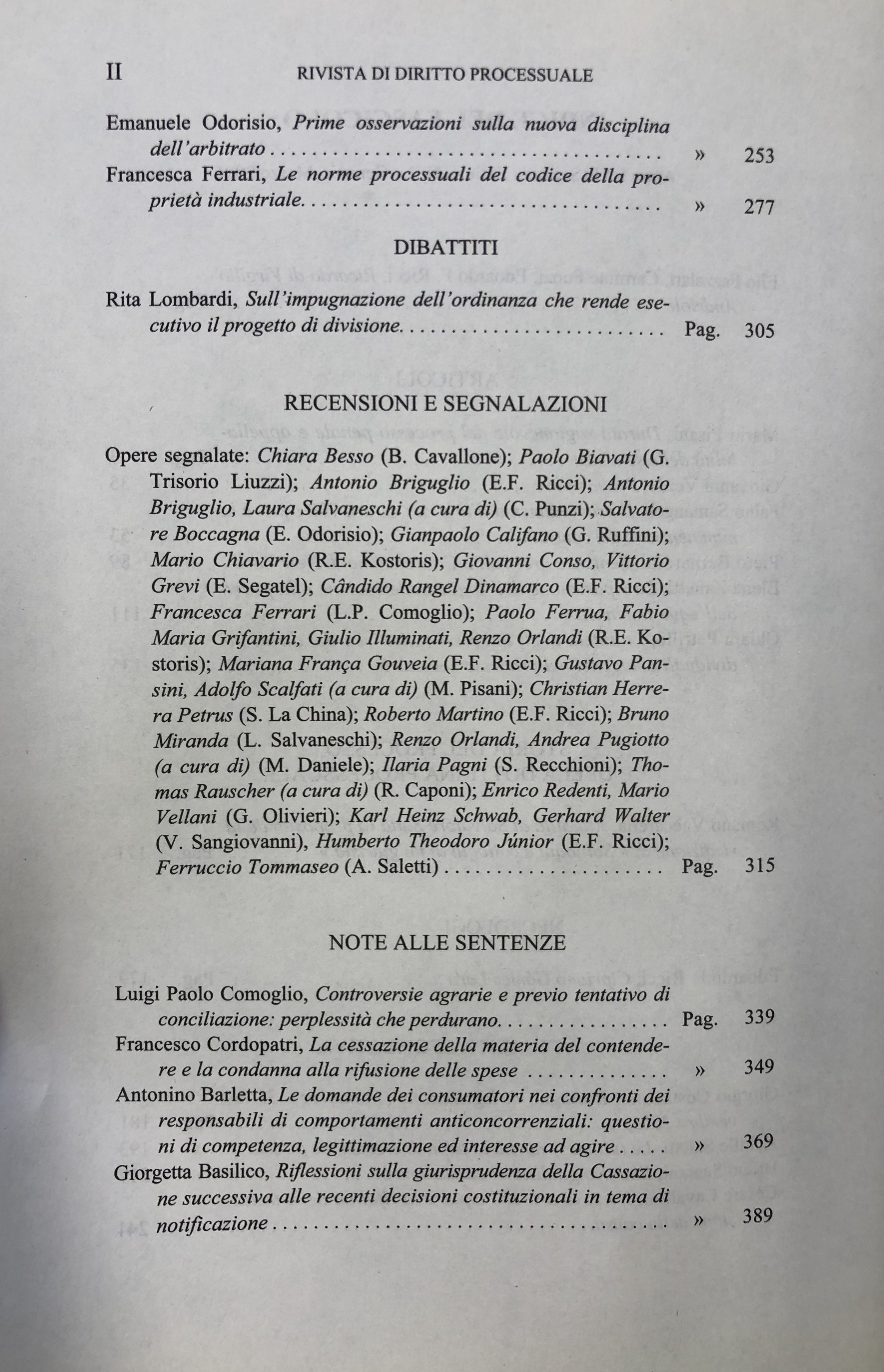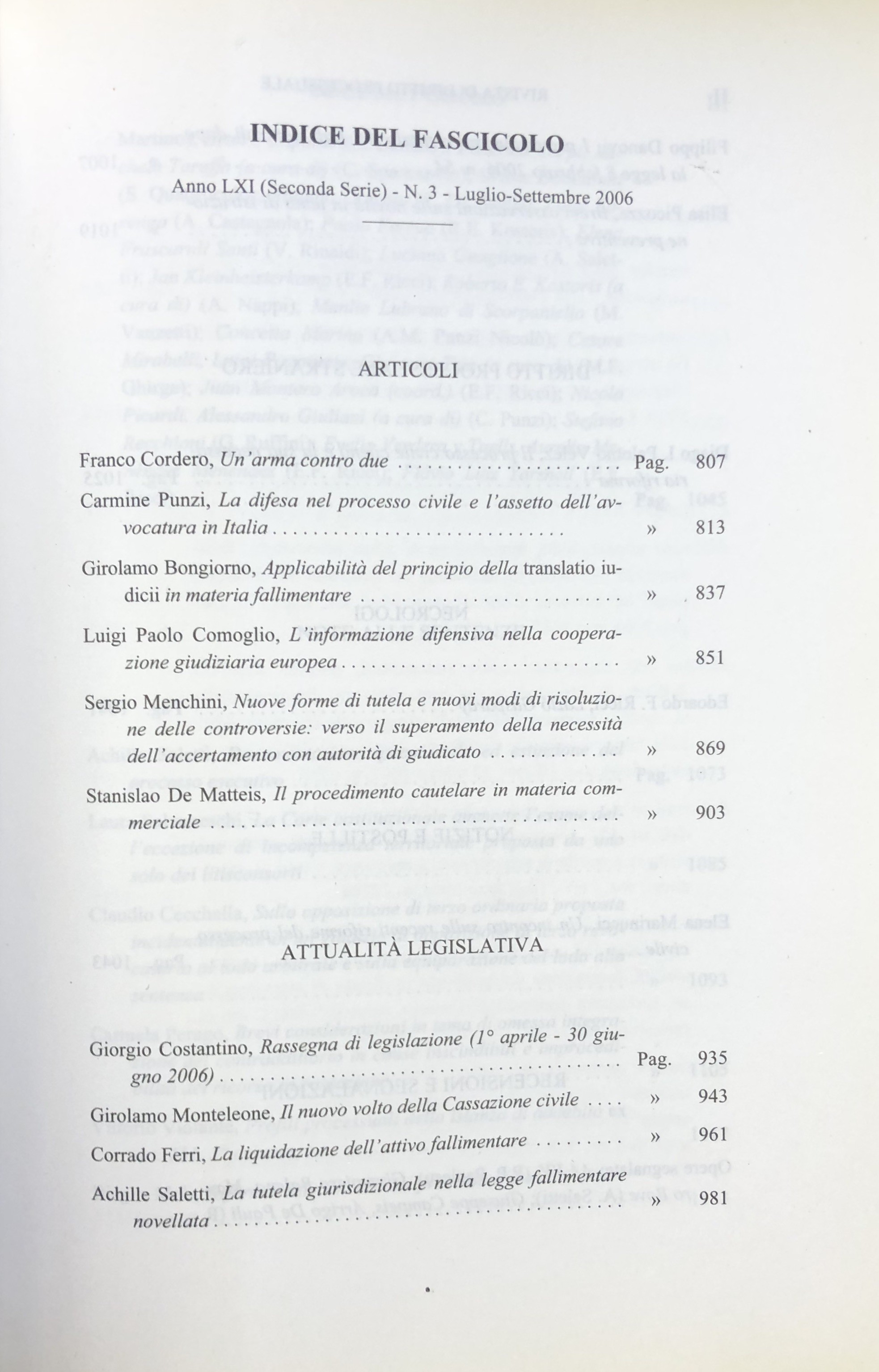Rivista di Diritto Processuale. Annata 2006. Diretta da: Francesco Carnelutti, Giuseppe Chiovenda, Piero Calamandrei, Enrico Tullio Liebman. Anno LXI (Seconda Serie)