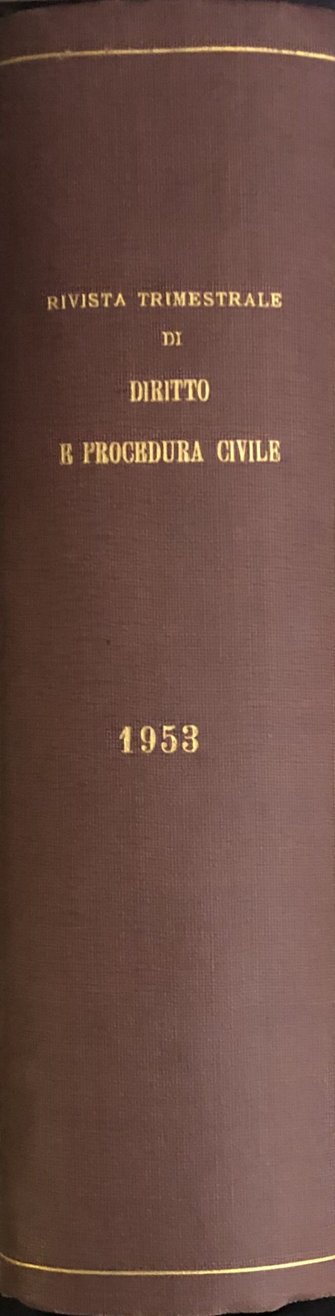 Rivista trimestrale di diritto e procedura civile. Diretta da: Antonio Cicu, Enrico Redenti, Tullio Ascarelli, Walter Bigiavi, Giuseppe Auletta, Tito Carnacini. Anno VII - 1953