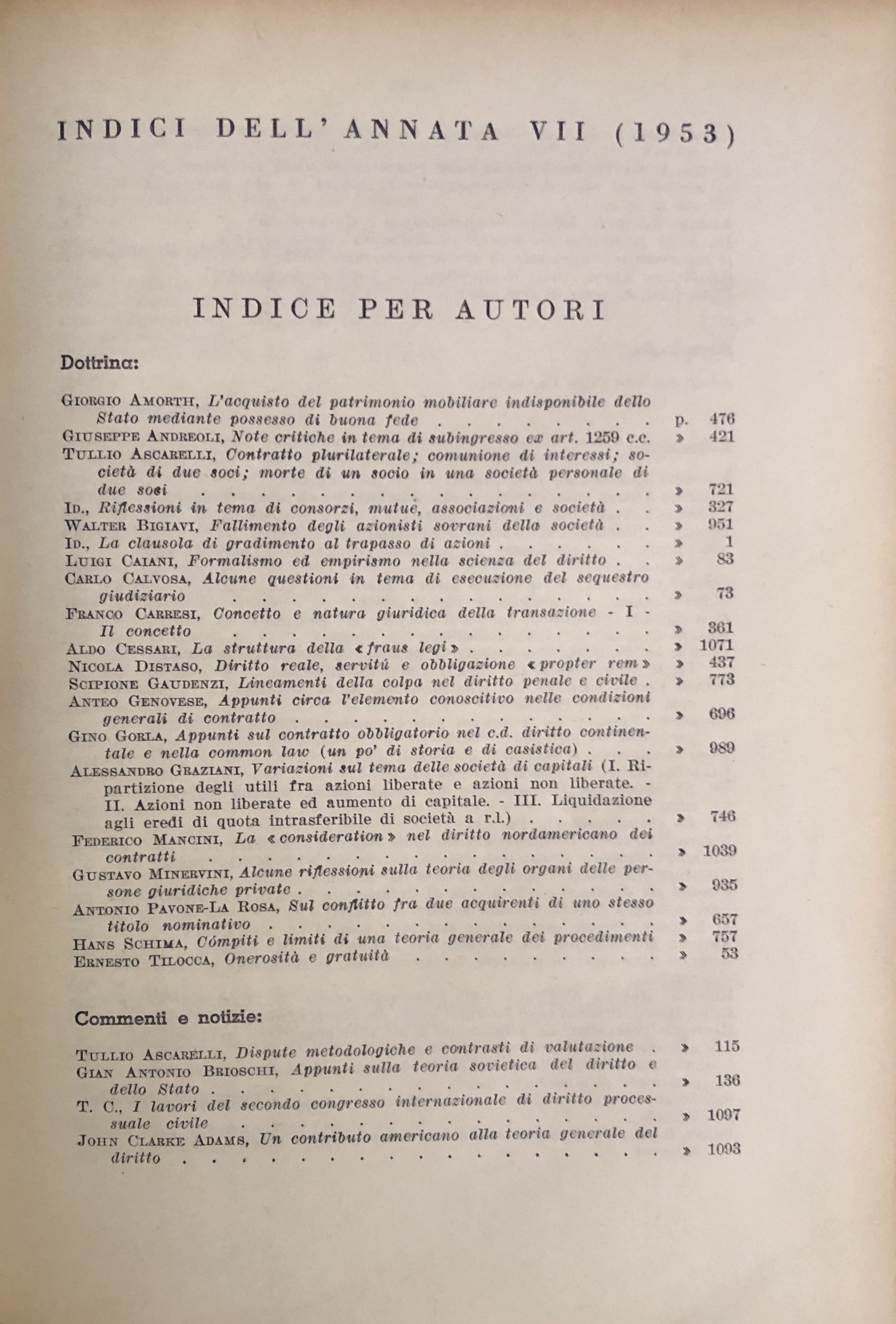 Amorth G. - Andreoli G. - Ascarelli T. - Bigiavi W. - Carresi F. - Distaso N. - Gorla G. - Mancini F. - Minervini G. et alii